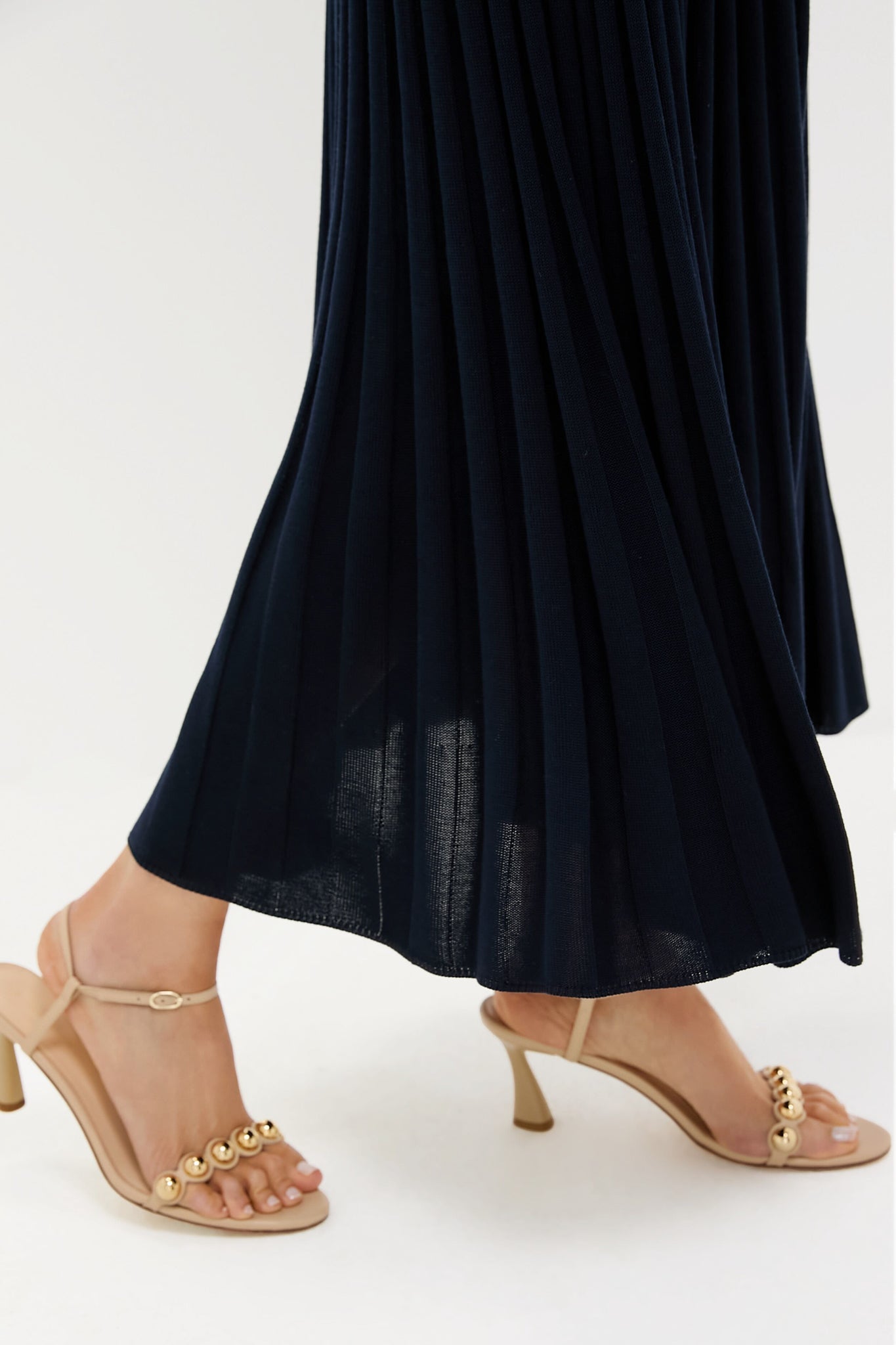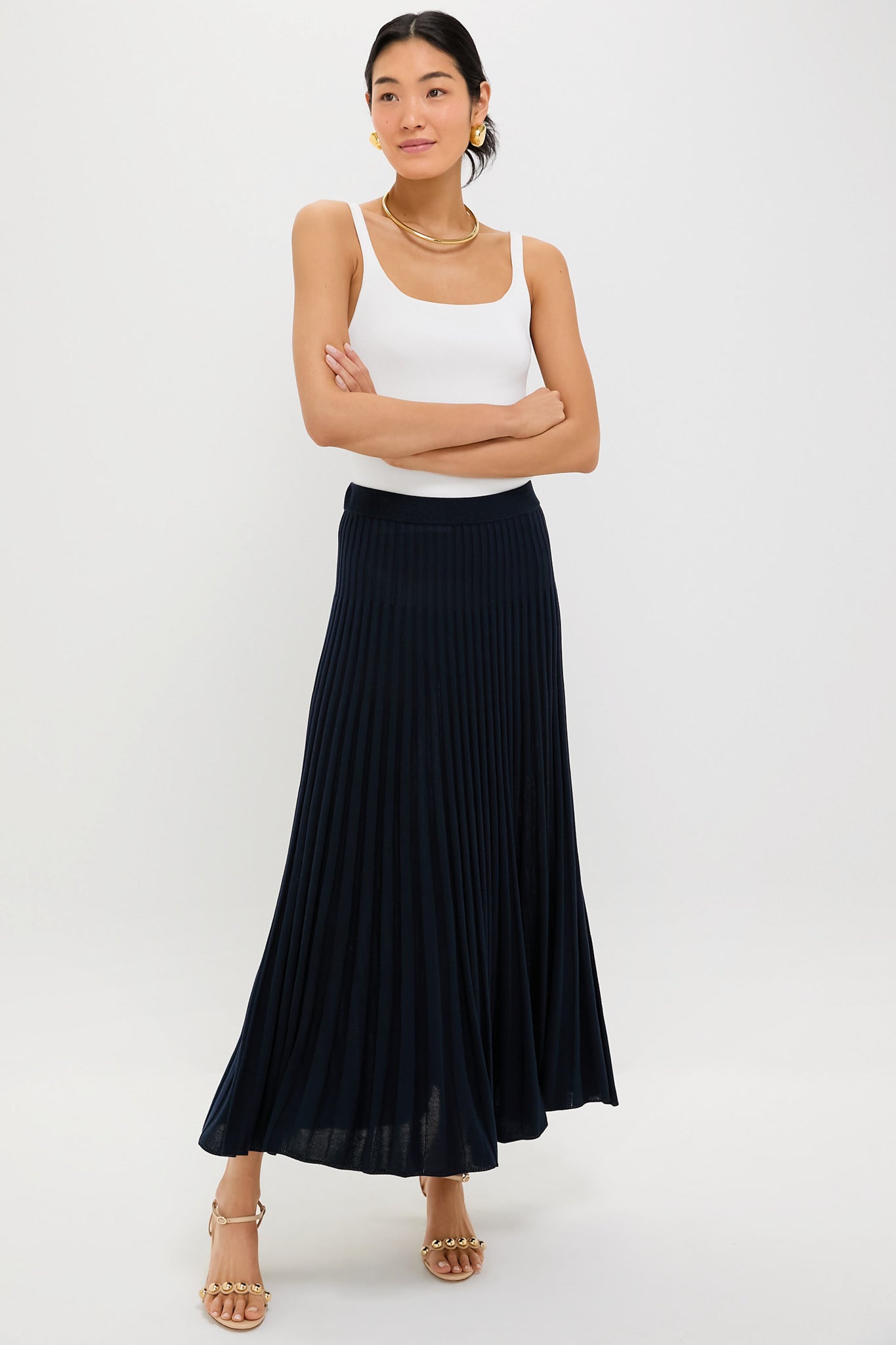 Meet the Navy Knit Kenley Skirt, your new go-to for understated elegance. With its lightweight knit fabric and fluid drape, this piece is as comfortable as it is sophisticated. Dress it up with heels and a silk blouse for dinner dates, or keep it casual with a tucked-in tee and sneakers for an effortlessly polished daytime look.