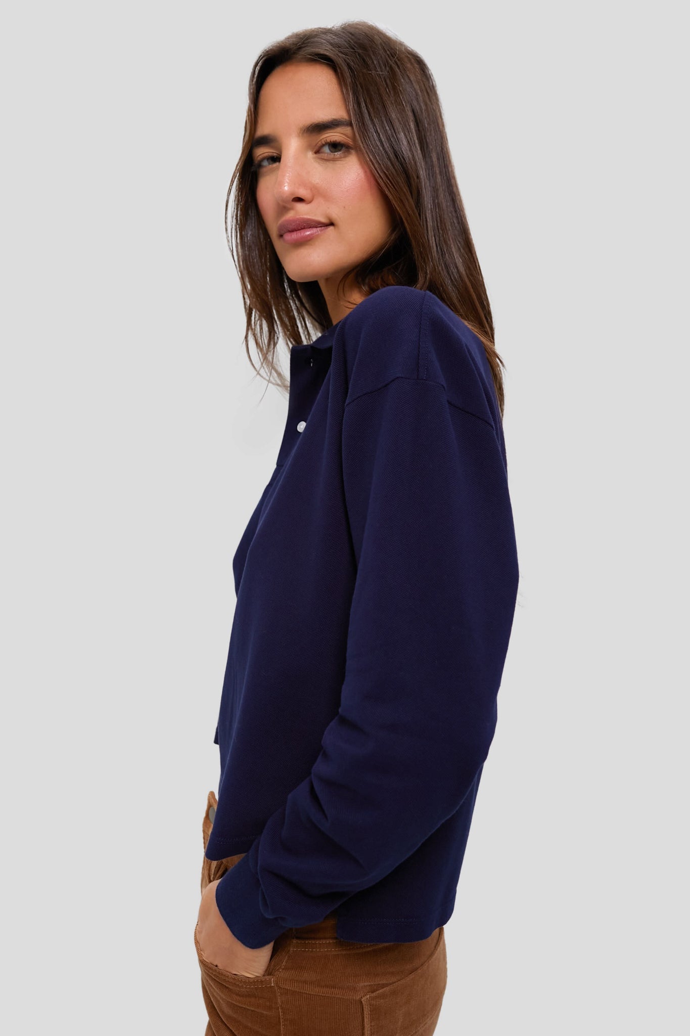 Navy Long Sleeve Pique Holmes Boyfriend Polo