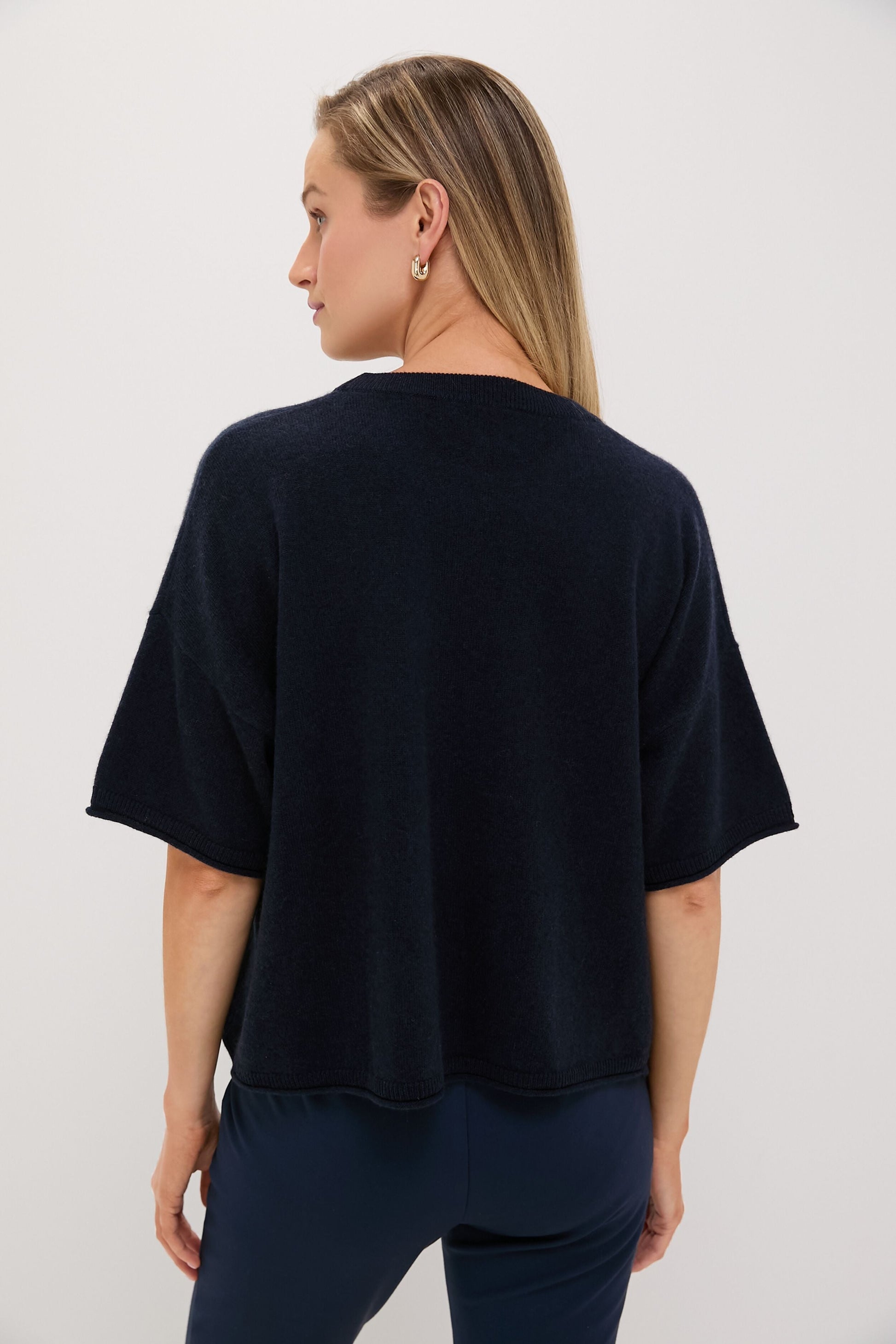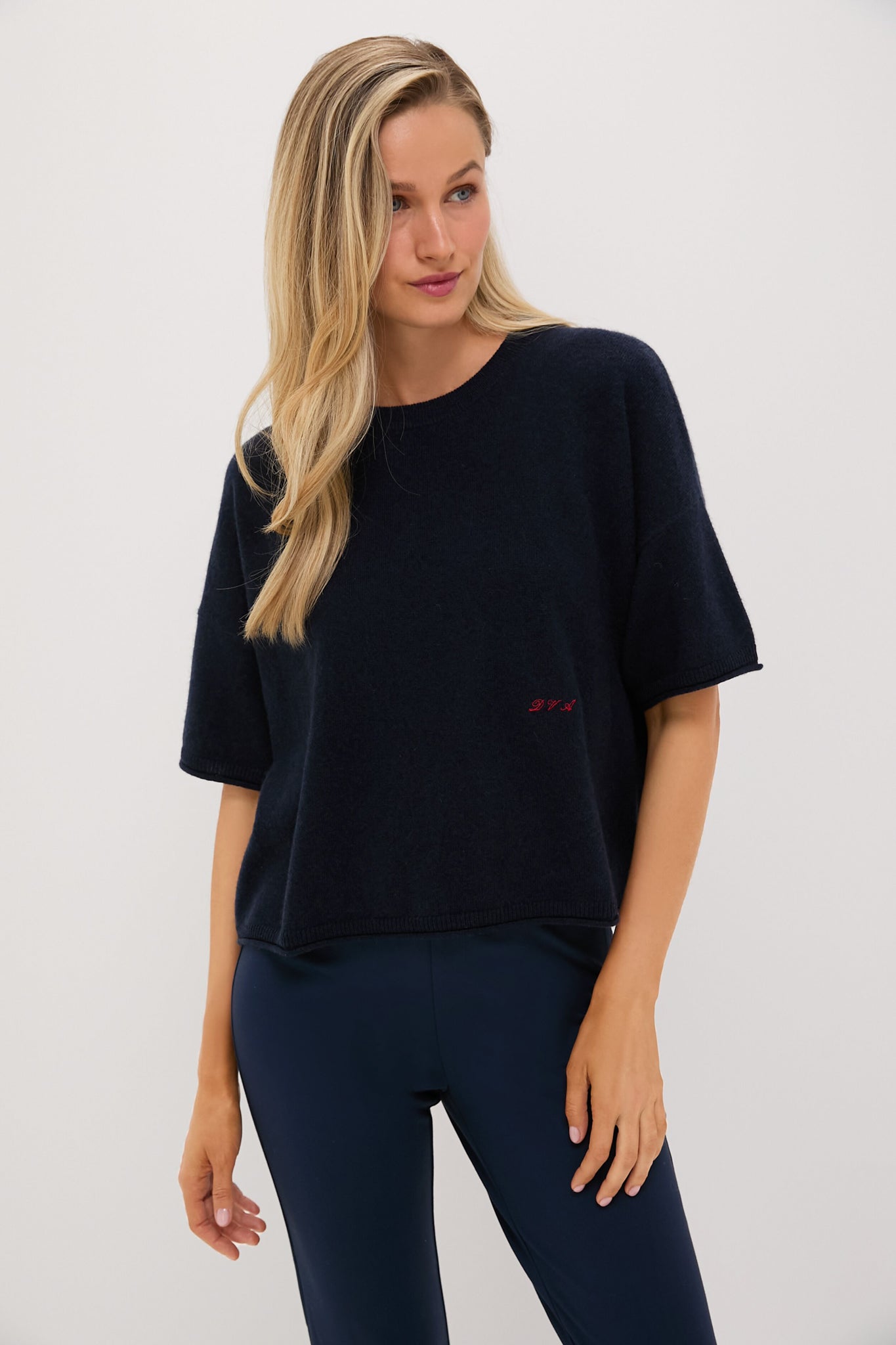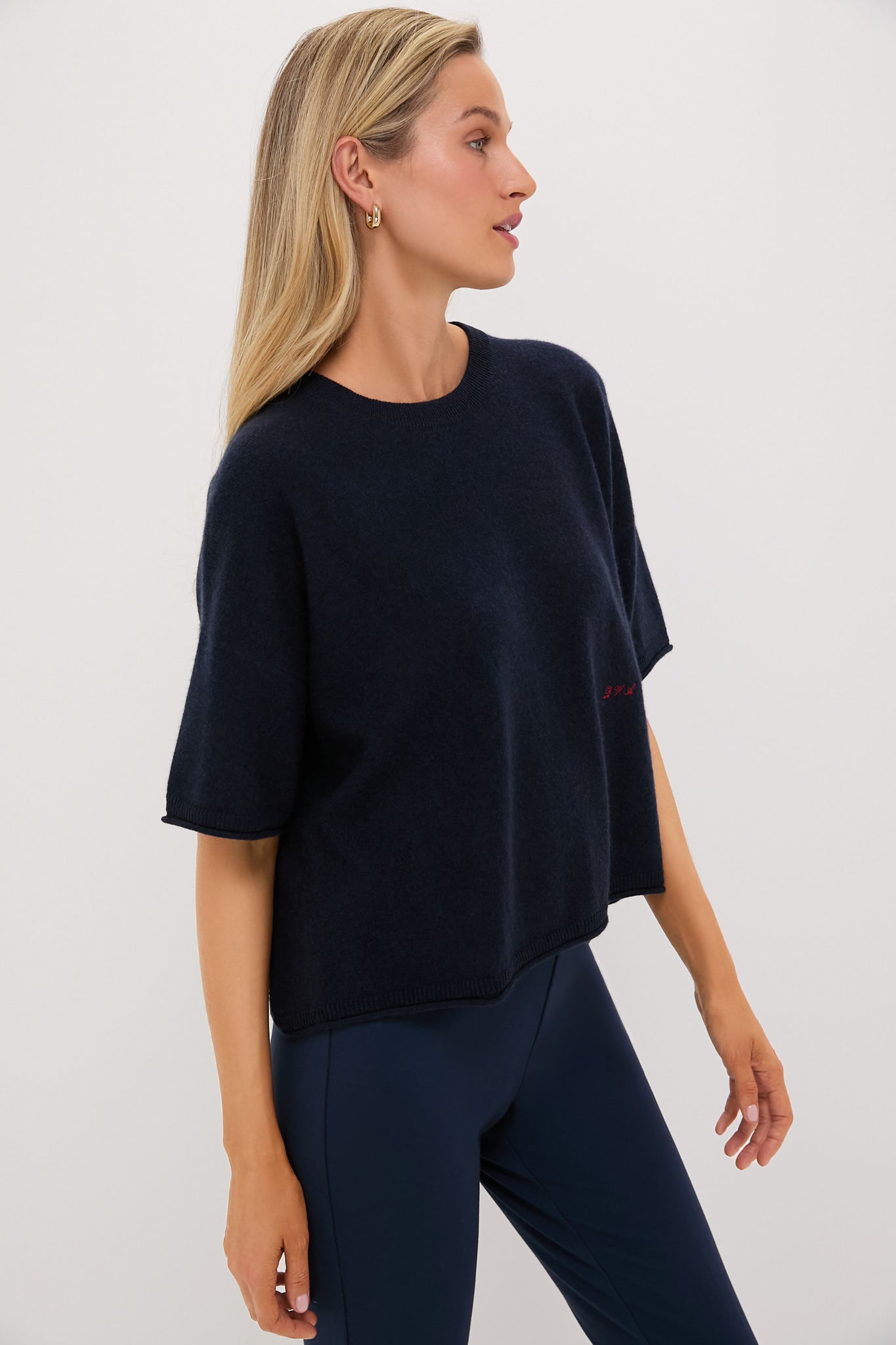 The Navy Lila Sweater elevates your everyday look with its ultra-soft cashmere and boxy silhouette. Perfect for everything from casual brunches to elevated workwear. Pair it with tailored trousers for a sleek office look or with leggings for a luxe off-duty vibe.