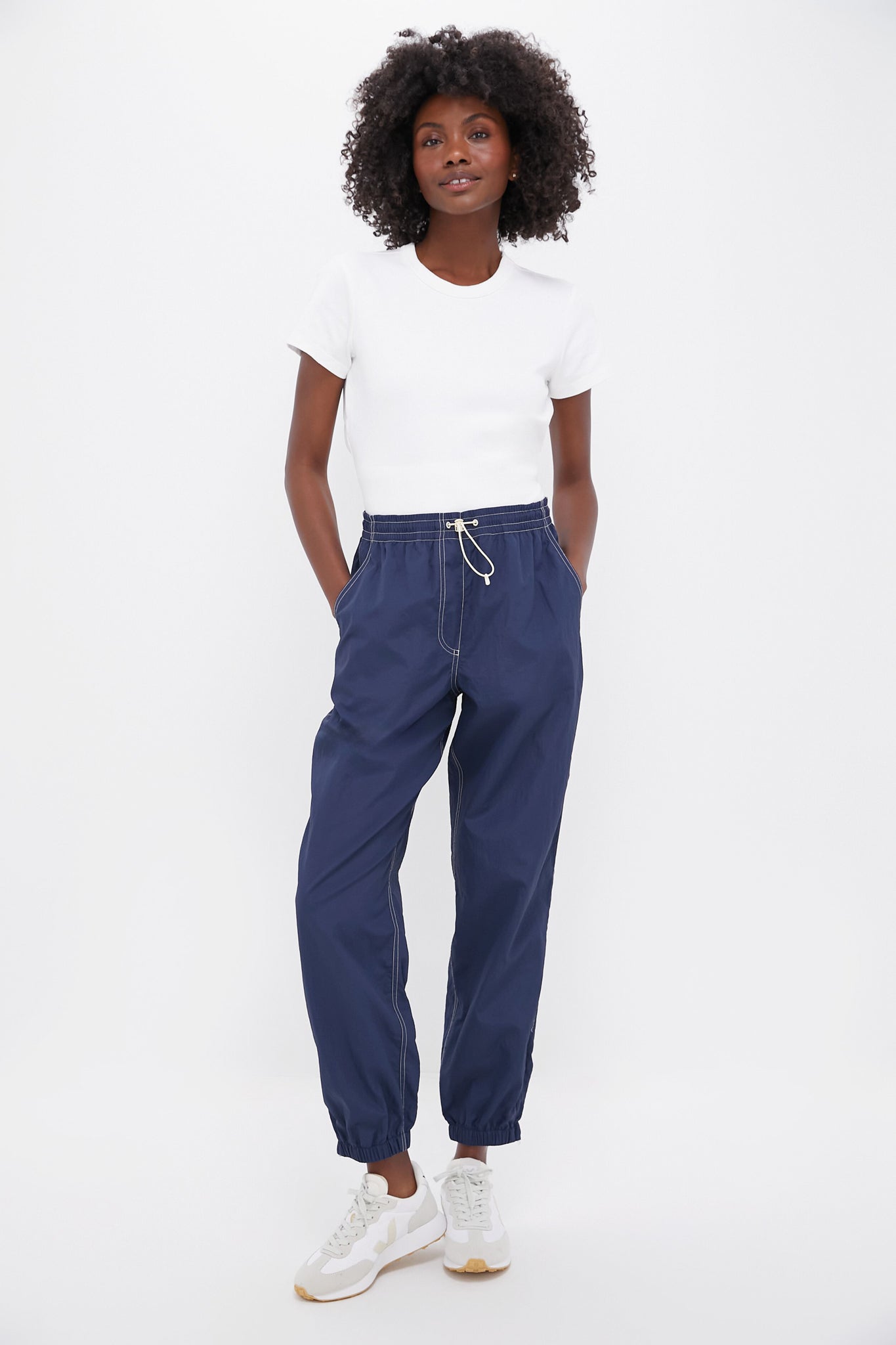 Made with a durable, lightweight and water repellant crinkle fabric, The Trailhead Pant is a must-have for transitional weather when you're on the go. The silhouette is perfectly tapered with an elastic waistband and cuff. Style with a plain tee or cozy pullover for a day spent out and about.
