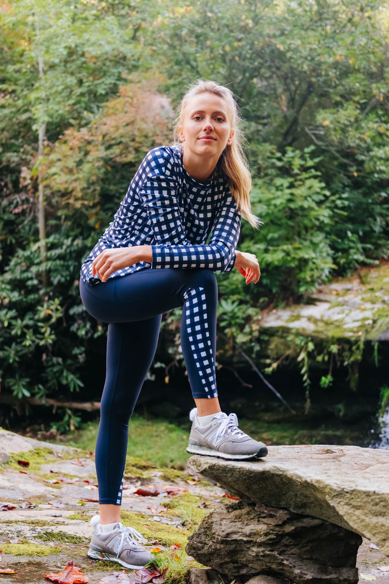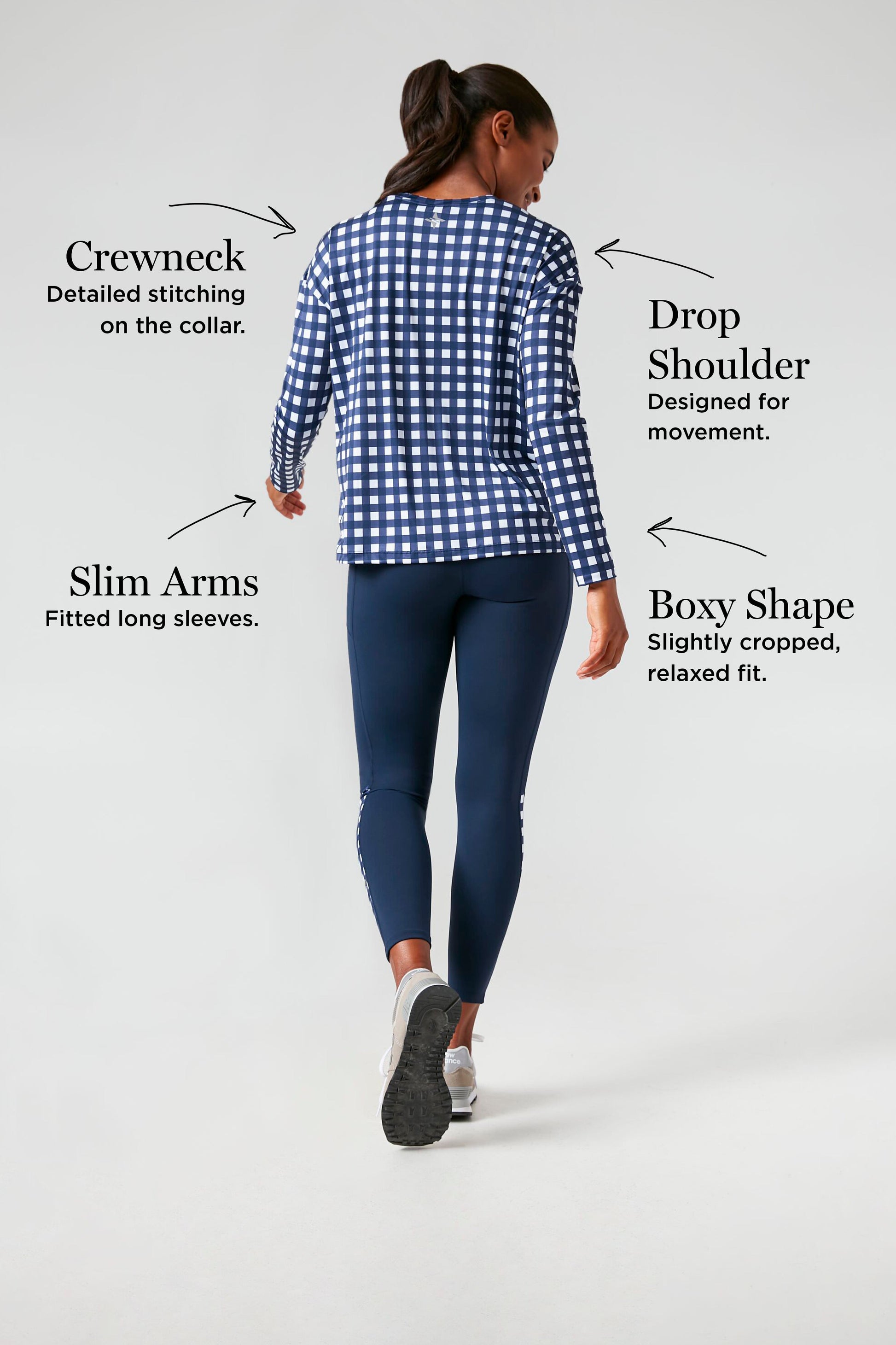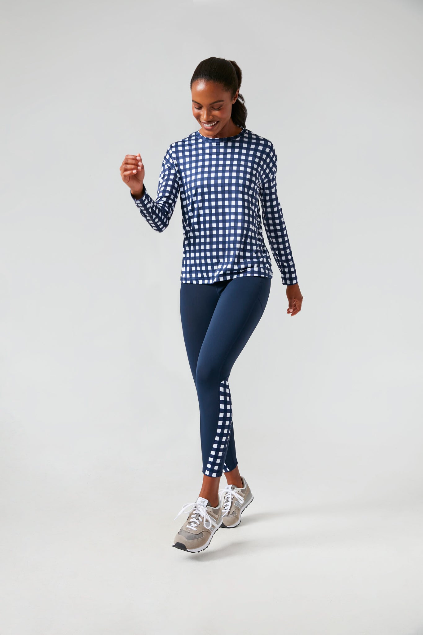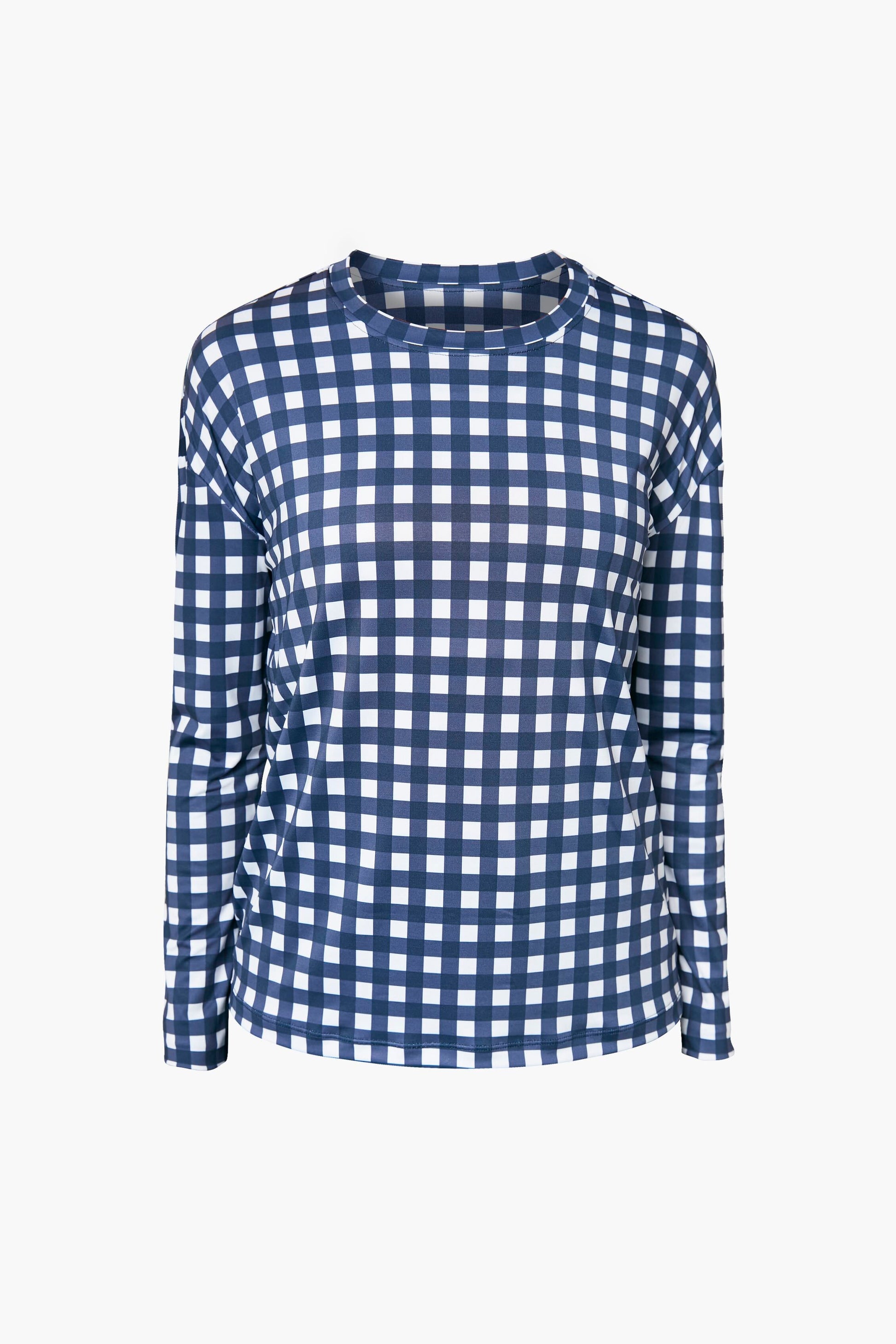 Navy Trellis Gingham Long Sleeve Ryan Boyfriend Tee