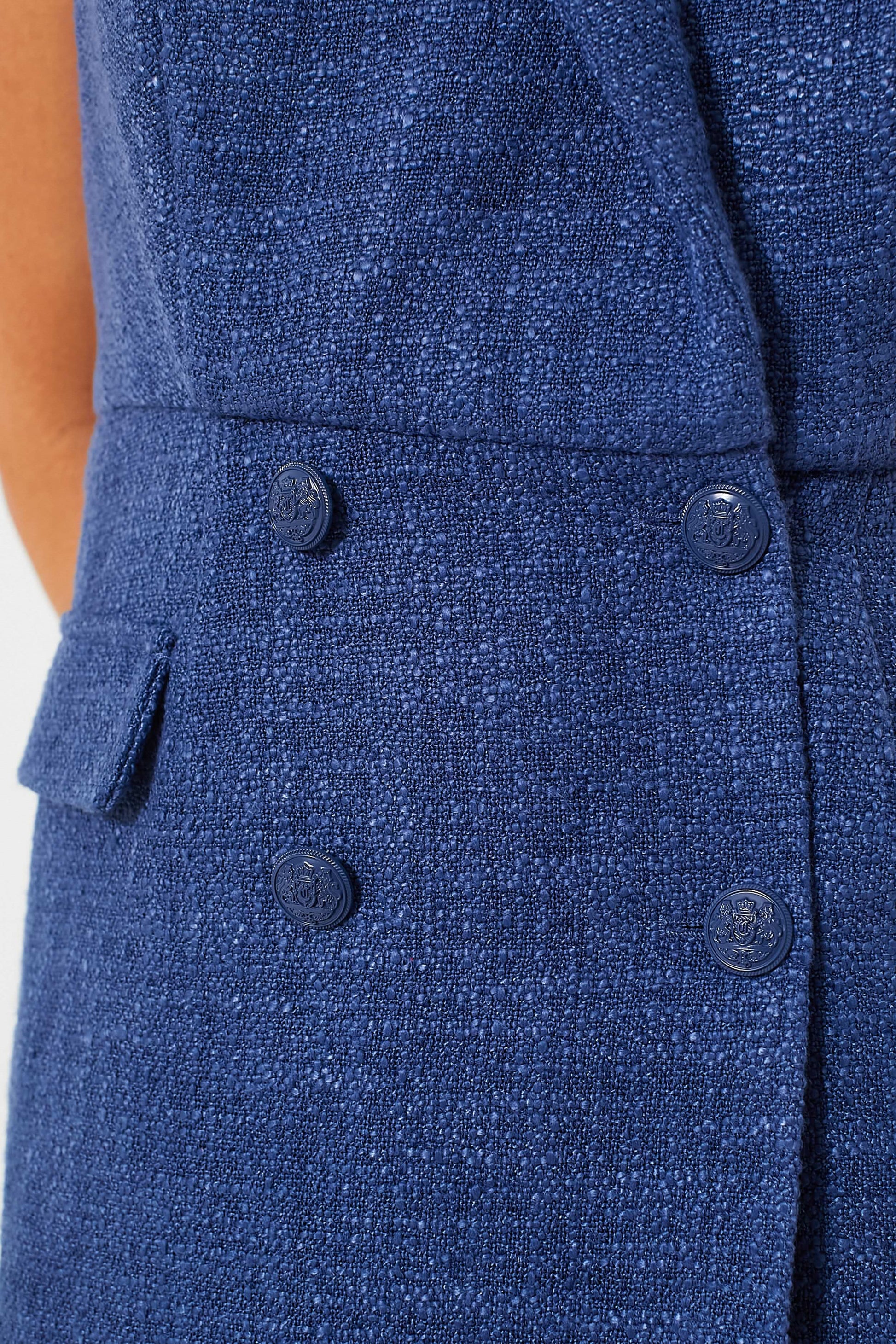 We are obsessing over the Navy Tweed Campbell Romper, the ideal desk to drinks warm-weather style! This sophisticated silhouette features a classic, yet modern construction, with a notch collar, front flap pockets, and double front buttons. Pair with loafers for the office, and switch into strappy flats for happy hour!