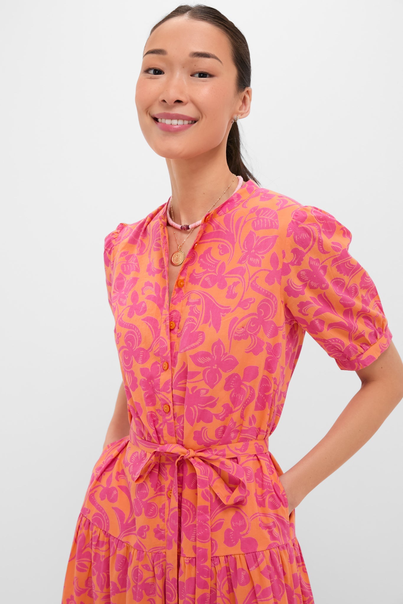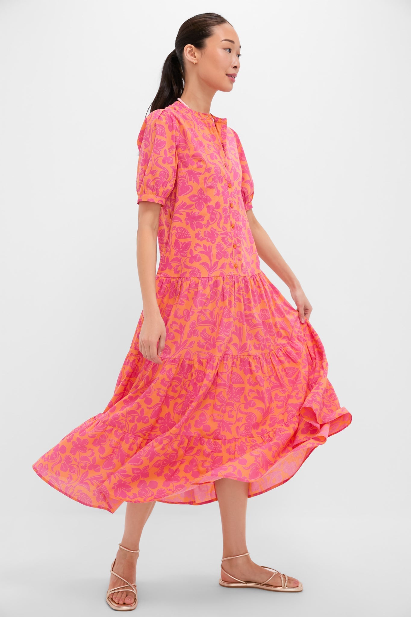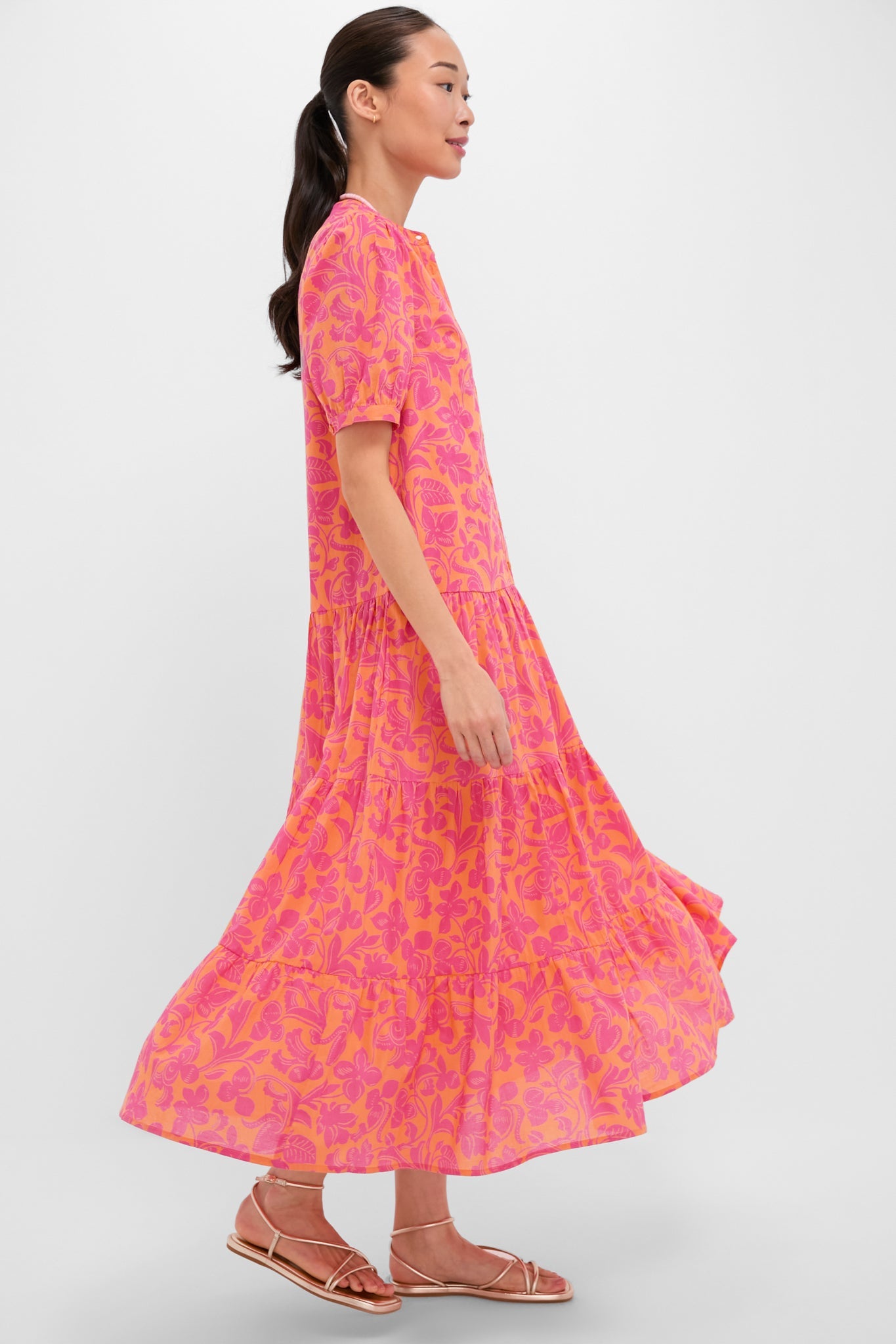 The Nectarine Saylor Dress boasts a bold, sunset-shaded celebration of florals inspired by antiquity. The tiered skirt falls loosely from the waist, which you can cinch with the detachable belt for a custom fit. Pair with heels for special occasions or sneakers for daytime activities.