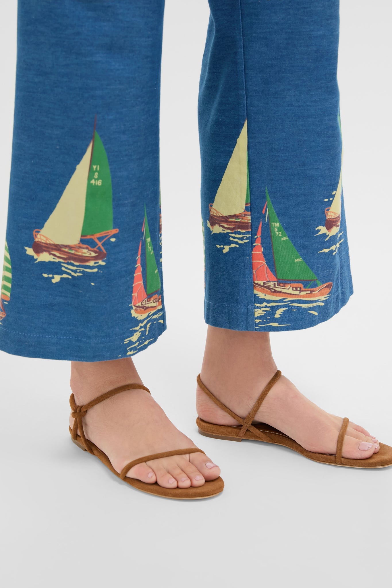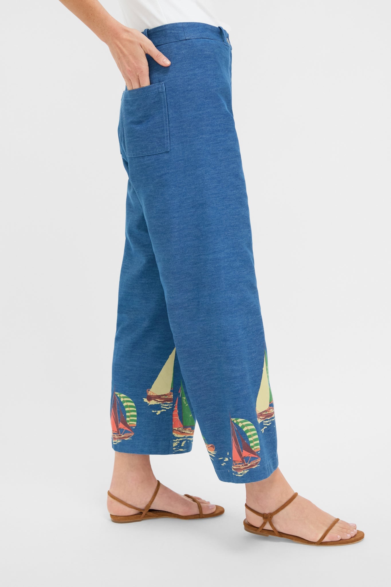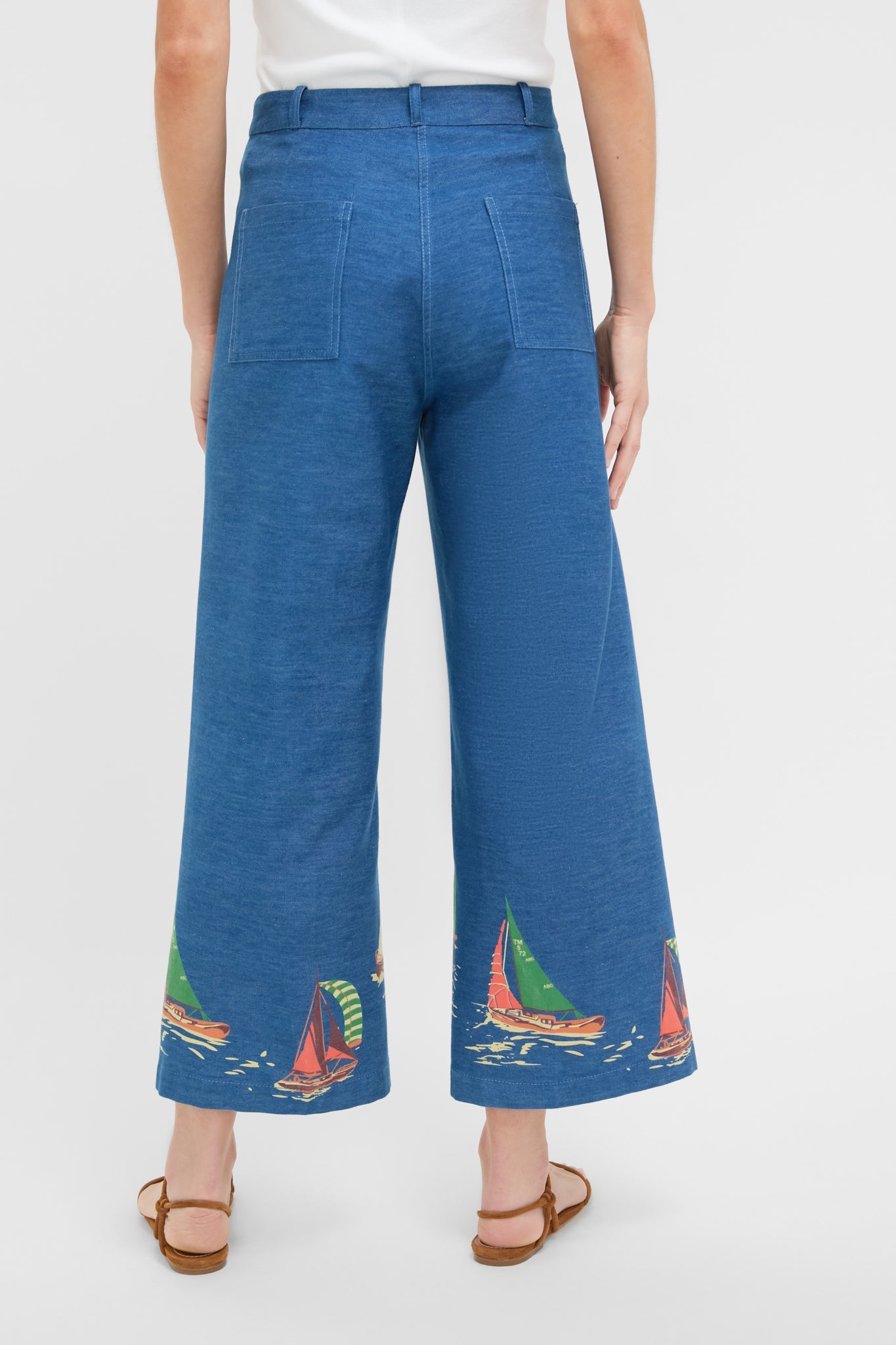 The Newport Regatta Chambray Long Florence Pants boast a wide waistband with a zip fly and button closure, back slit pockets, and a stylish wide cuff. The sailboat print decorating the hem instantly transports us to breezy beachside afternoons. Pair with sneakers and a tank for casual weekend days, or dress up with a crisp blouse and flats!