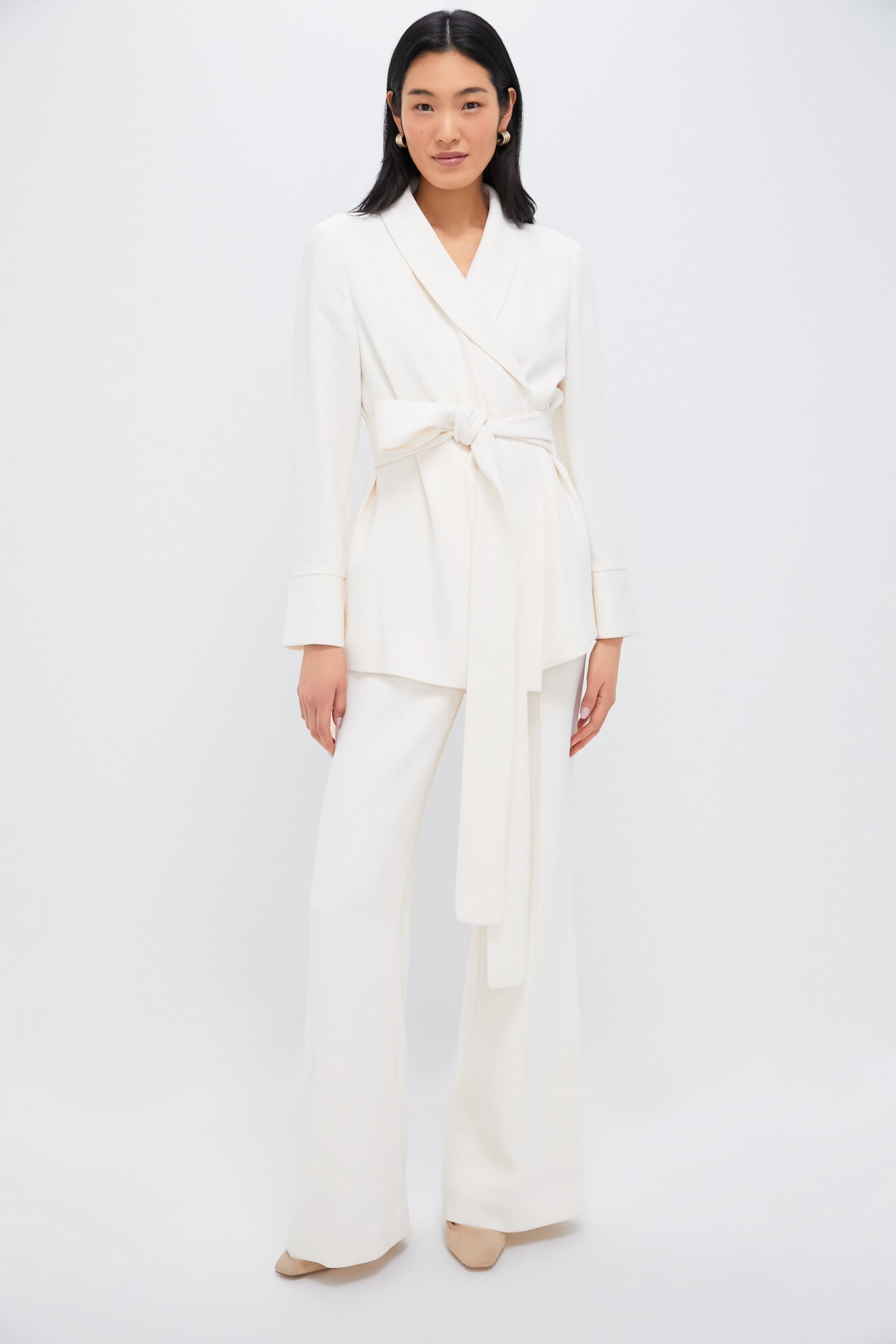 The Pearl White Crepe Versailles Pant are a fun and chic pant with a classic wide-leg silhouette. With a high rise and flattering pleating, these pants are sure to stand the test of time. Pair with the matching Pearl White Crepe Talia Wrap Blazer, heels, and a handbag for an elegant, monochromatic look, or pair with a colorful blouse and heels for springtime affairs!