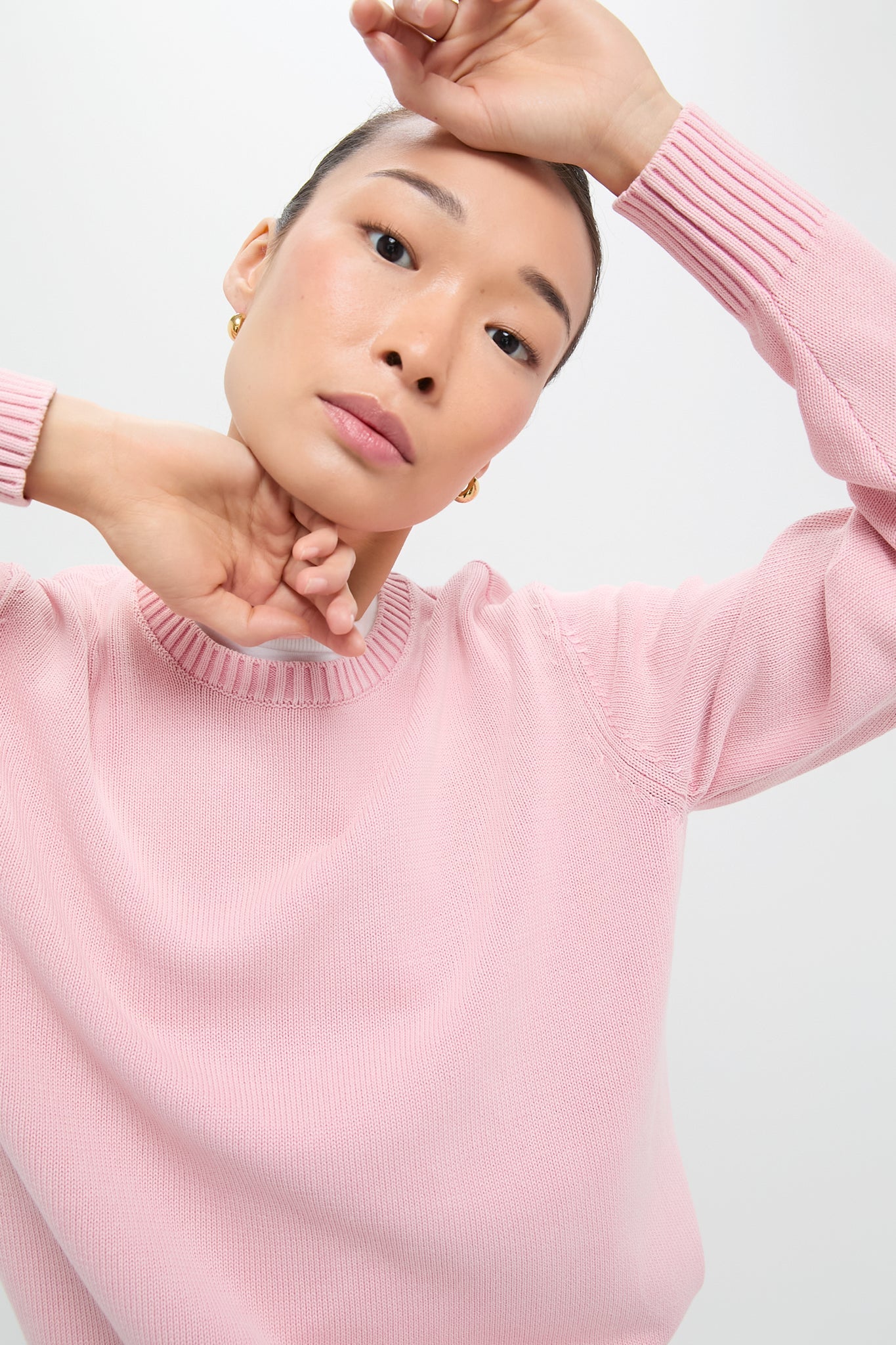 Pink Stone Washed Cotton Anne Crewneck Sweater