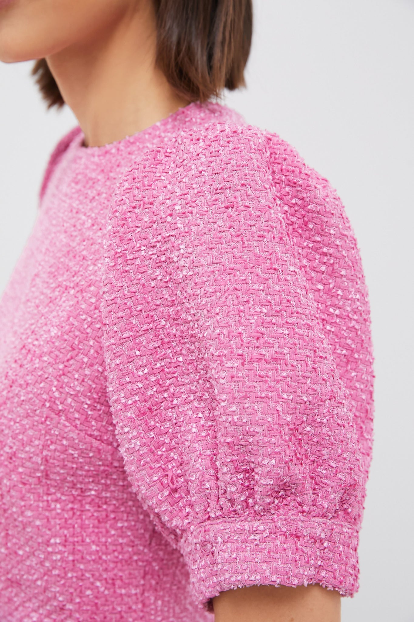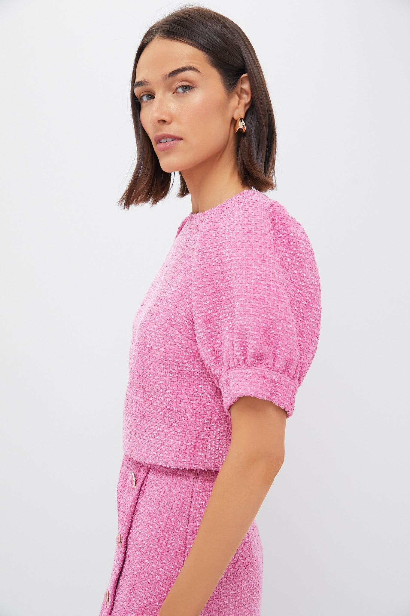 The Pink Annabelle Top blends a chic silhouette with an eye-catching tweed texture to create a look that exudes sophisticated femininity. Pair with white denim and ballet flats or with the matching Pink Tweed Andi Mini Skirt and heels for date night!