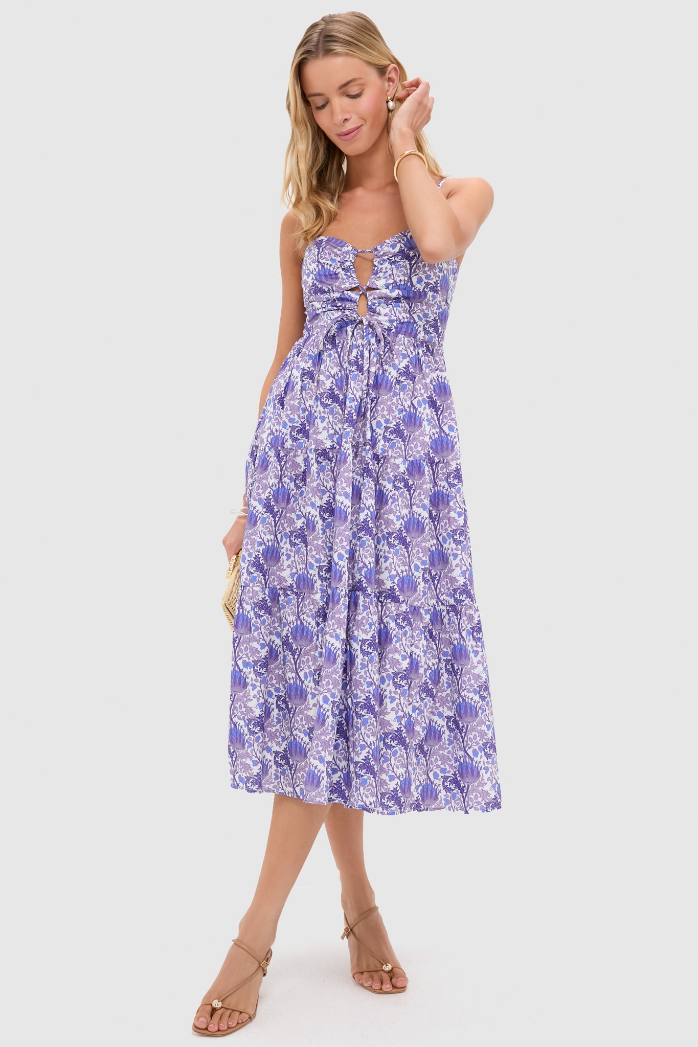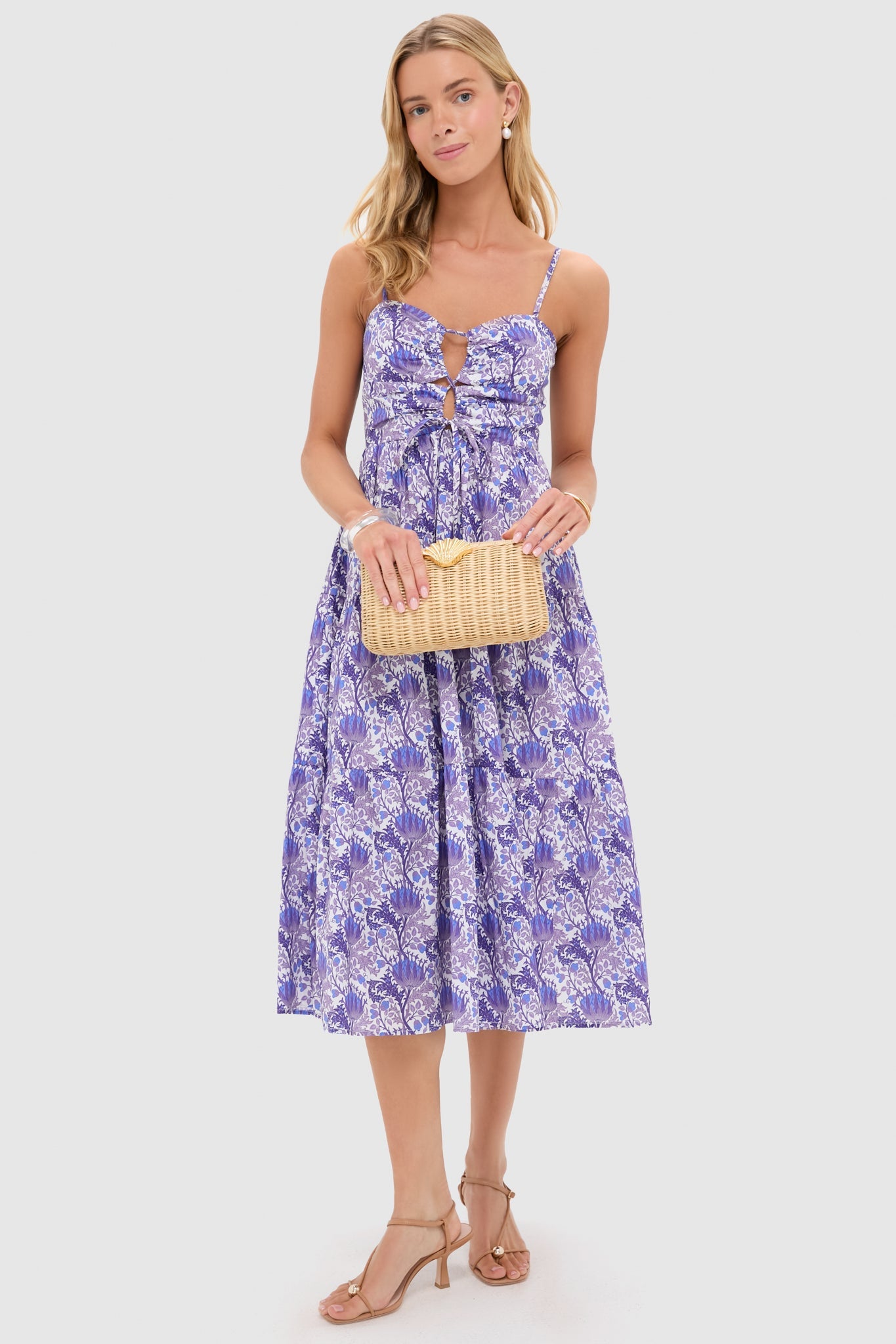 Purple Multi Floral Corinne Cut-Out Midi Dress
