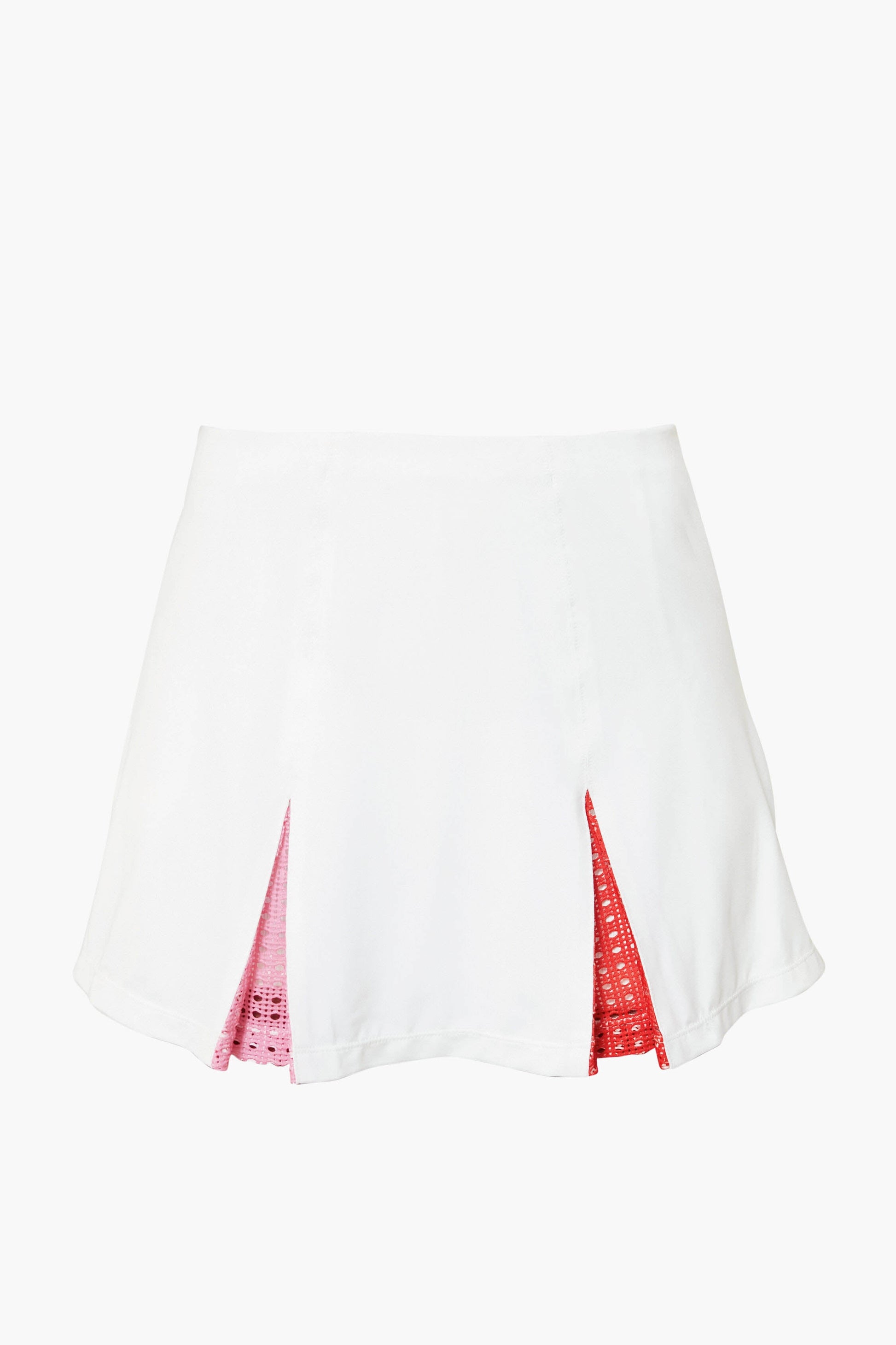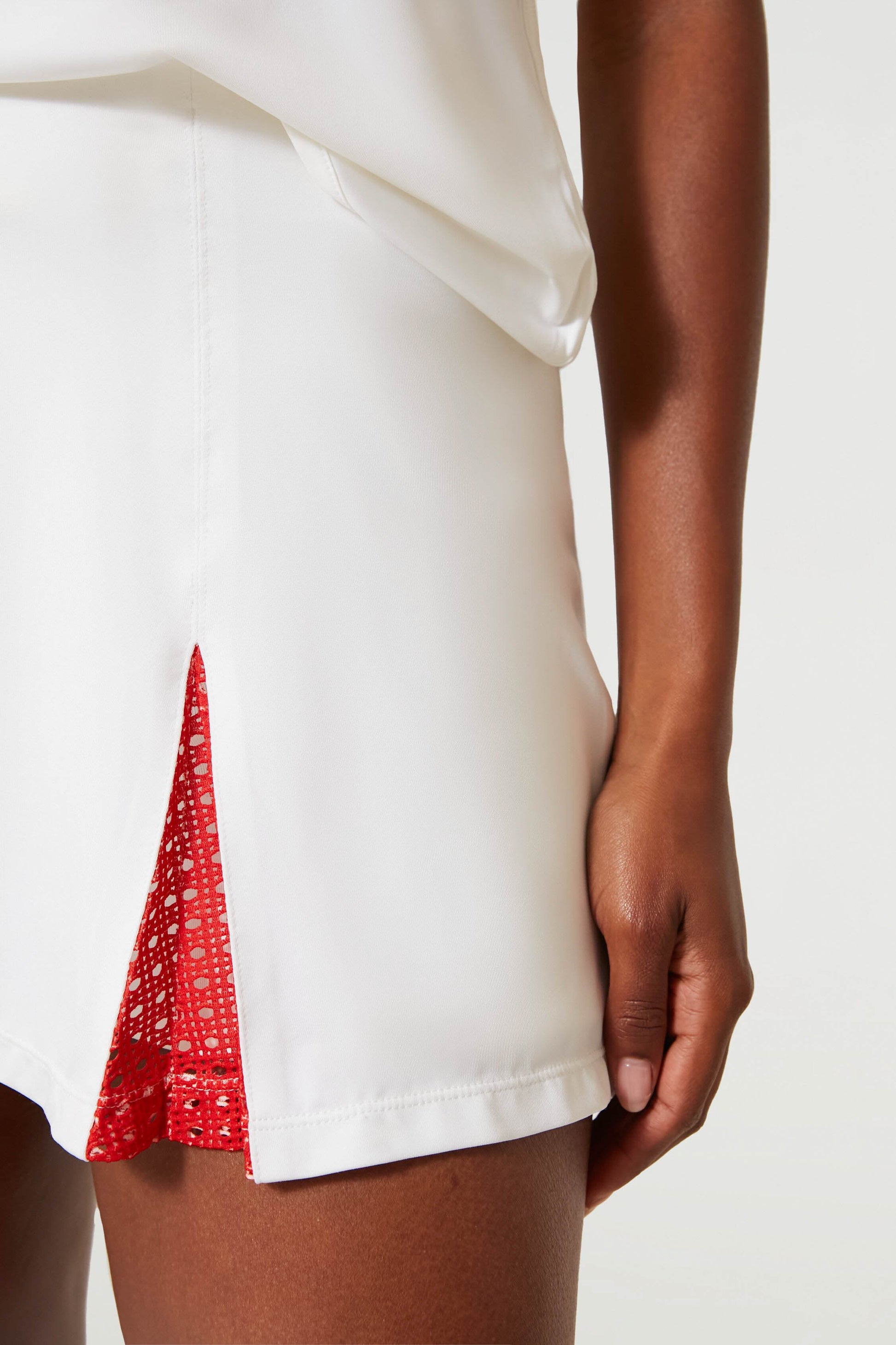 The 14 Inch Carly Tennis Skirt is retro-chic with performance enhancing features such as the compression undershorts, quick dry and wicking properties, and duel pockets for your phone or tennis ball. With feminine details like the contrast gussets, you are sure to make a statement however you style this.