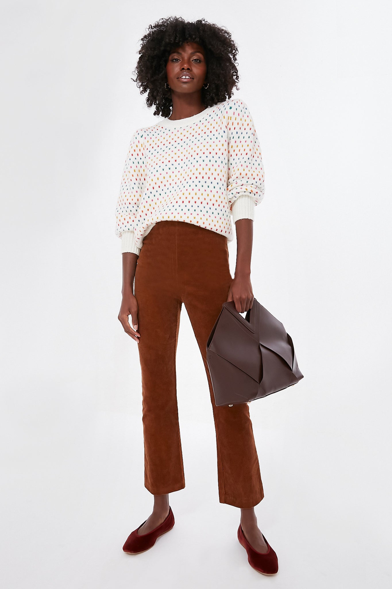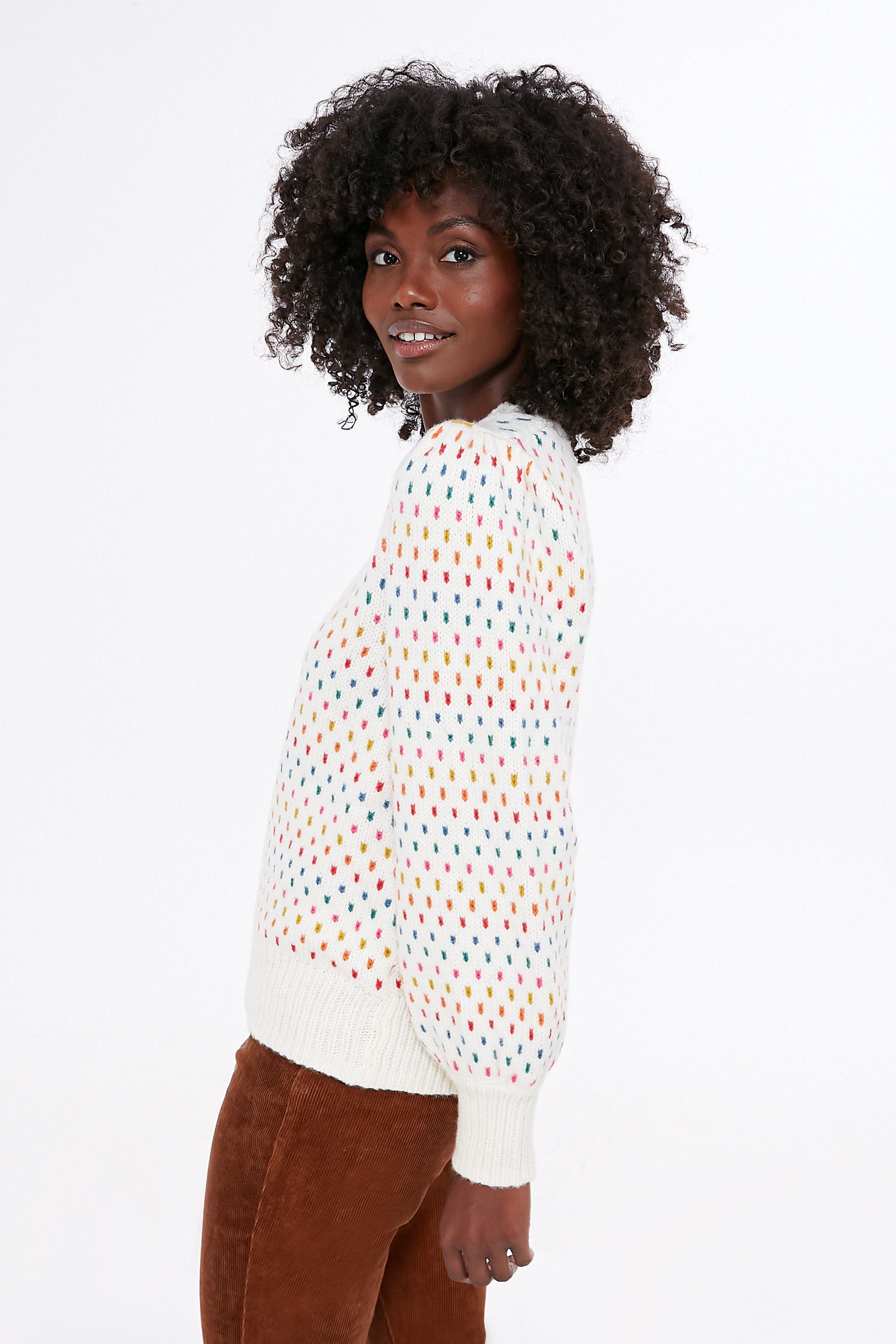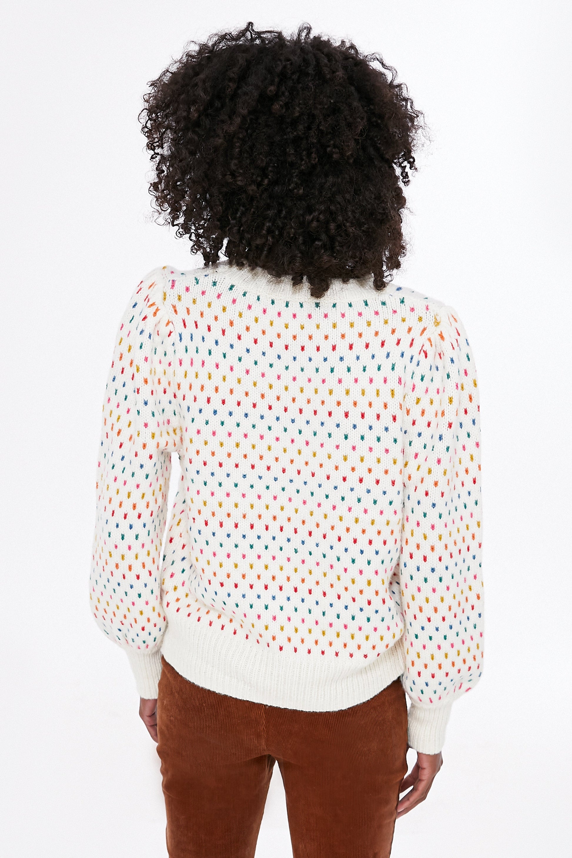 Wishing to add a bit of color to your winter wardrobe? Enter the Rainbow Puff Sleeve Crewneck, which is perfect for brightening things up with a multicolor dot motif. A ribbed neckline, cuffs, and hem makes this sweater super cozy, while a puff shoulder and bishop sleeves make this silhouette feel a bit more delicate and light. Perfect for pairing with denim and your favorite white sneakers for midday meetups with friends, or with colored corduroys to lean into on-trend brights.