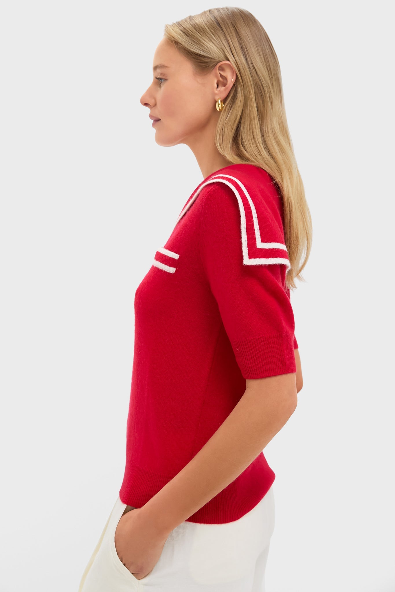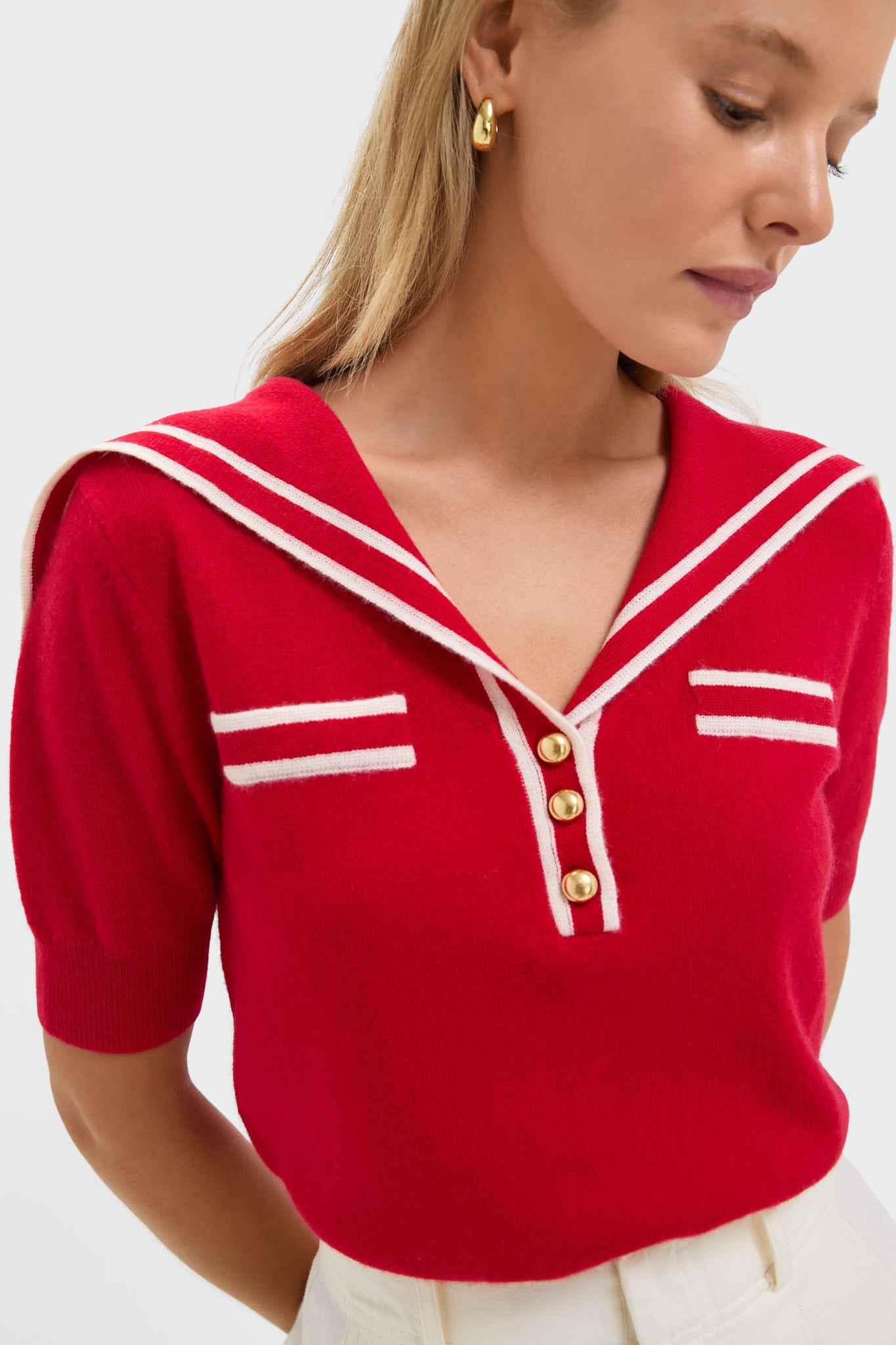 Red and Ivory Cashmere Sailor Sweater