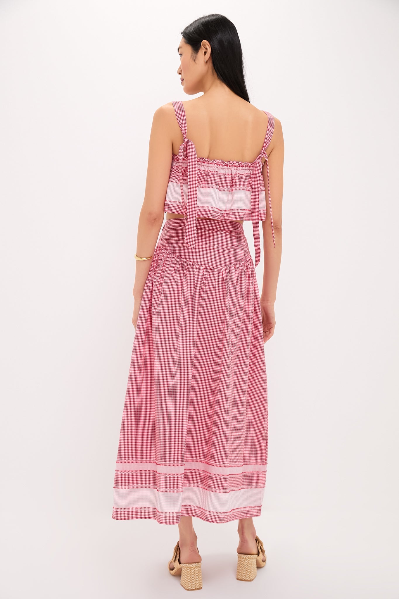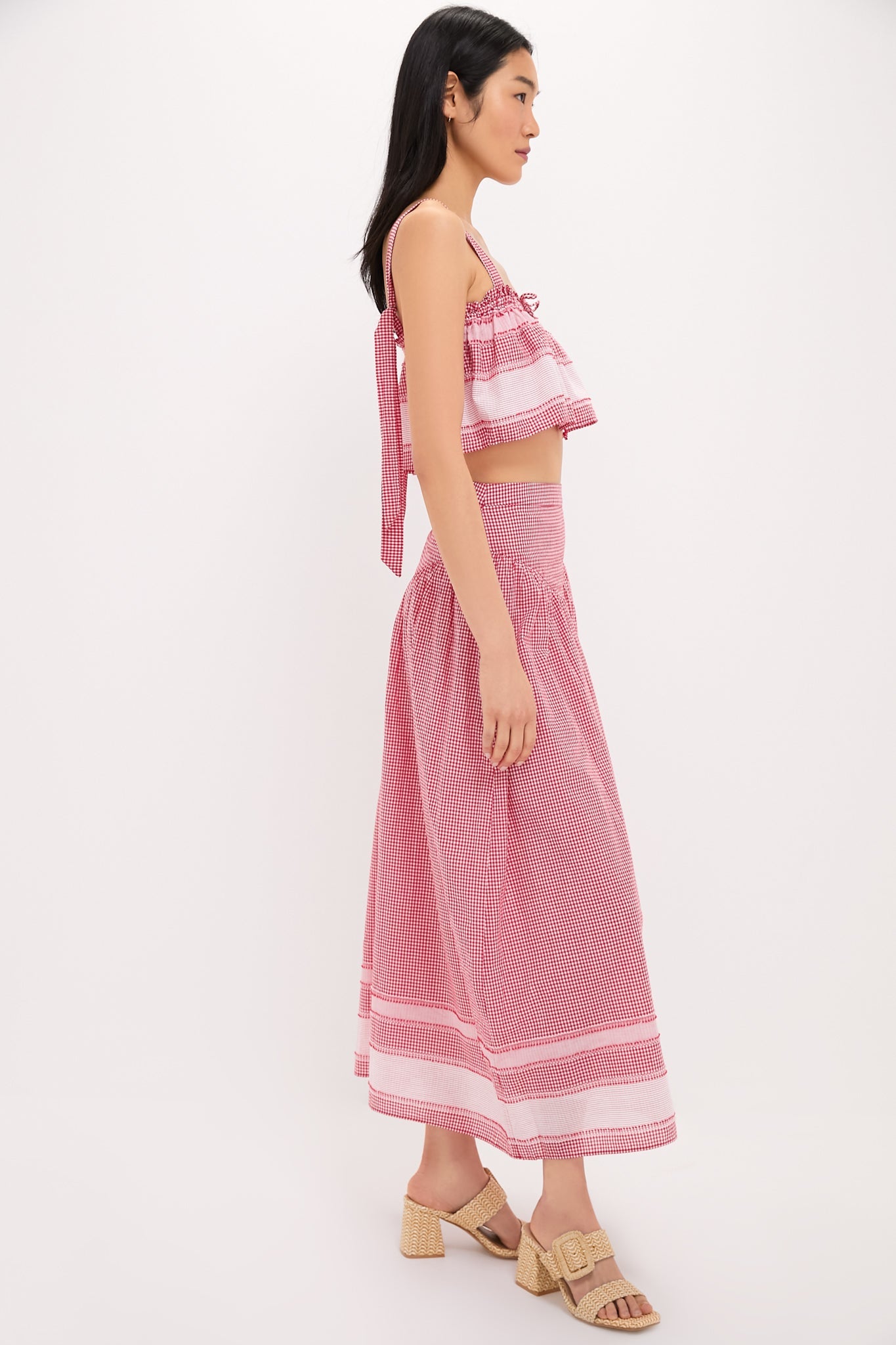 Ready for warmer days ahead? The Red and White Judy Skirt Set screams sunny and 75! Featuring a matching midi skirt with a drop waist and smocked crop top combo, just add a picnic basket for a the perfect springtime look. We styled it with woven heels, a clutch, and sunnies for all your daytime affairs.