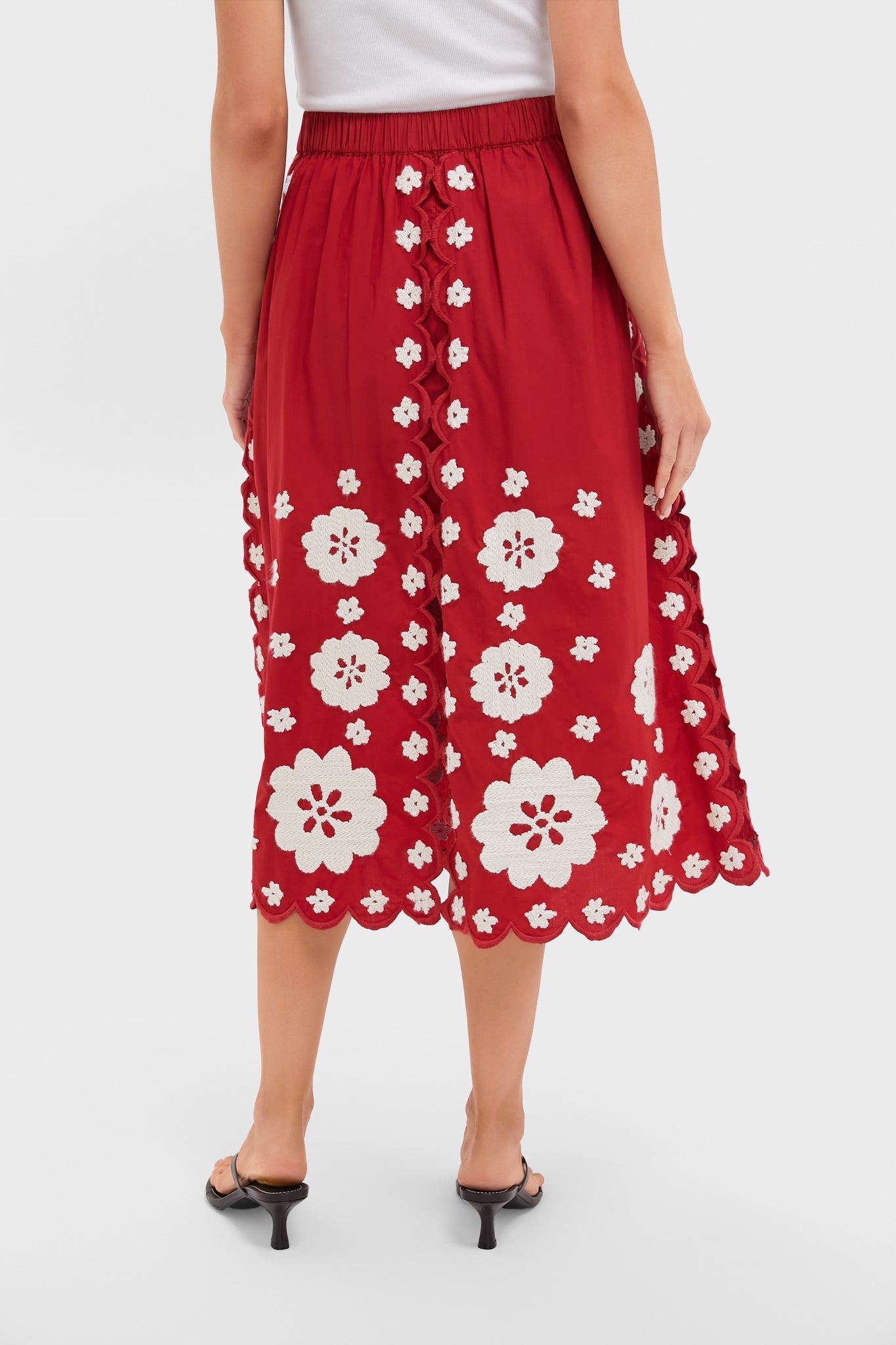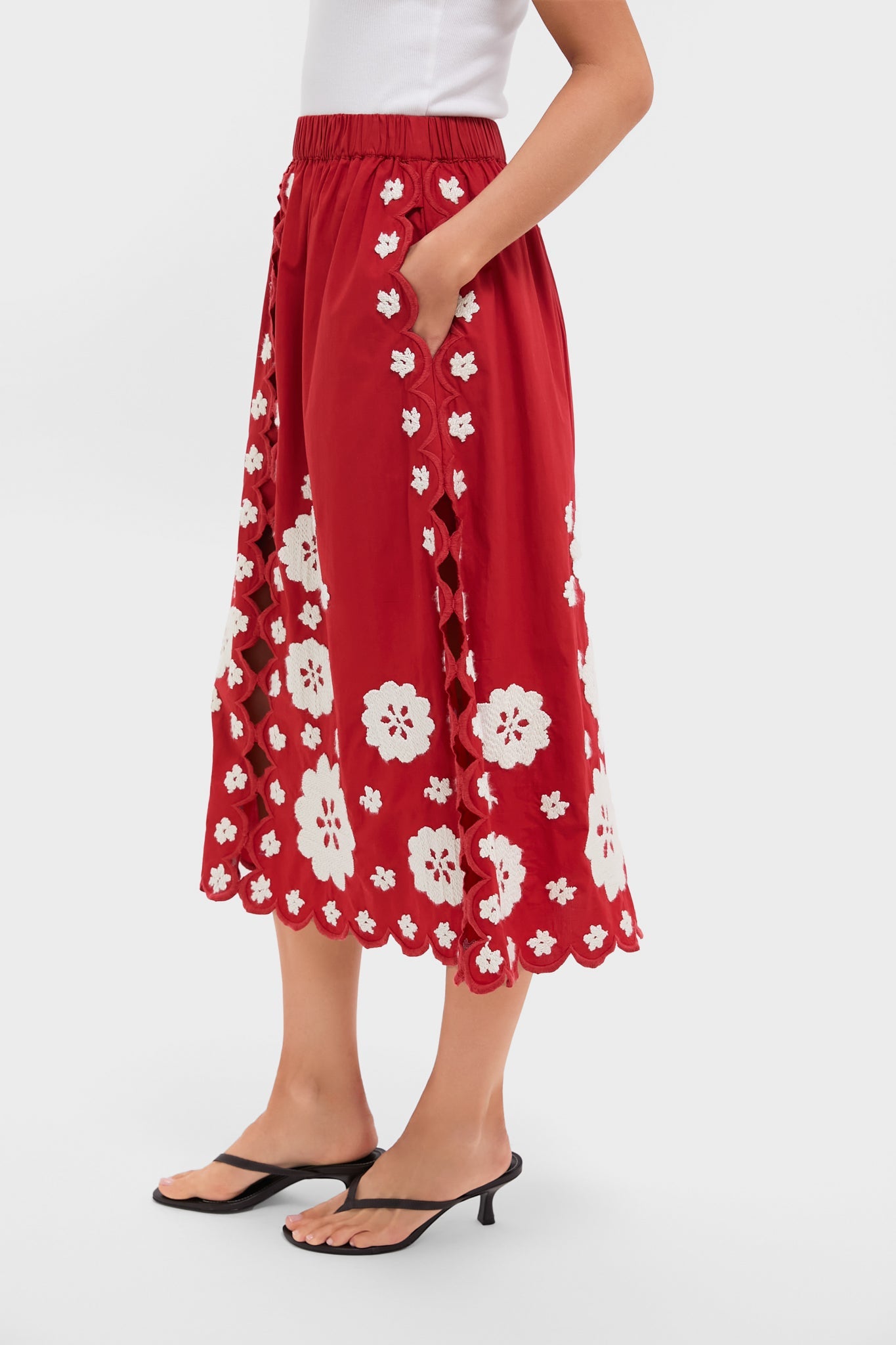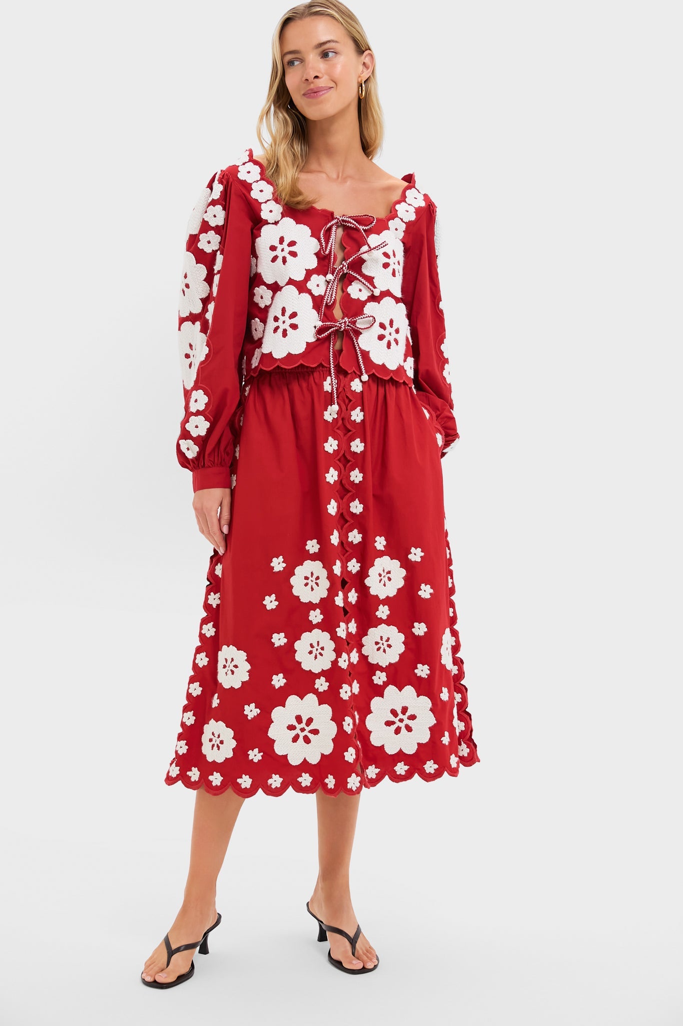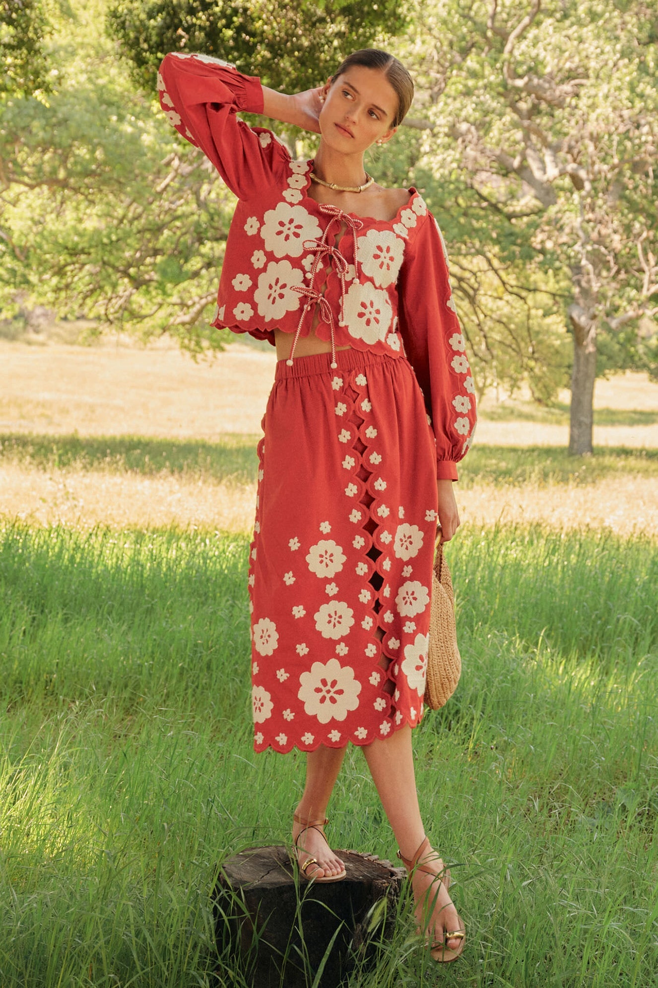 The Red Catrine Appliqué Midi Skirt brings serious charm with all-over floral embroidery, scalloped edges, and a playful front slit. The elastic waistband keeps it comfy, while the intricate detailing makes it feel anything but basic. Pair it with the matching Red Catrine Applique Long Sleeve Top for a statement set or tone it down with a tucked-in tee and sandals.