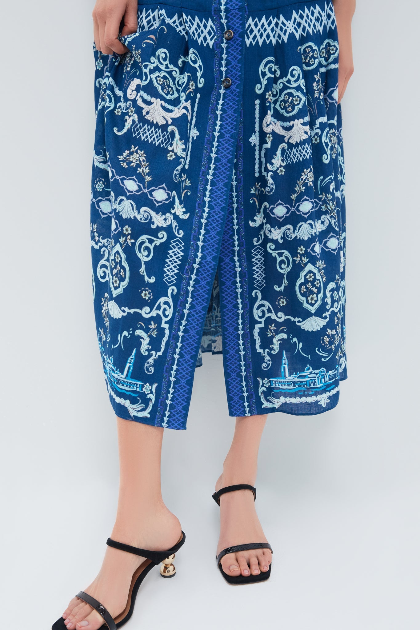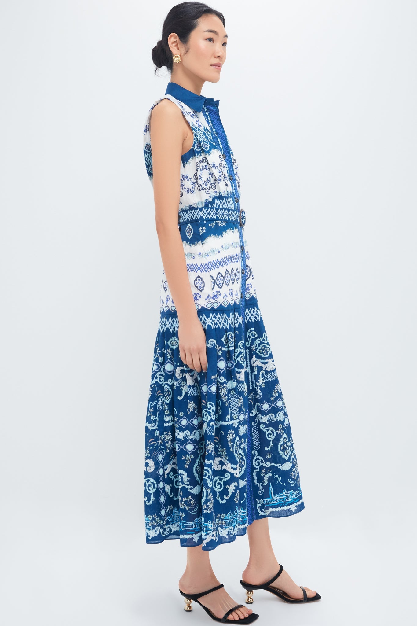 The Riviera Placement Nya Midi Dress blends ease and elegance with its sleeveless shirt-dress silhouette and softly pleated full skirt. The tonal fabric belt offers a flattering fit, perfect for garden parties, seaside dinners, or breezy weekends. Pair with espadrilles or flats for a timeless, comfortable look.