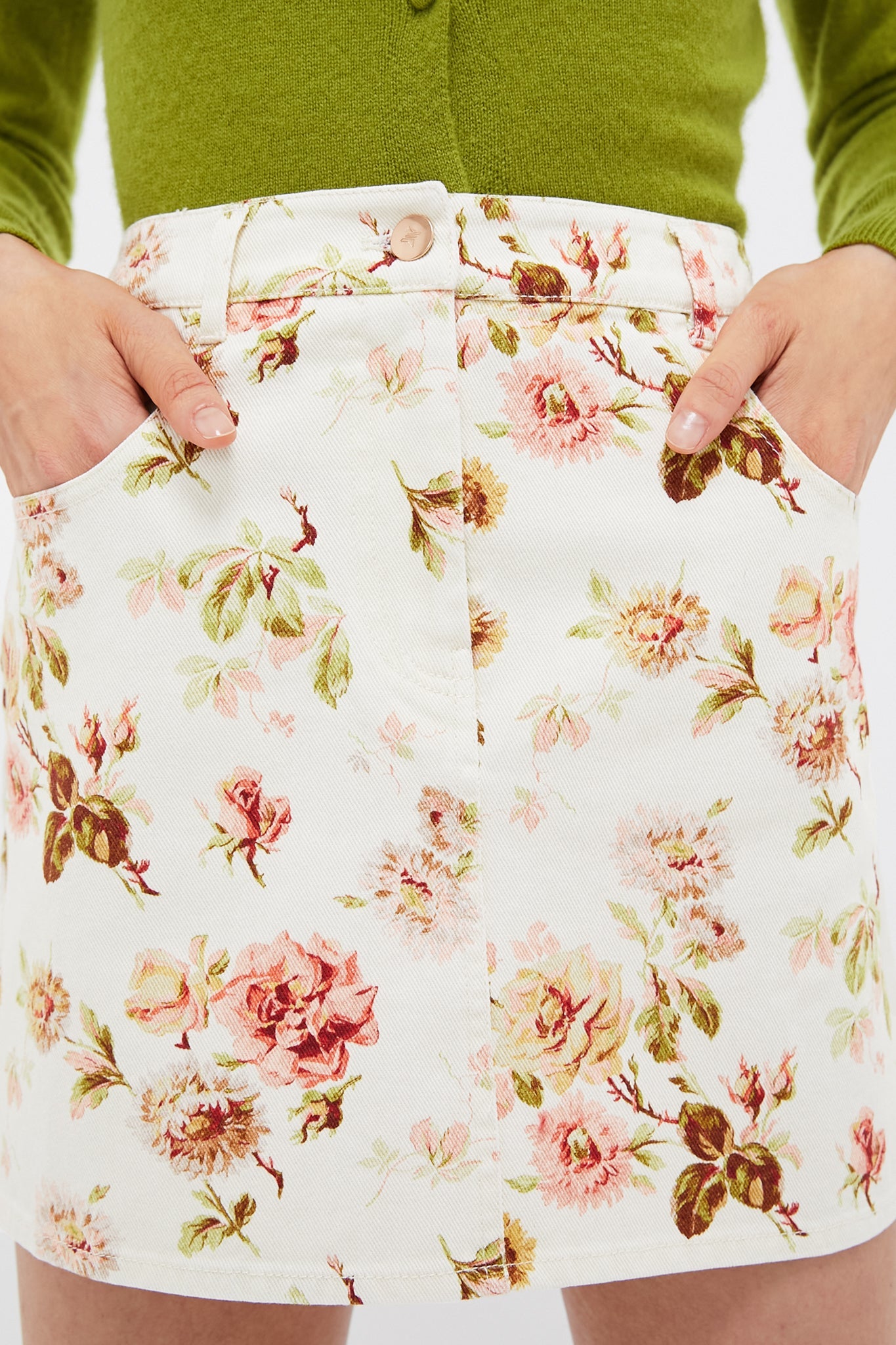 The Pippa Mini Skirt is made from a soft denim in a romantic floral print. Perfect for warm-weather activities and date nights, we are styling this with a simple white tank and sandals, and throwing a cardigan on for breezy evenings.