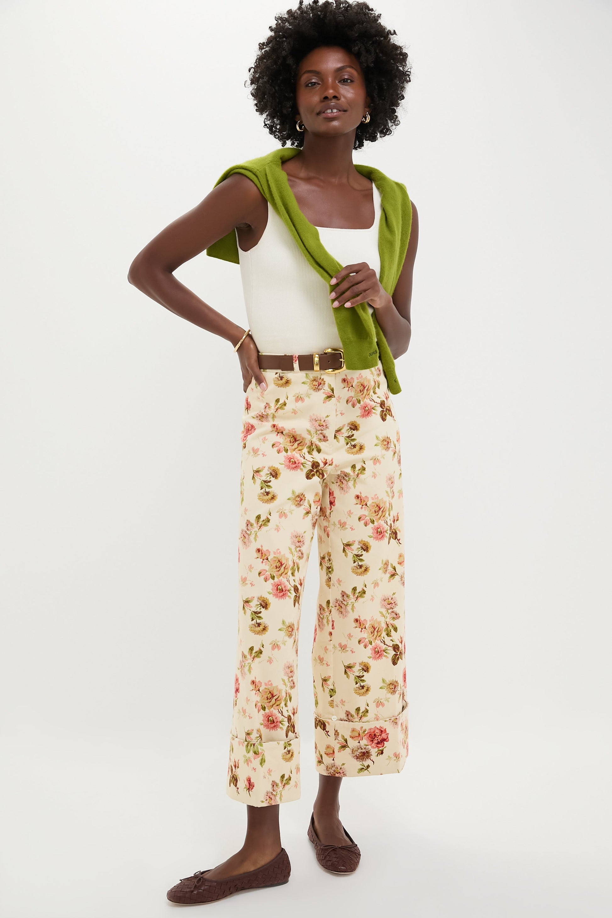 The Romantic Floral Twill Florence Pants are the perfect item to carry you through the season. Buttons at the cuff allow you to wear either cuffed for a cropped look or full length for a more elongating look.The beautiful print and high waisted fit make these pants chic and flattering whichever way you decide to wear them. We love dressing up with a colorful cardigan and heels or dressing down with a tank top and flats.