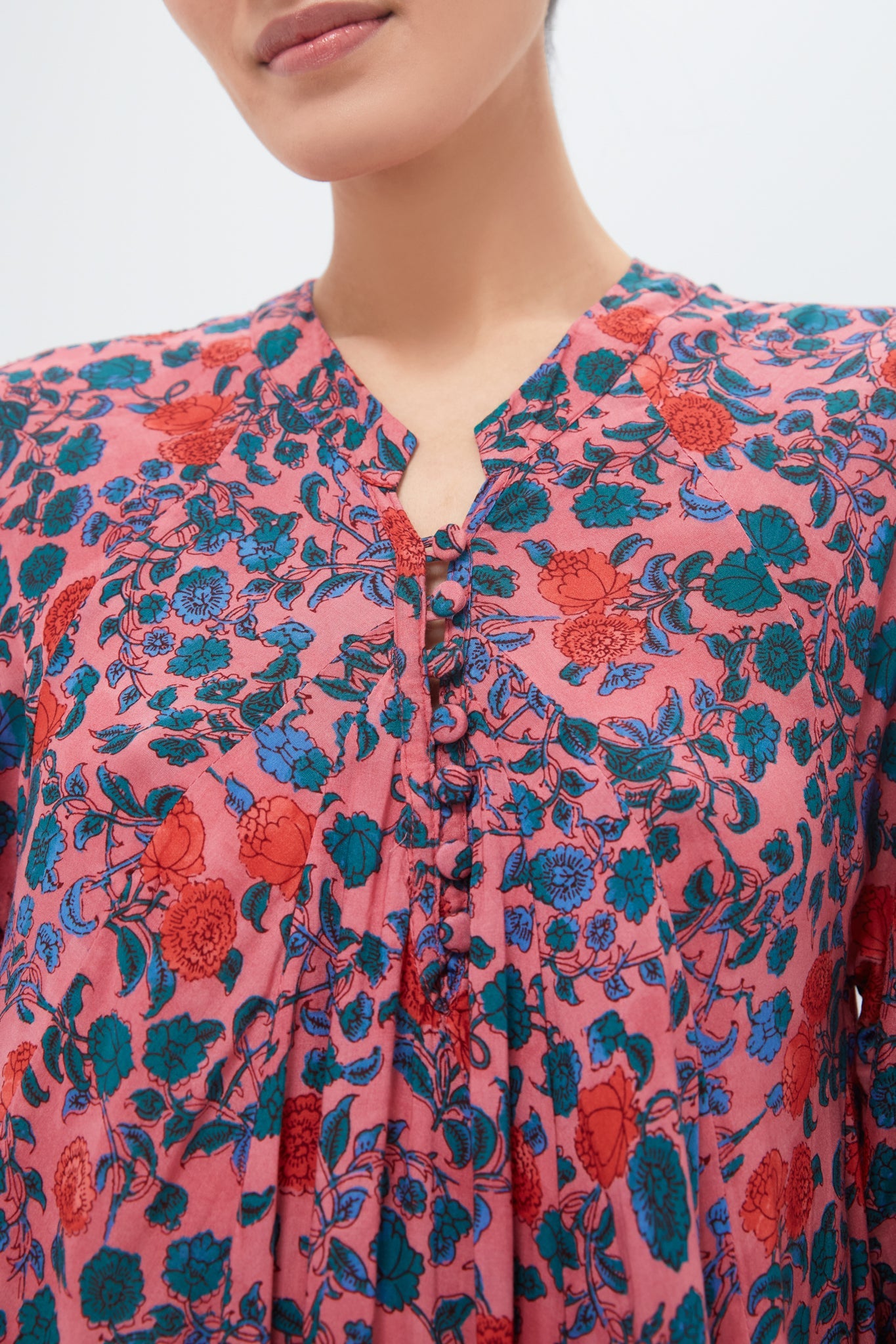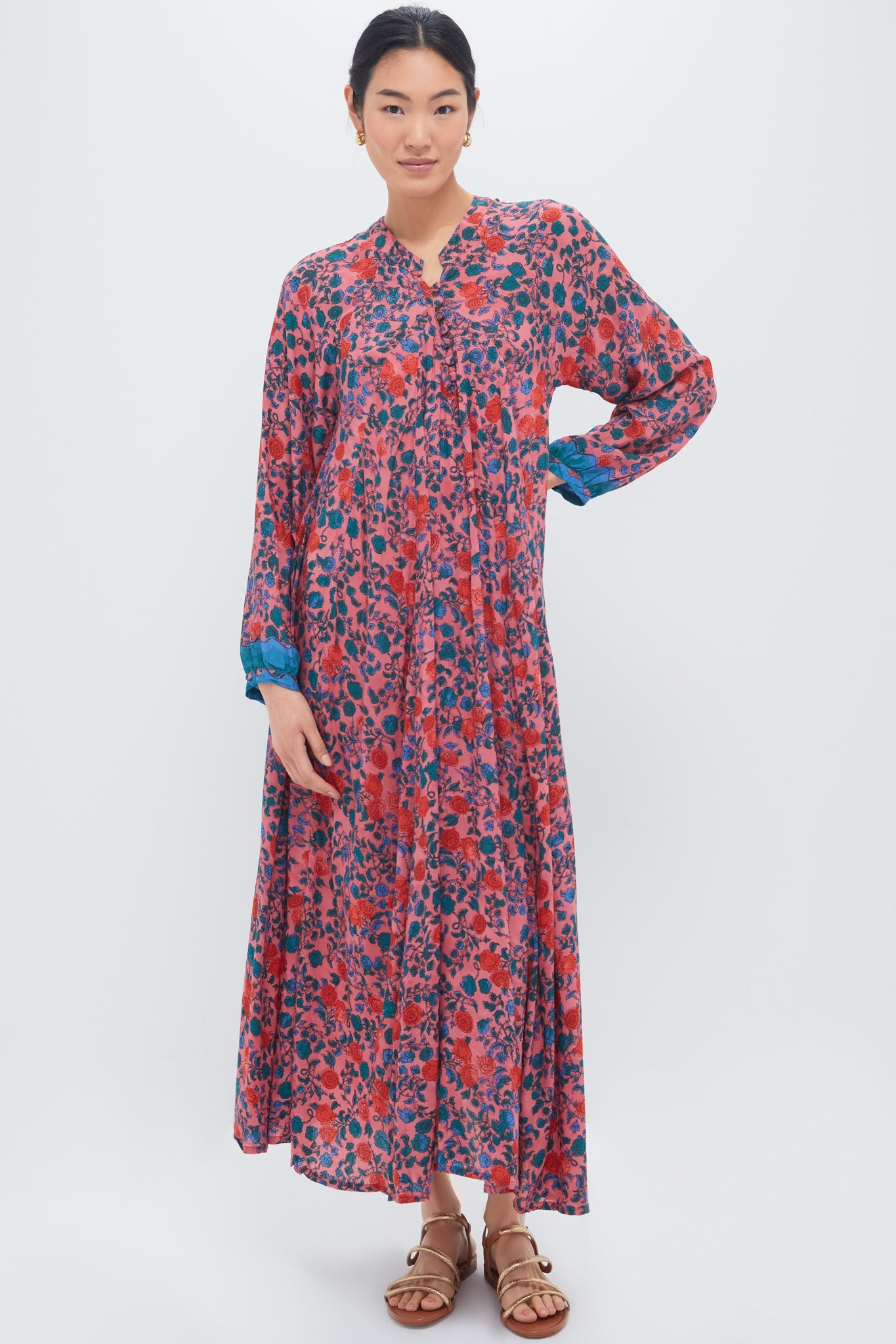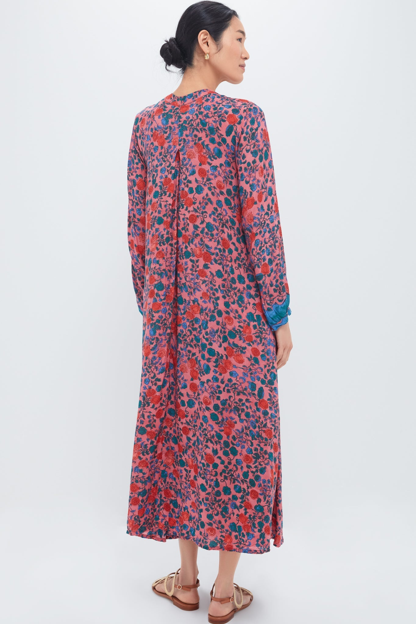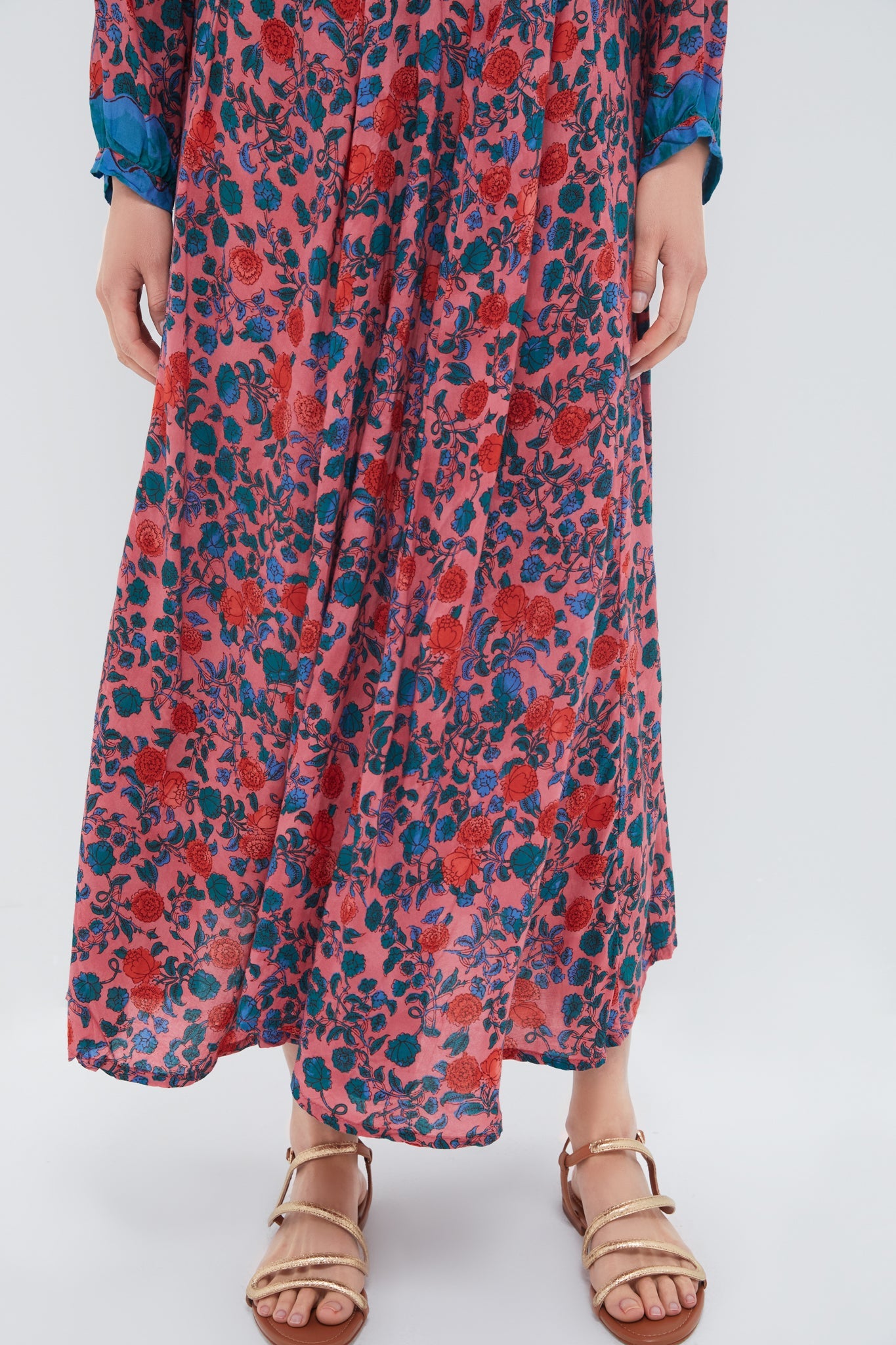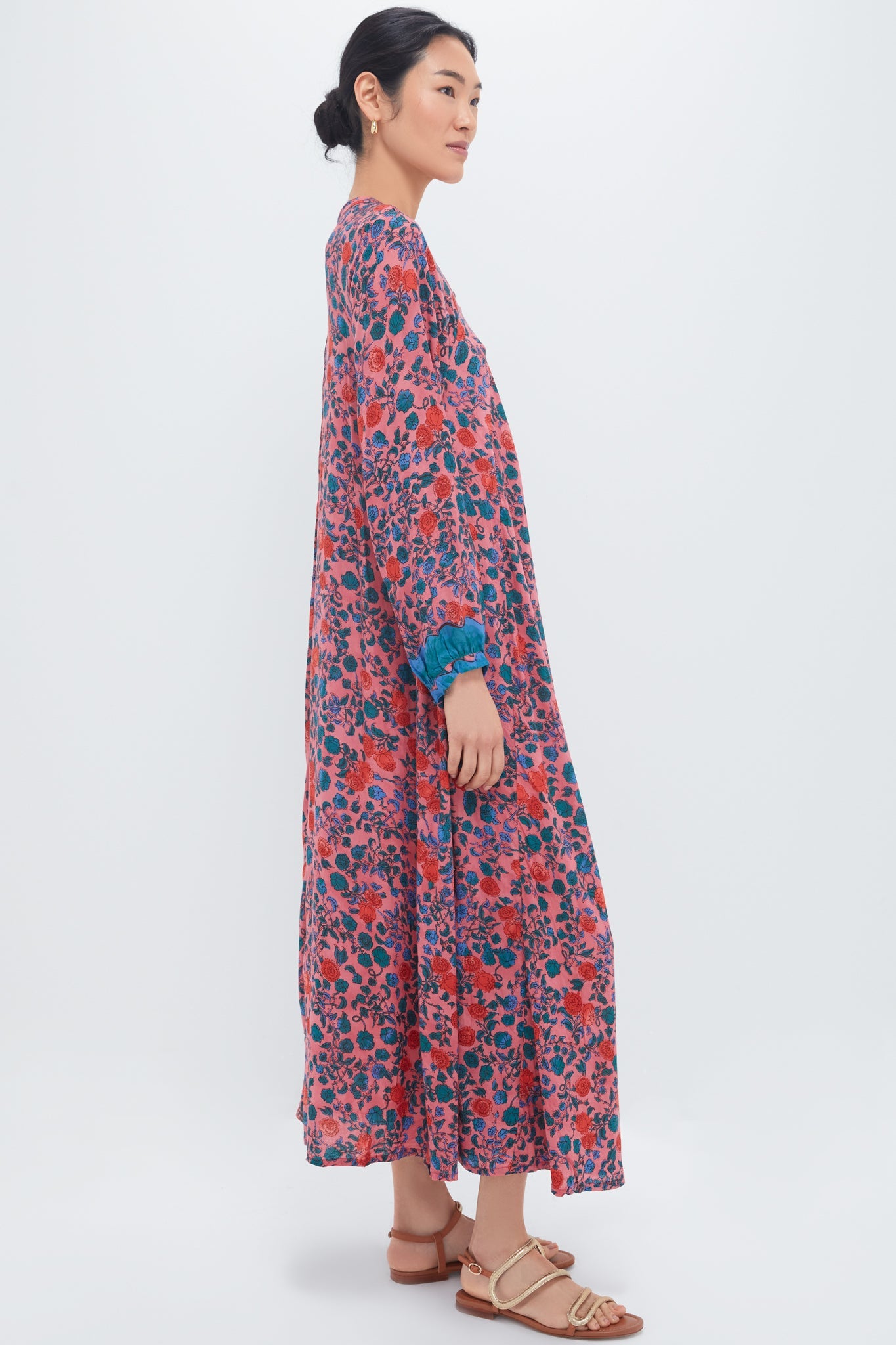 The Rose Bandana Fiore Maxi Dress is a gorgeous floral block print dress with an A-line silhouette and voluminous long sleeves. This maxi brings the drama, while still being unfussy. Throw on with sandals and a tote for an easy put together look, or add wedges and a mini bag for Al Fresco dinners.