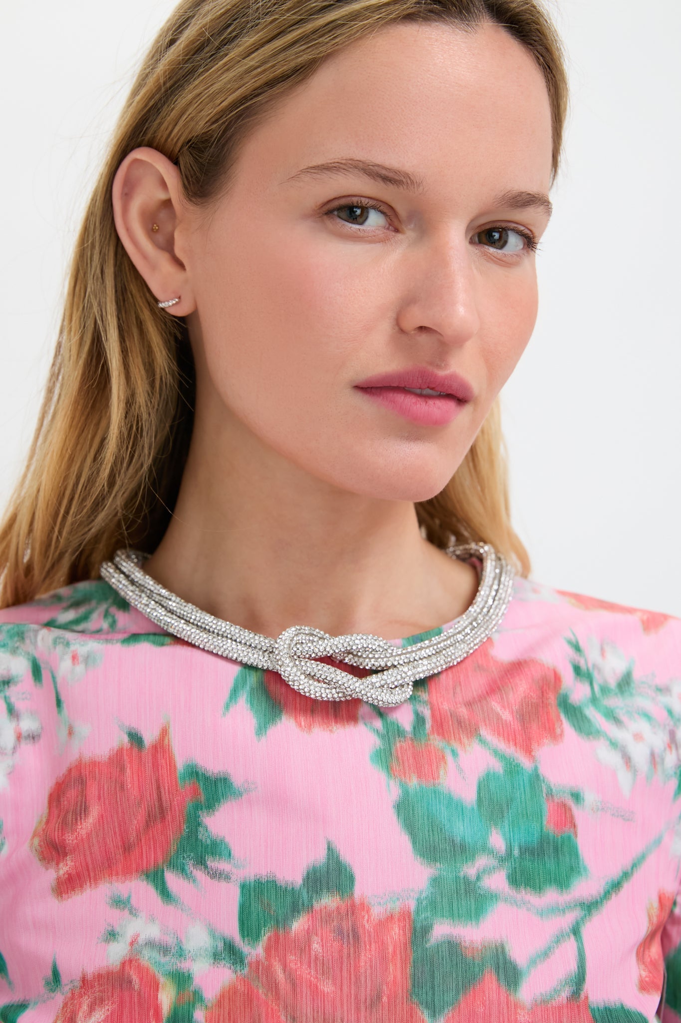 The Rose Rosetta Taffeta Dress is your shortcut to feeling dressed up without the fuss—thanks to its puff sleeves, mini shift silhouette, and built-in jewel collar that doubles as your necklace. Perfect for garden parties, date nights, or dancing under string lights. Style it with strappy heels and a bold lip for instant charm.