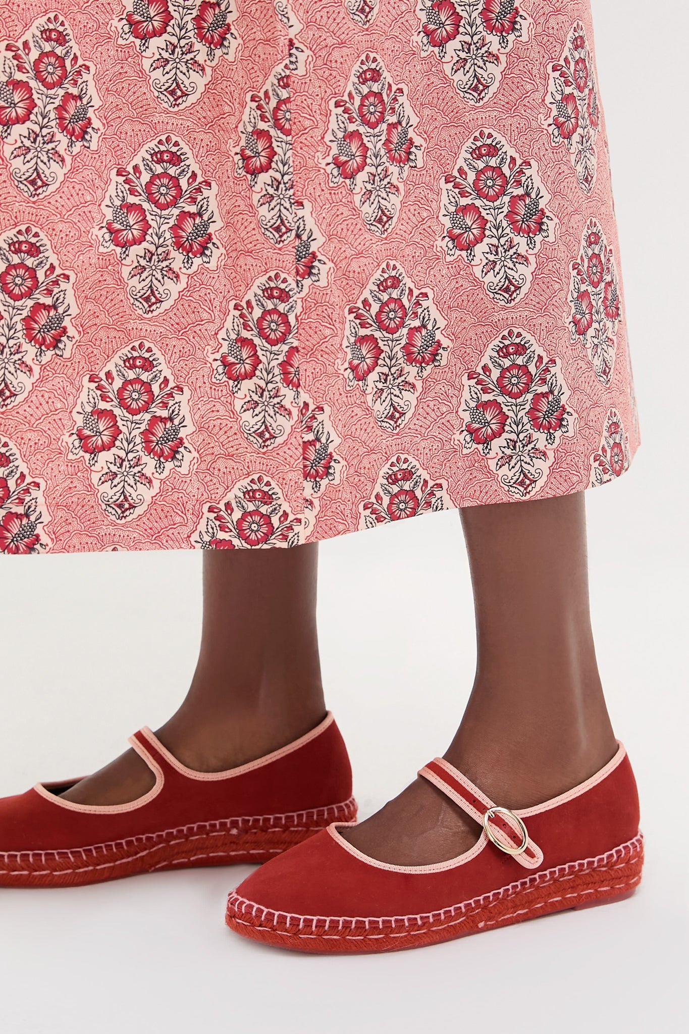 The Jamie Espadrille Flats are a playful warm-weather style with a tonal jute sole, Mary Jane-style strap, and contrast piping. An easy way to add a pop of color to your look, these will pair well with everything from denim to sun dresses.