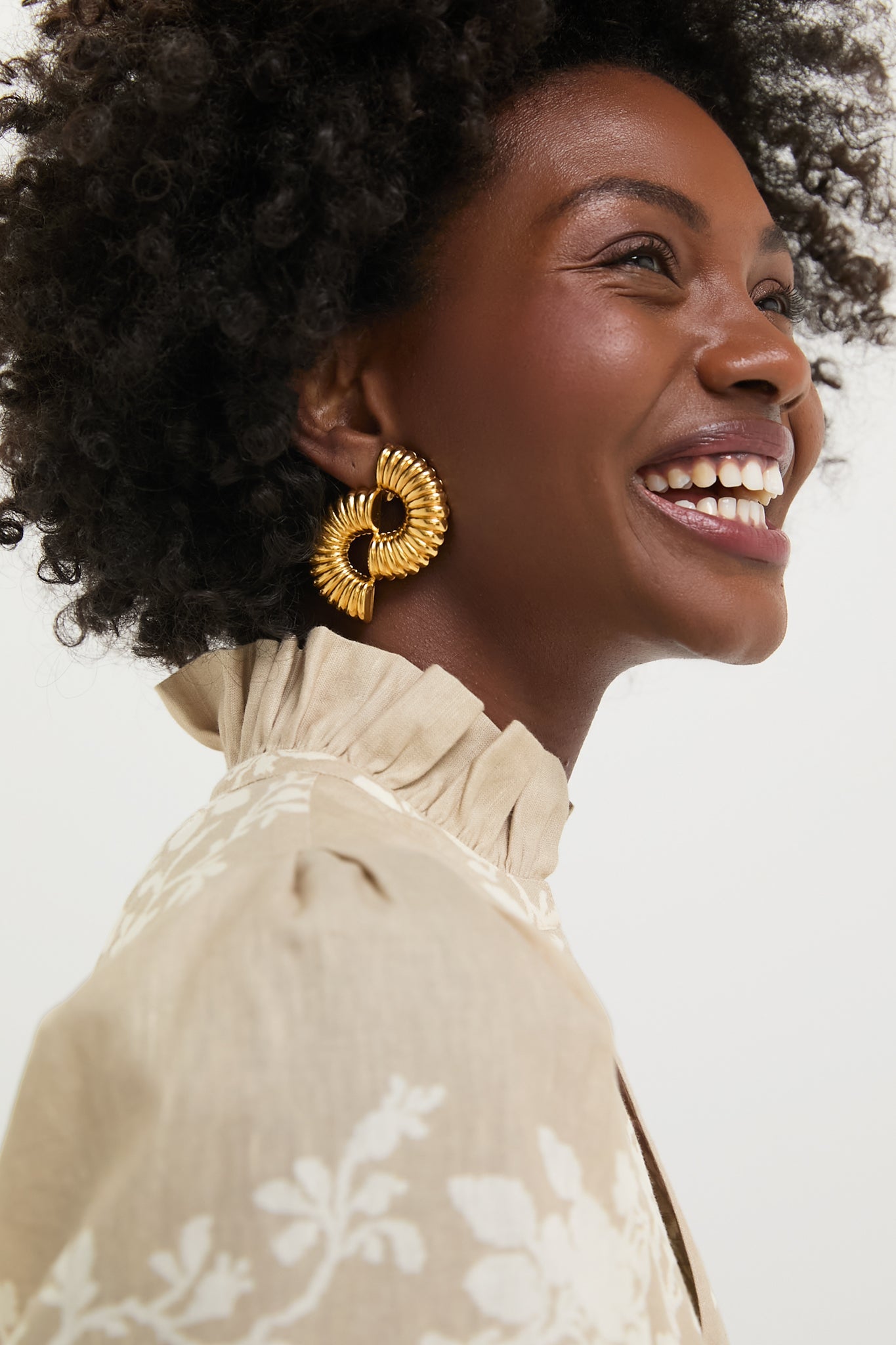 The Sand Floral Stripe Crawford Dress is equal part easy and charming, with a ruffle collar, relaxed flutter sleeve, and tiered fit. Lightweight and effortlessly stylish, this dress is perfect for everything from coffee runs to vacation days. Just add sandals or sneakers, and your favorite bag!