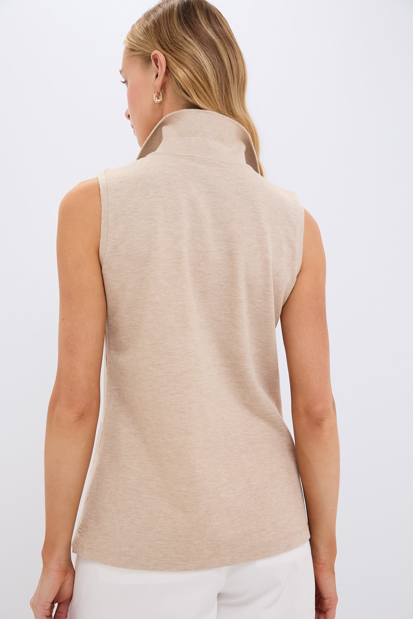 Introducing the Sandstone Pique Sleeveless Margaret Polo - your new closet best friend. With a relaxed, yet structured fit and ruffled placket, this feminine polo is sure to be your warm weather style staple. We styled it with white chino shorts, sneakers, sunnies for farmers market runs, to Al-fresco dining, this polo is sure to please!