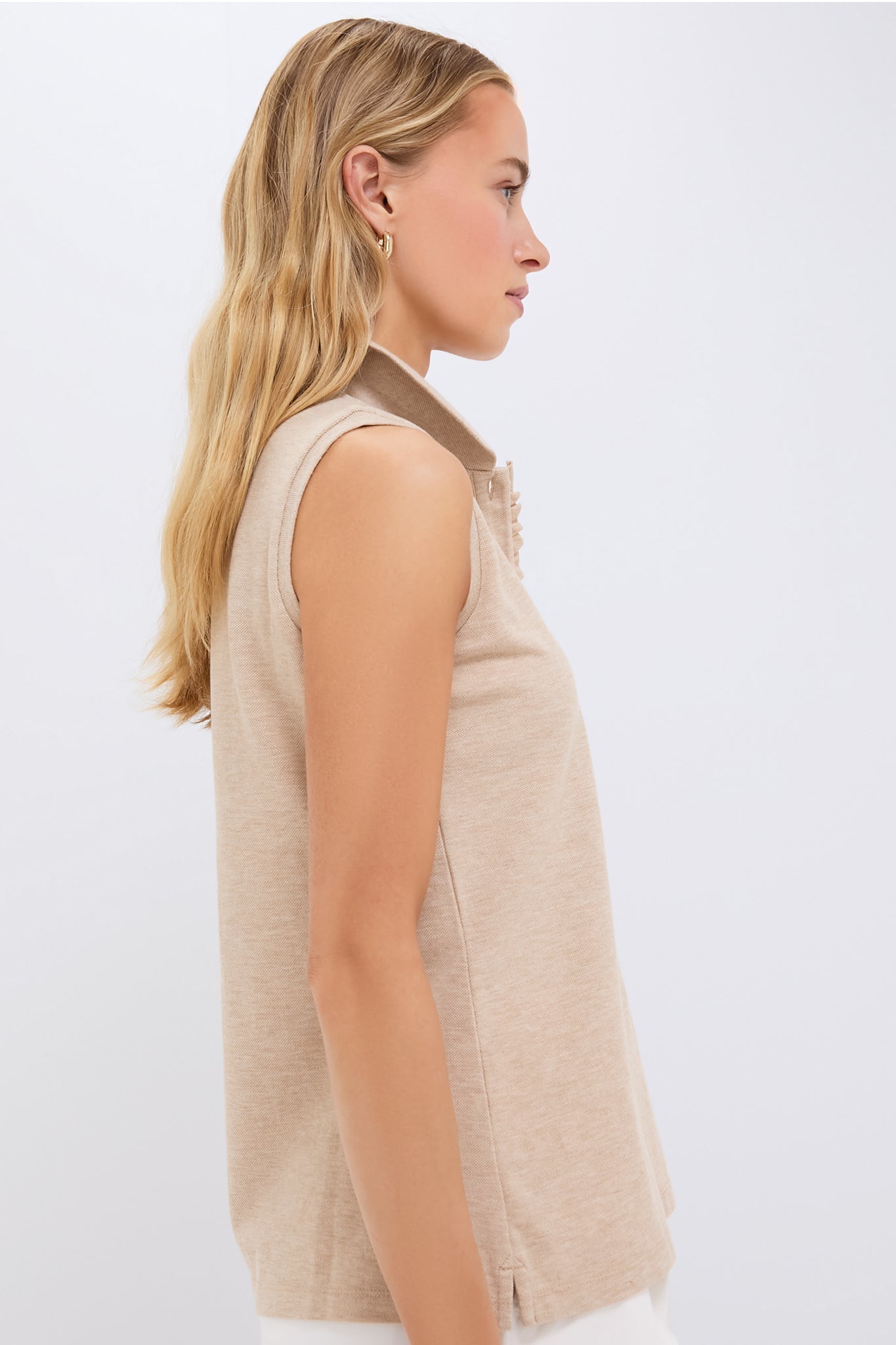 Sandstone Pique Sleeveless Ruffle Margaret Polo