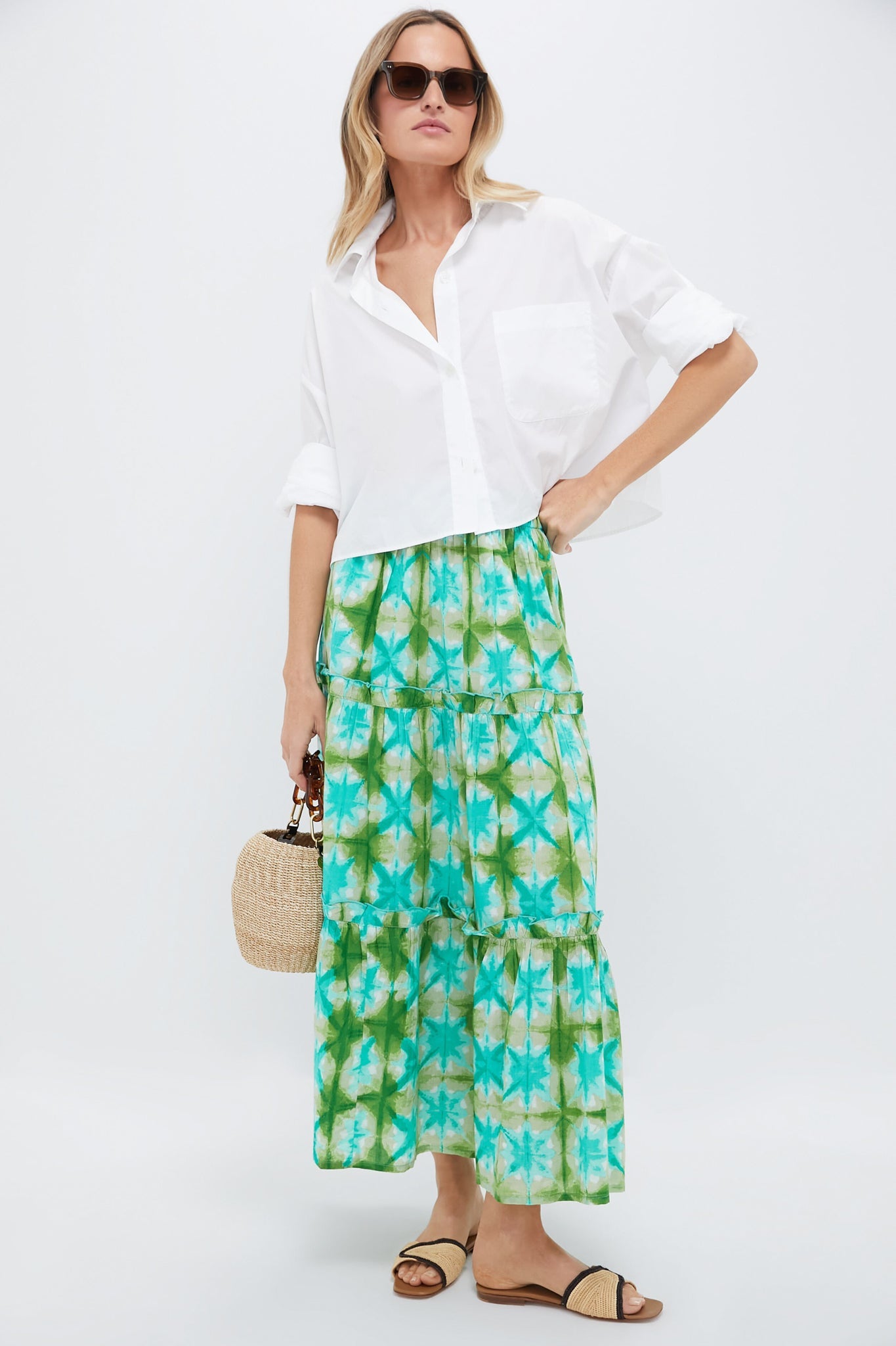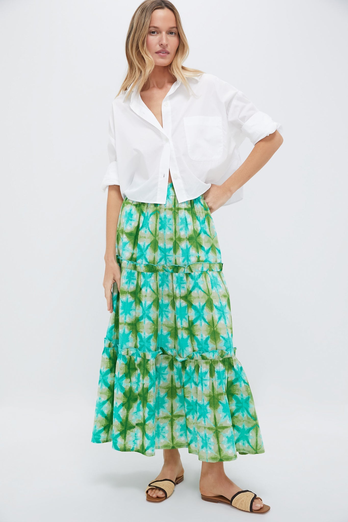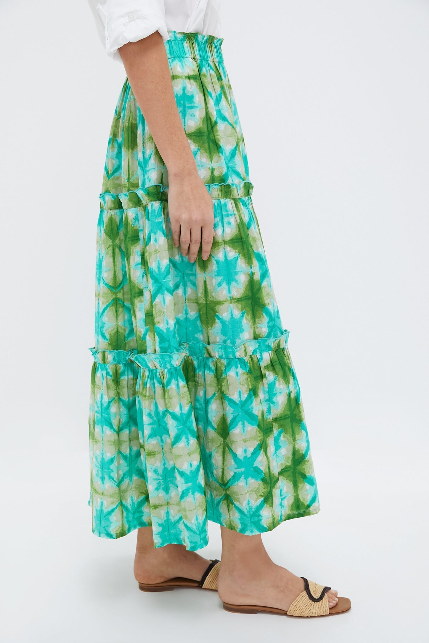 Twirl worthy with its tiered layers and ruffle detailing, the Seafoam Medallion Prado Skirt slips on with minimal effort while bringing maximum style. This pull on maxi is a one step elevation to a casual look while keeping you ultra-chic. Pair with a crisp white button down and sandals, sneakers, or flats!