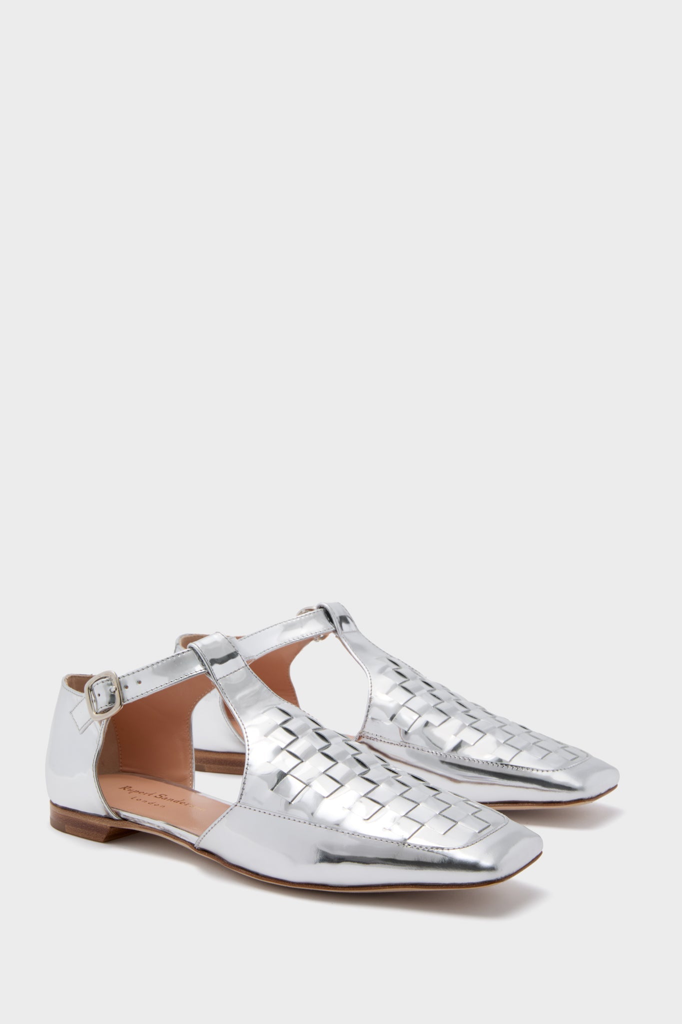 The Silver Mirror Nuna Flats are an eye-catching style boasting a woven upper, square toe, and adjustable T-strap with a buckle closure. Taking elements from loafers, sandals, and flats, this playful look will pair with just about anything in your closet.
