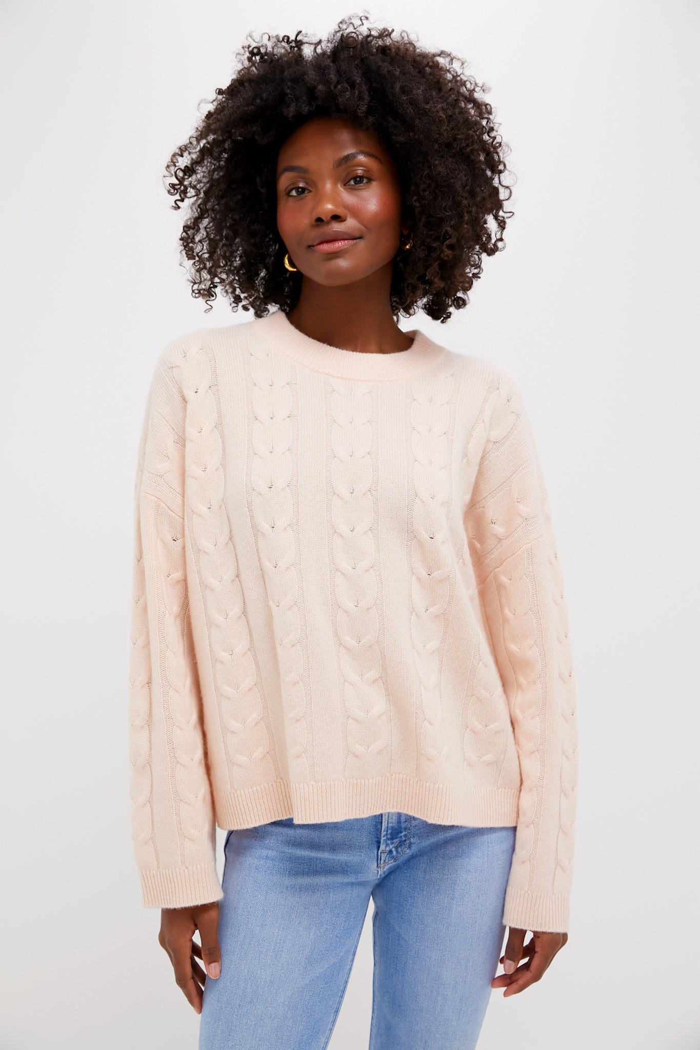 Soft Pink Cashmere Eloise Cableknit Sweater
