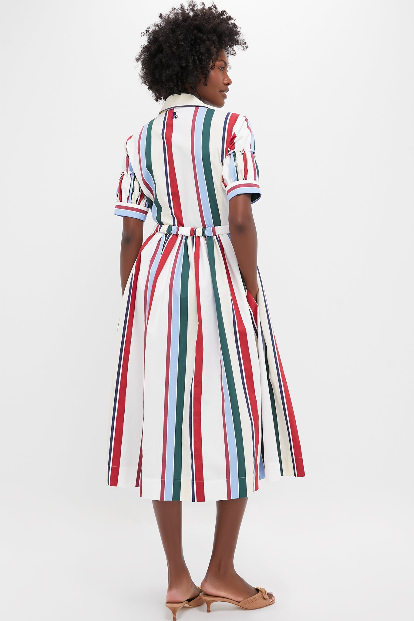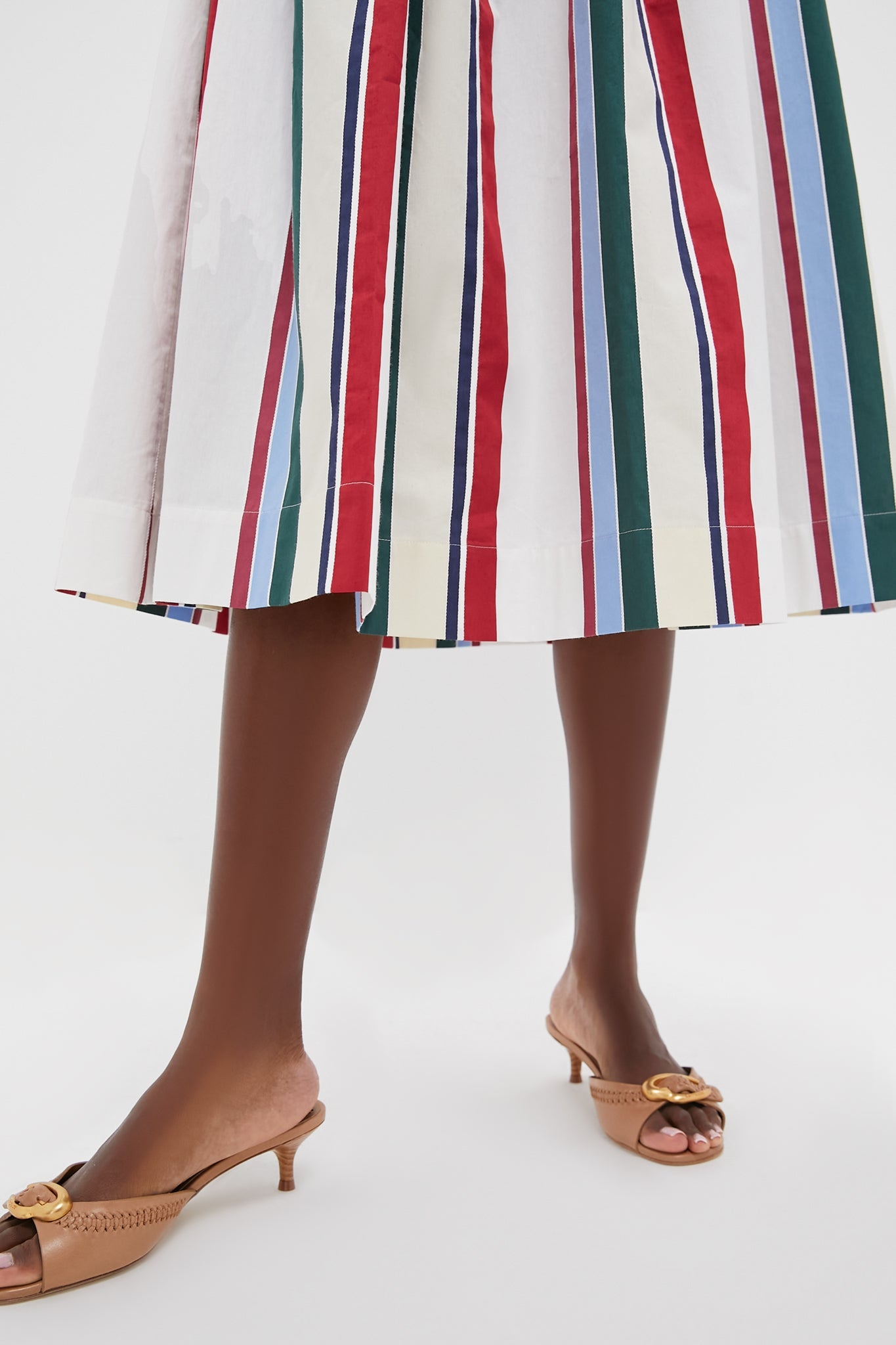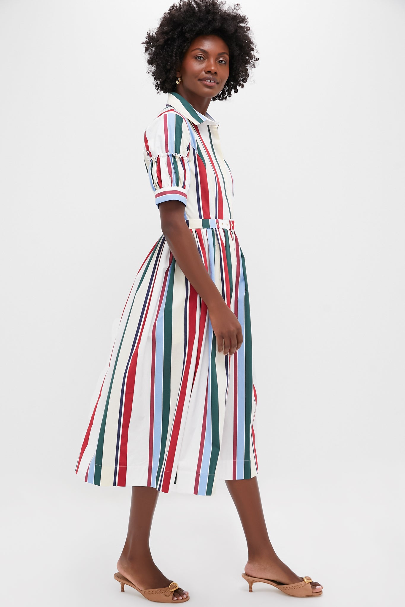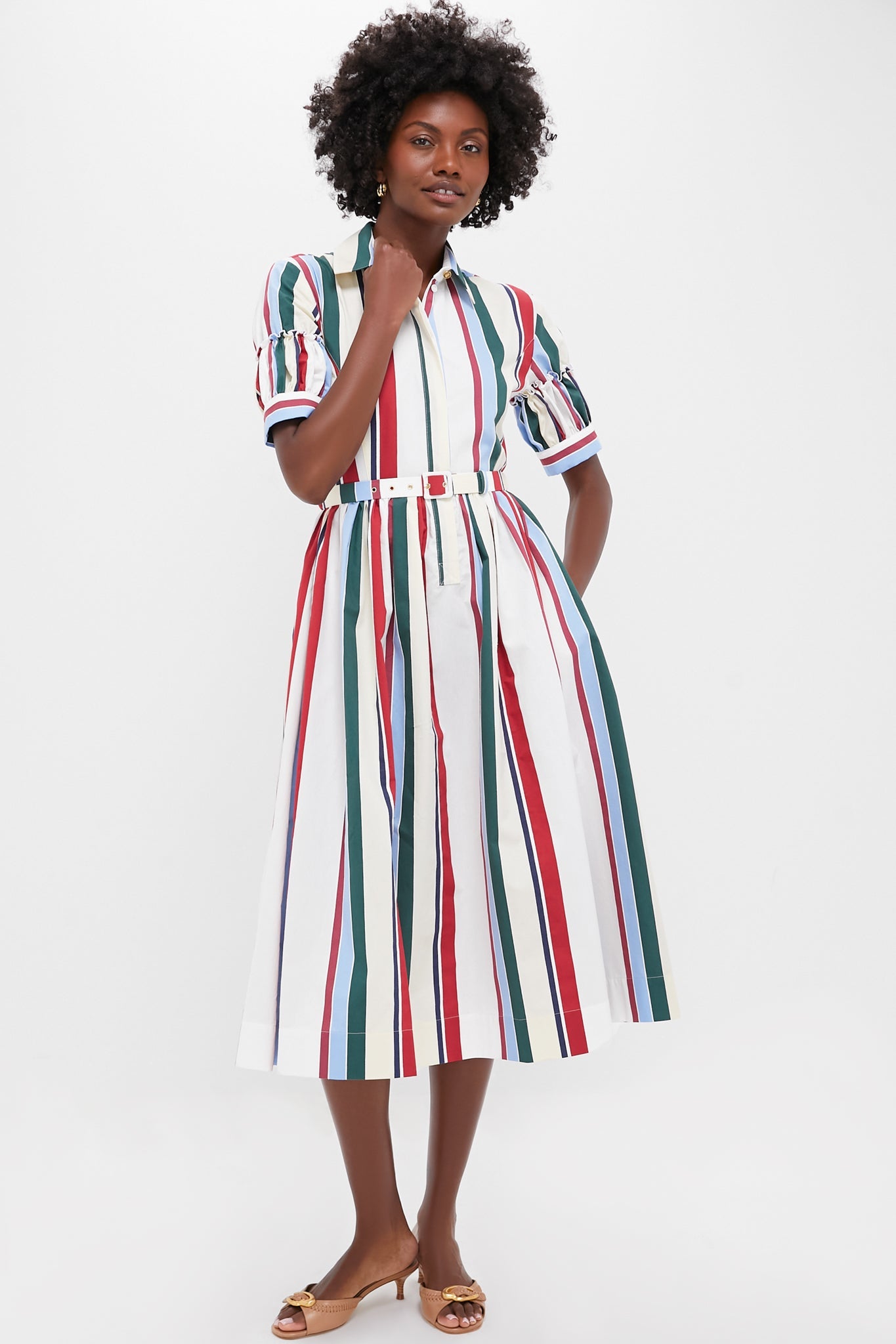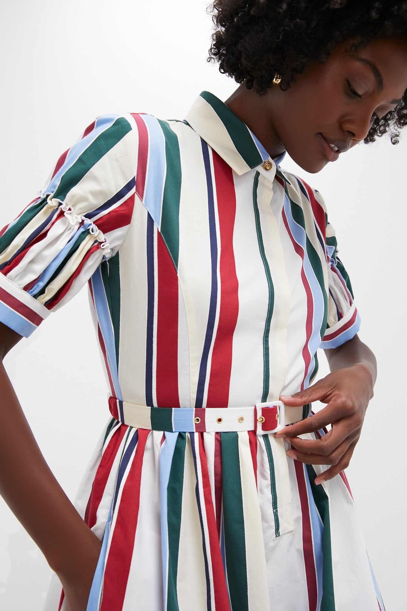 The Stripes Jacquard Libertine Dress is crafted from structured jacquard with a crisp cinched waist, short sleeves, and a full circle skirt built for twirling (or commuting in style). Finished with removable elastic belt, it’s your instant-outfit hero—just add heels, a tote, and you're ready to own the day.
