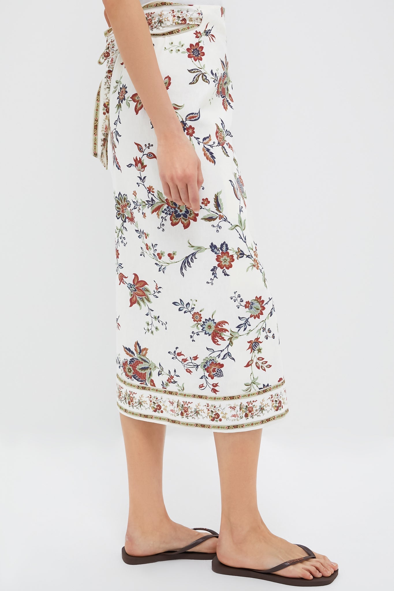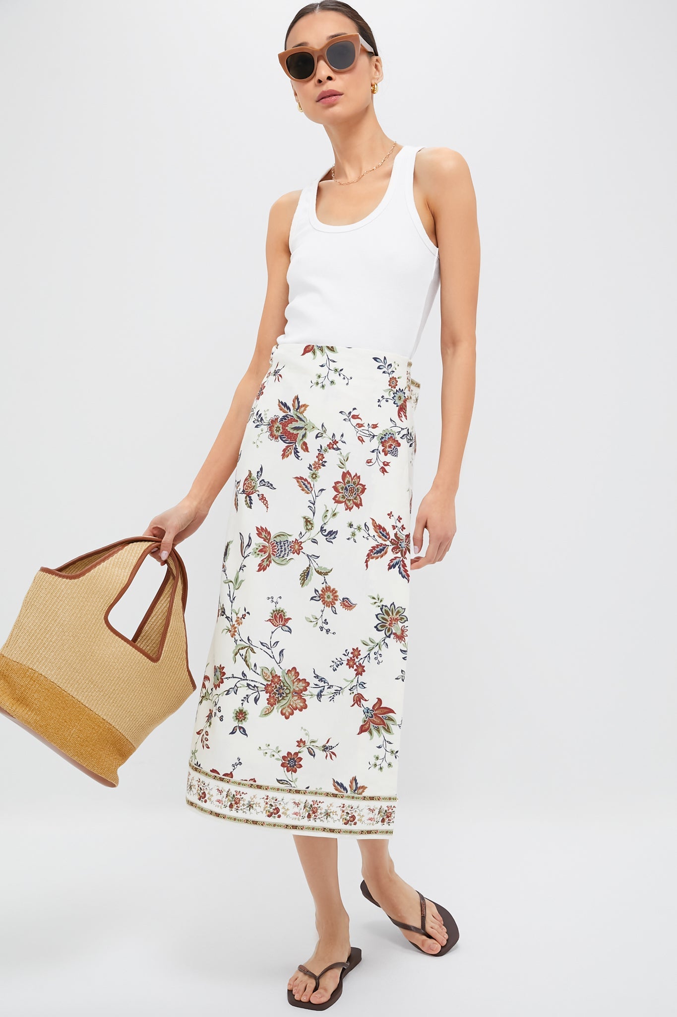 Terracotta Chintz Cotton Linen Margot Wrap Skirt