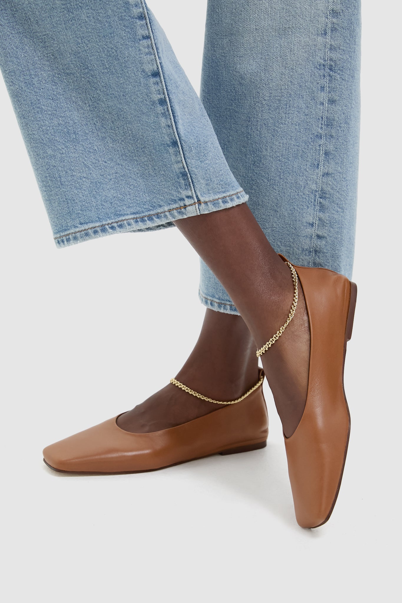 The Tibet Augusta Ballet Flats are effortlessly cool. Obviously we love a classic ballet flat, but these are truly something special with the addition of a square toe and a gold chain ankle strap. Perfect for pairing with outerwear and sleek denim for an urban-chic look to explore the city, or for wearing with a flirty mini for date night, you can't go wrong with these!