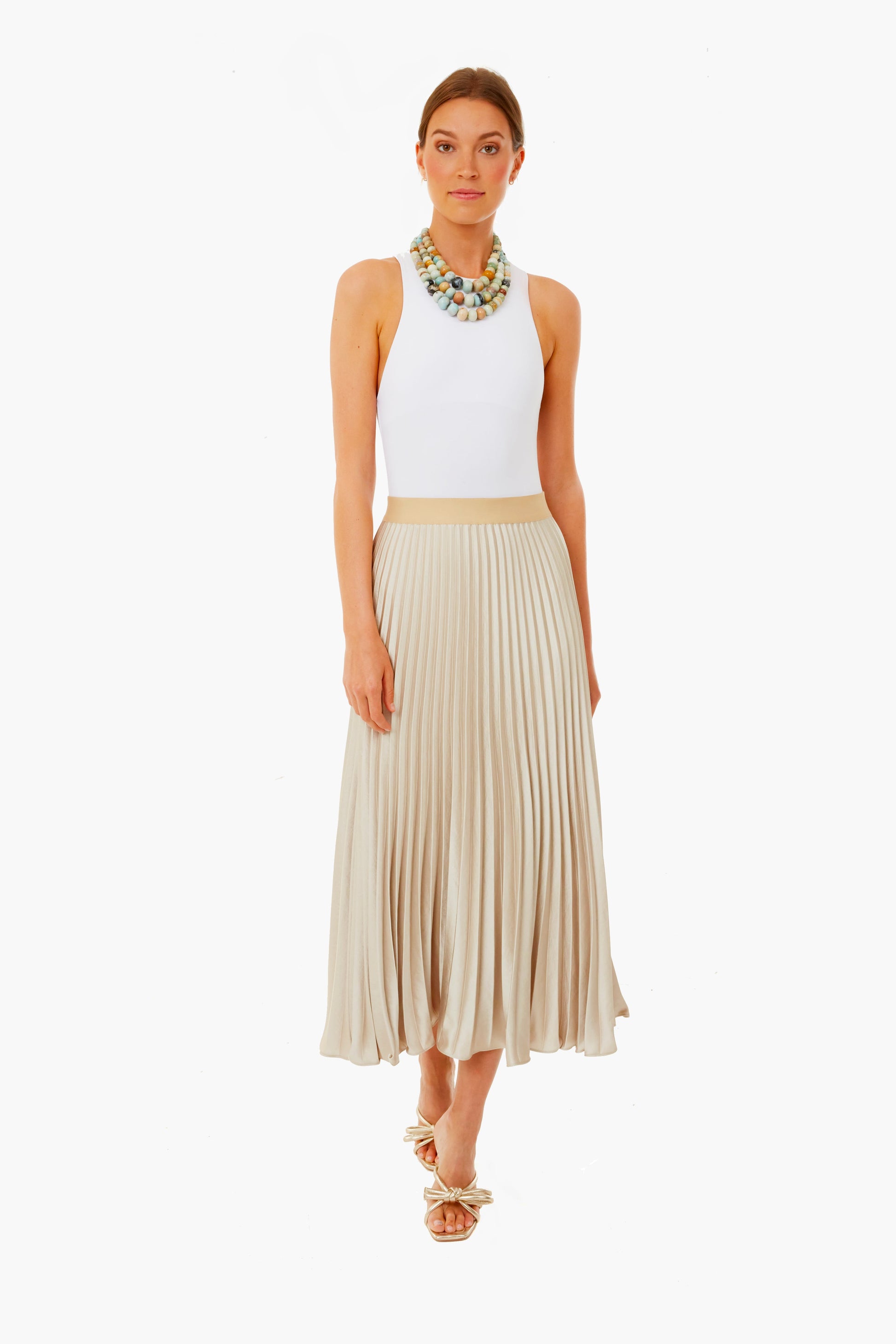 The Vanilla Gavino Skirt evokes timeless elegance with a pleated design and midi length. Effortlessly chic with a twirl-worthy factor, this style is a true style staple. Pair back to a blazer and flats for the office and add statement jewelry and heels for dinner with friends!