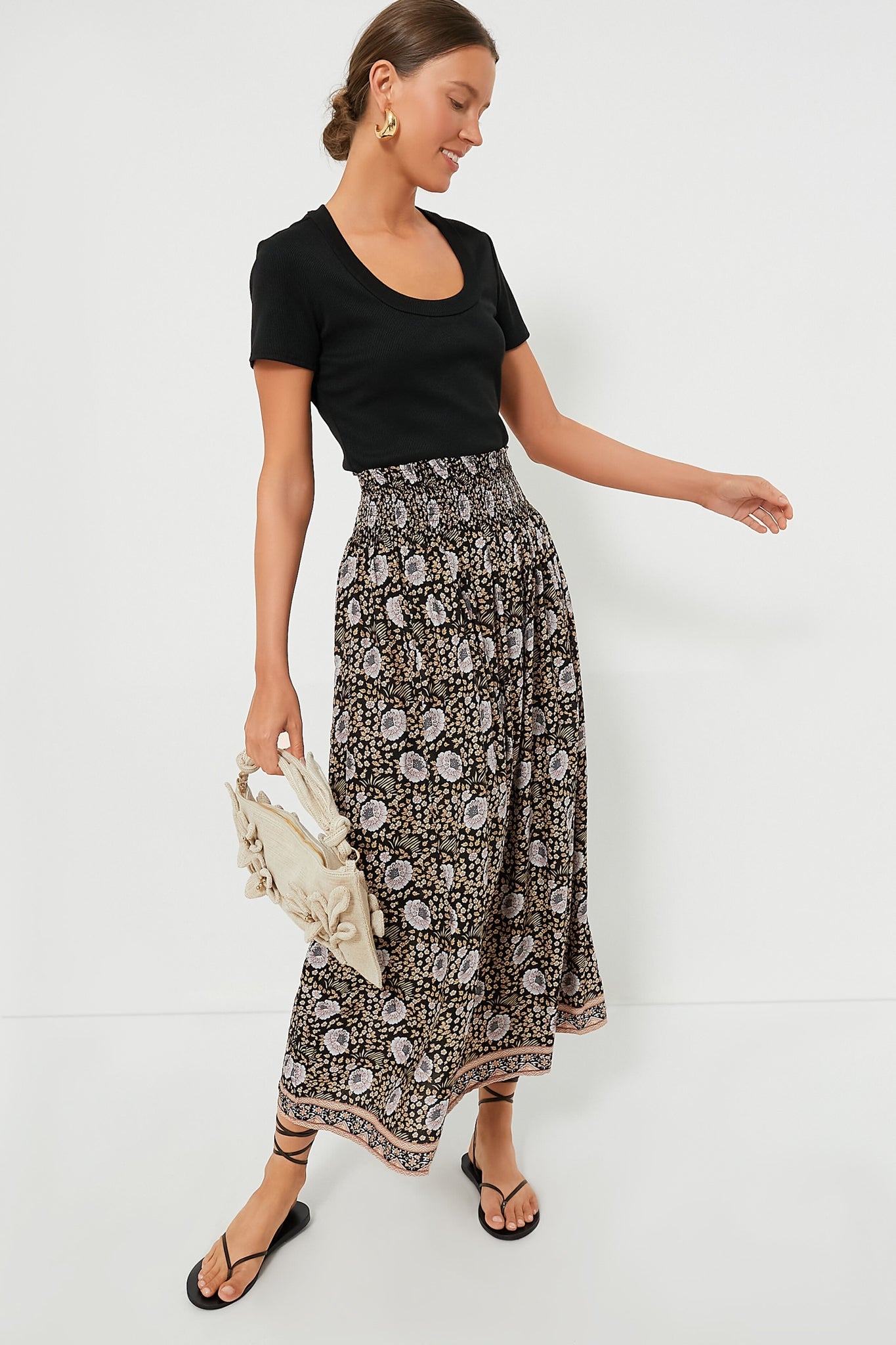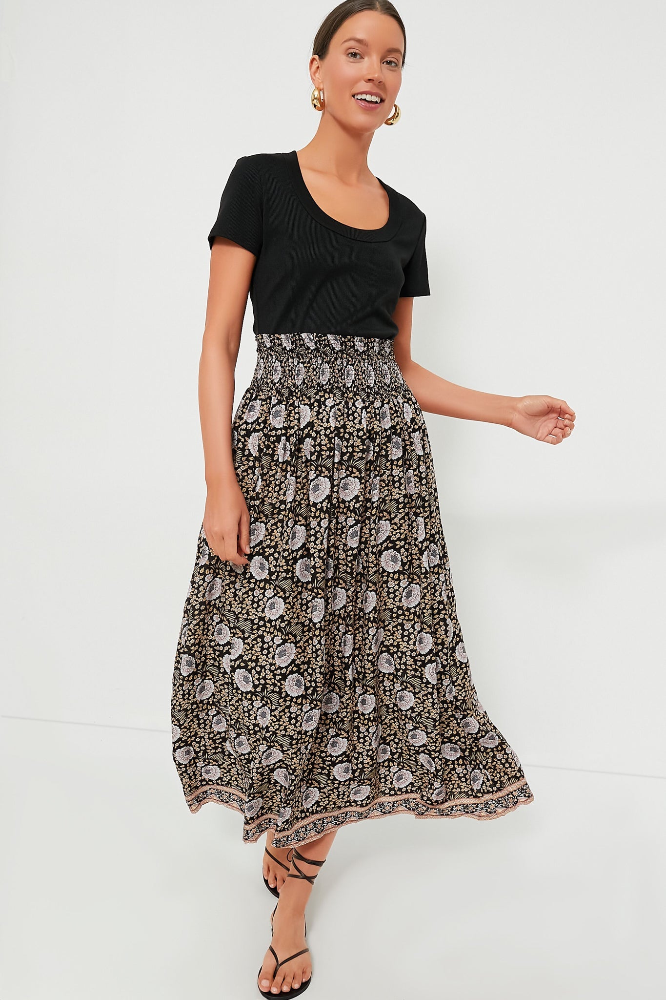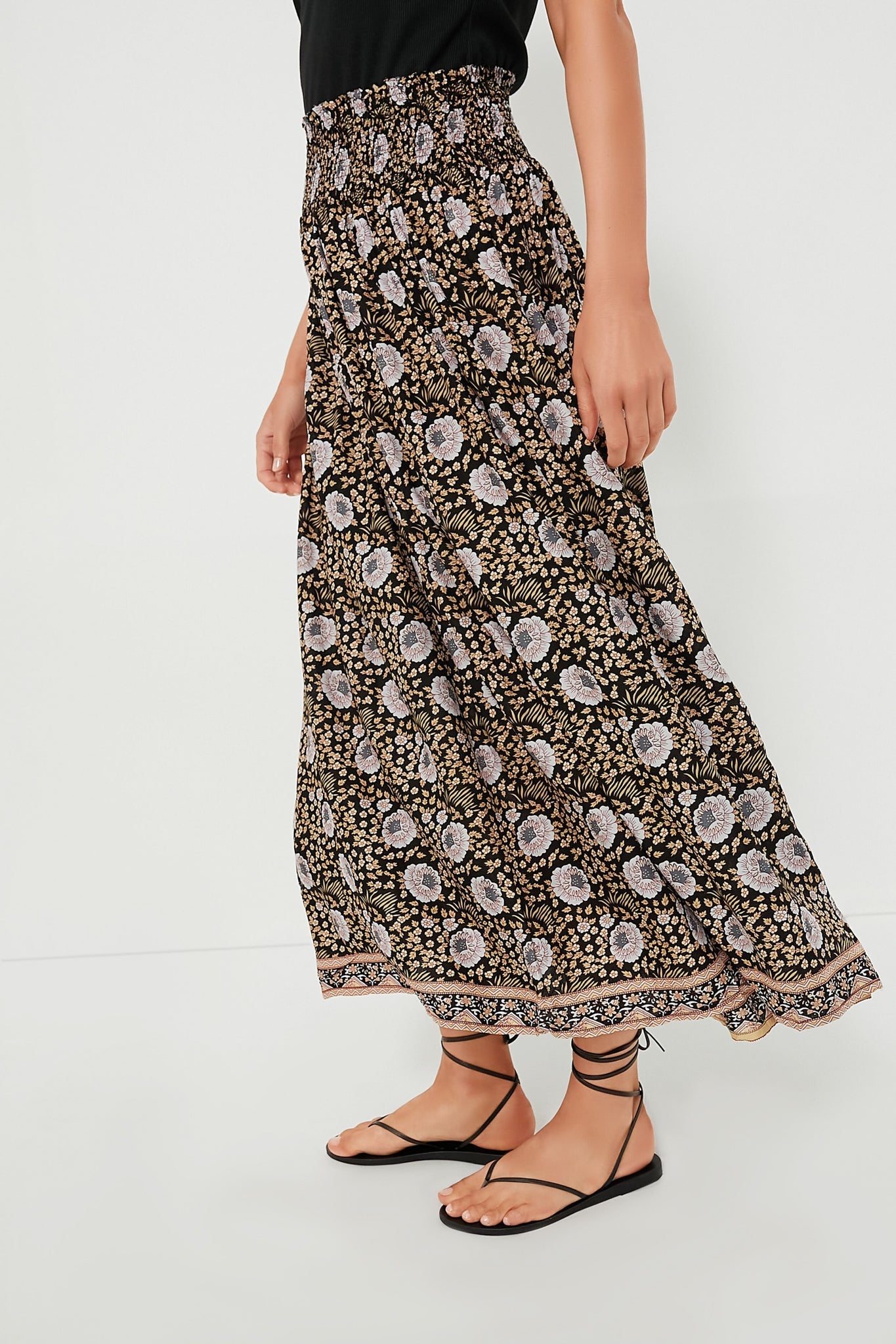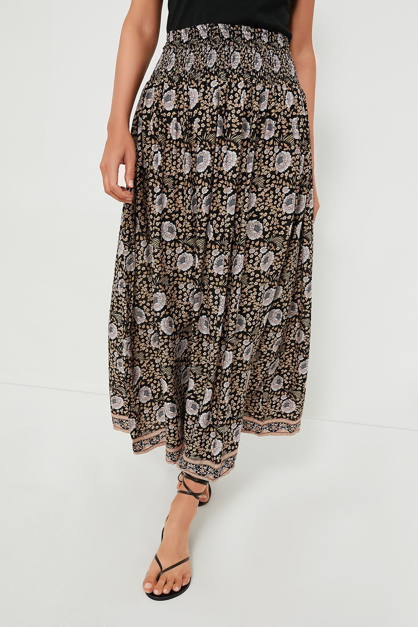 Channel your inner boho-chic cool-girl in the Vintage Flowers Sepia Bella Skirt. It features an easy-to-wear midi silhouette with a smocked waistband, light gathering, for comfort. Pair with a tank and sandals, or dress up with a blouse and heels!