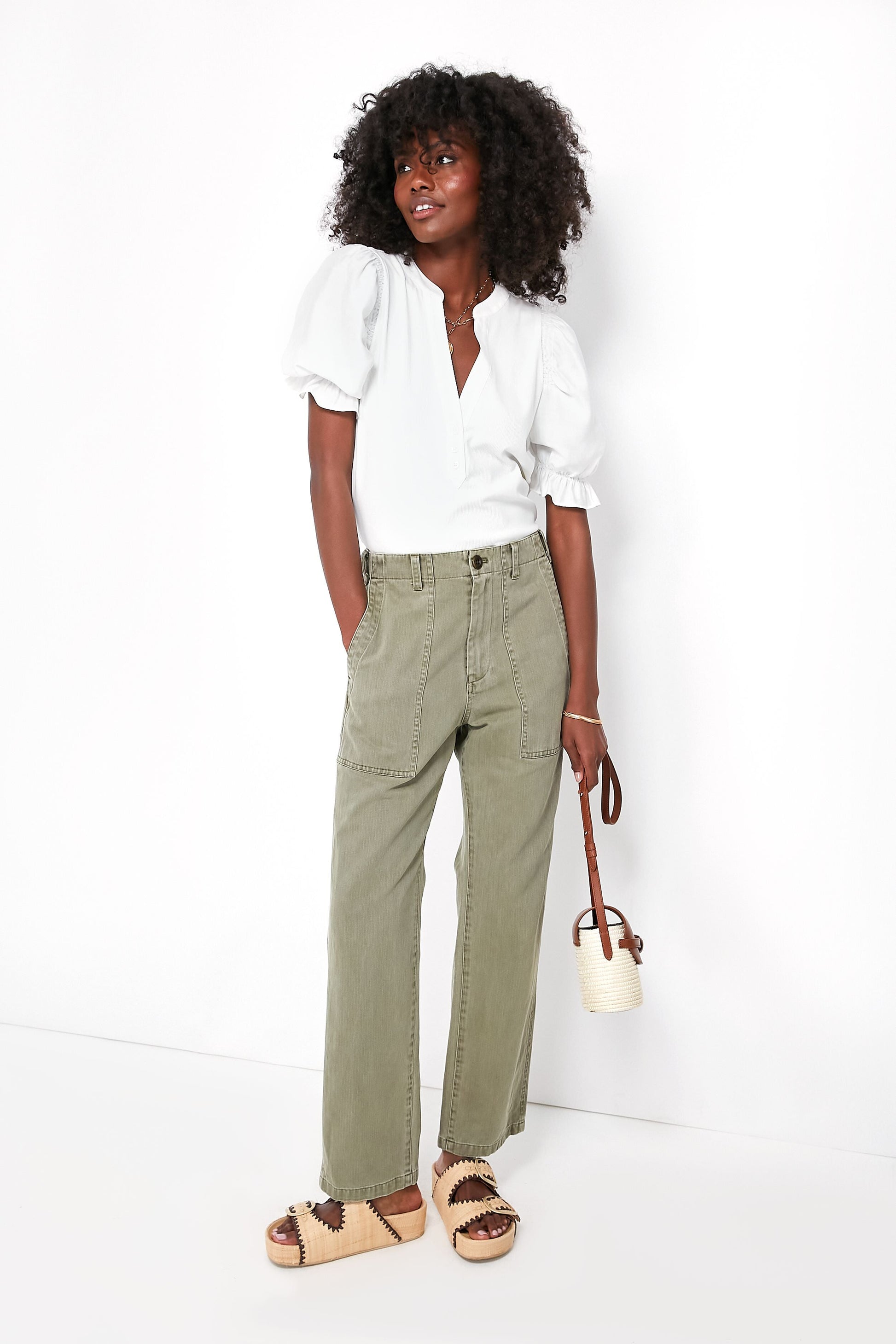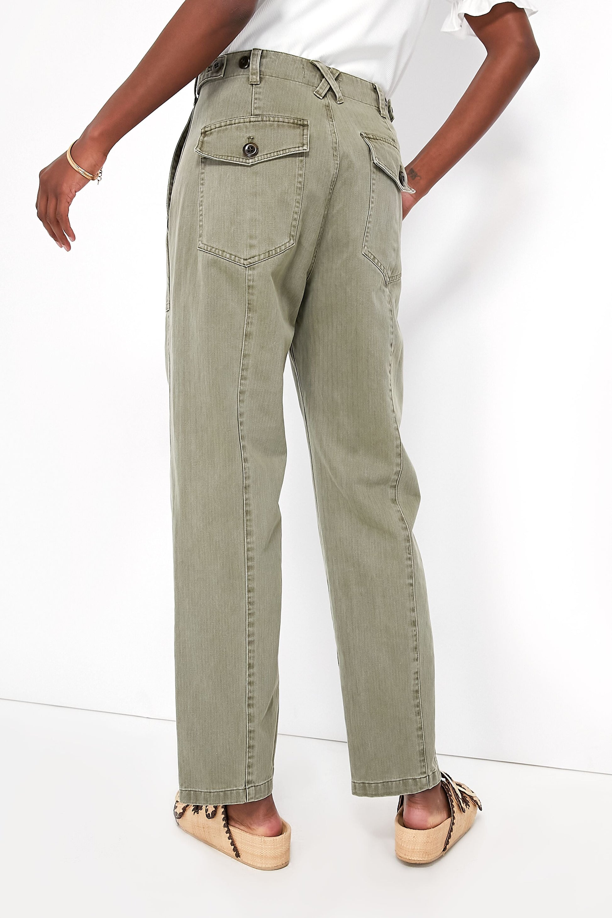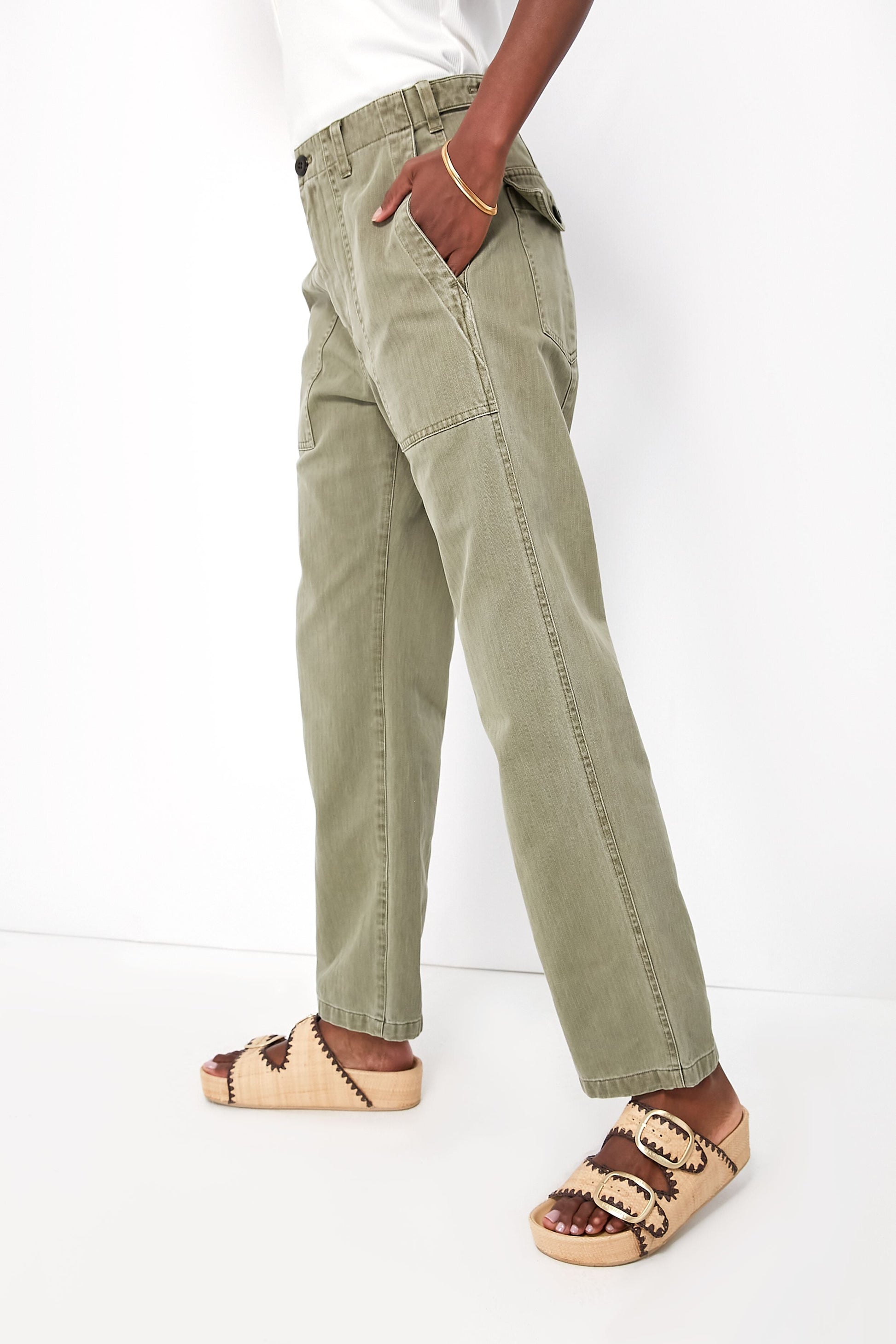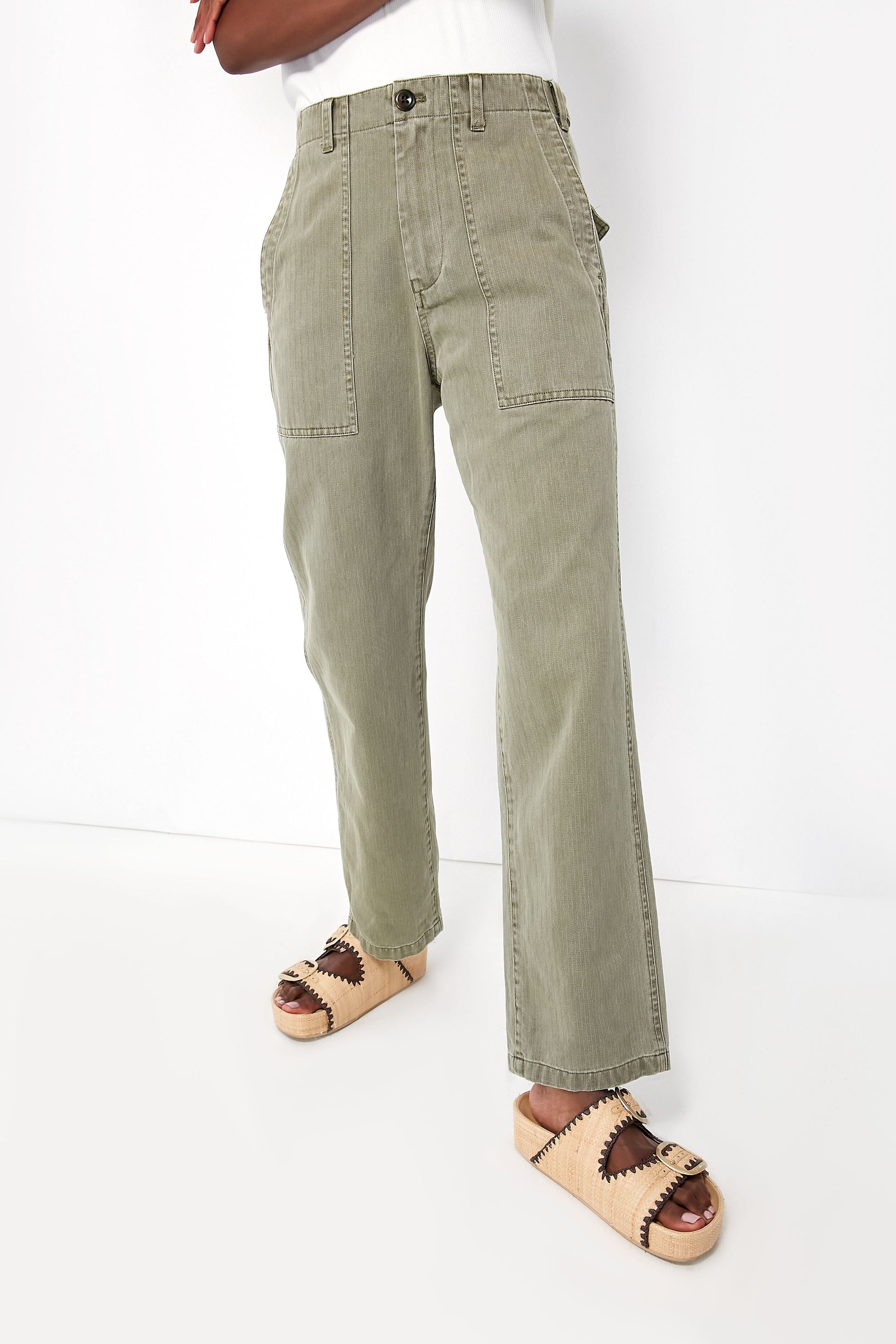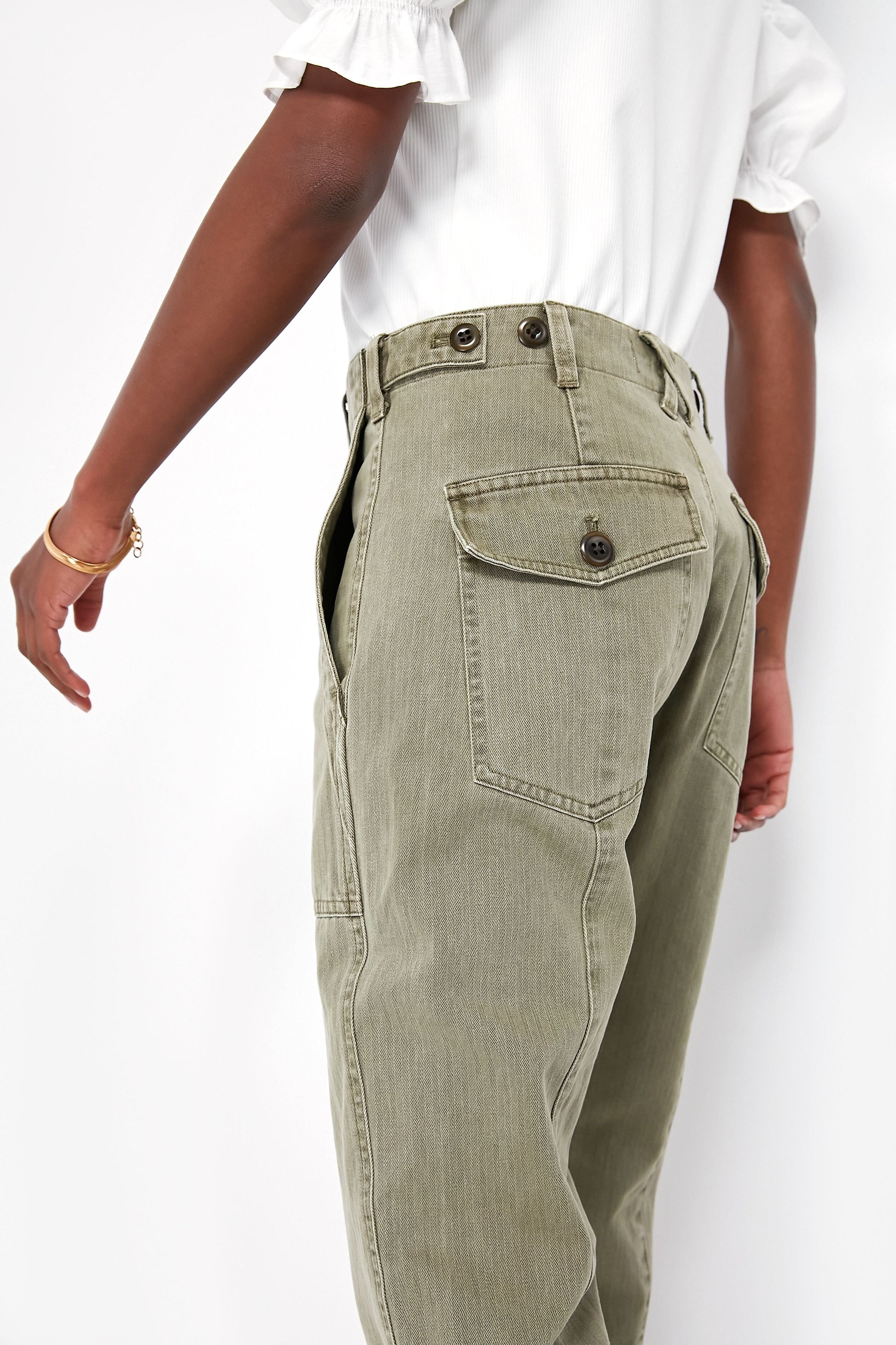 Vintage Olive Herringbone Utility Pant
