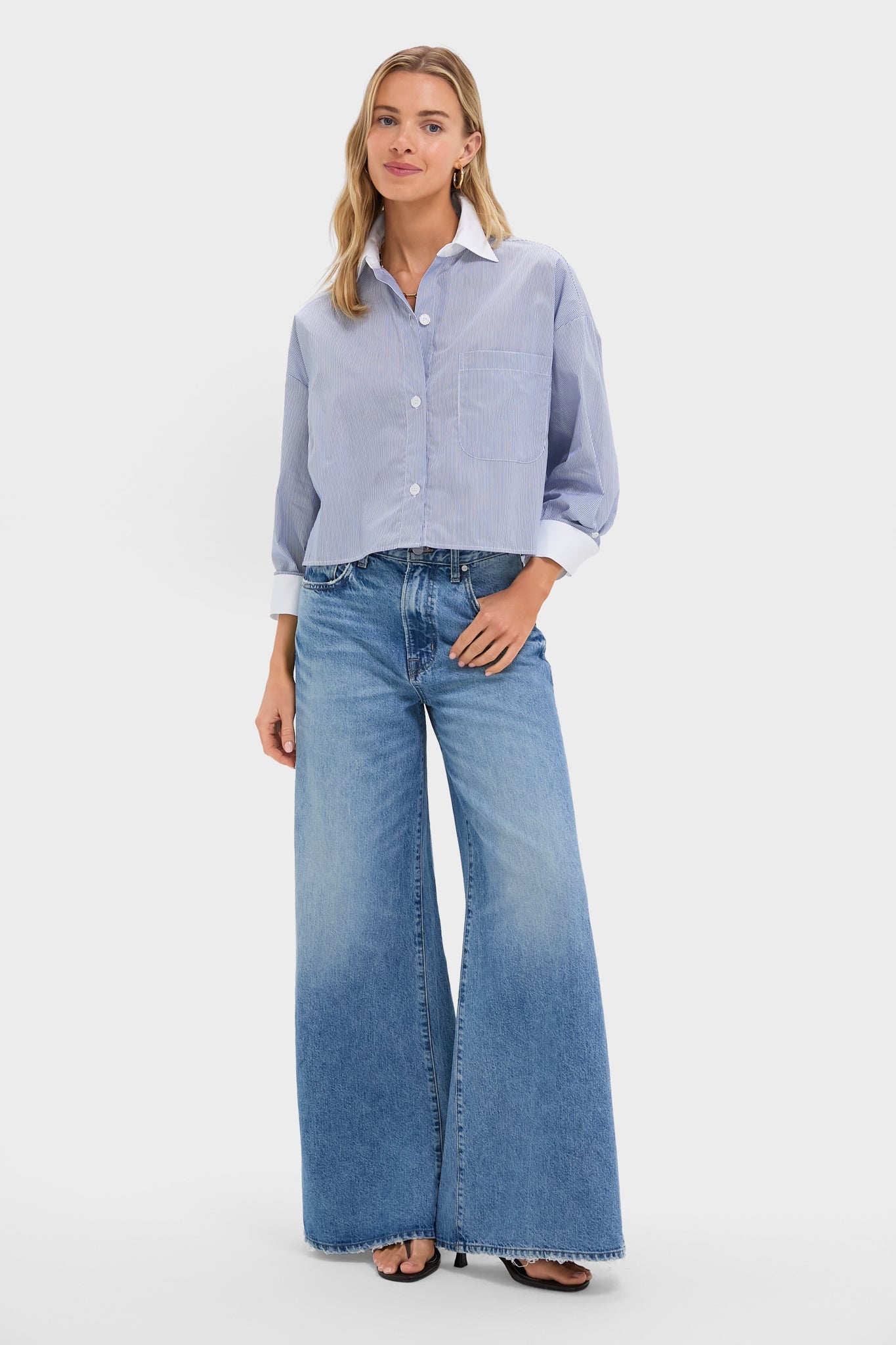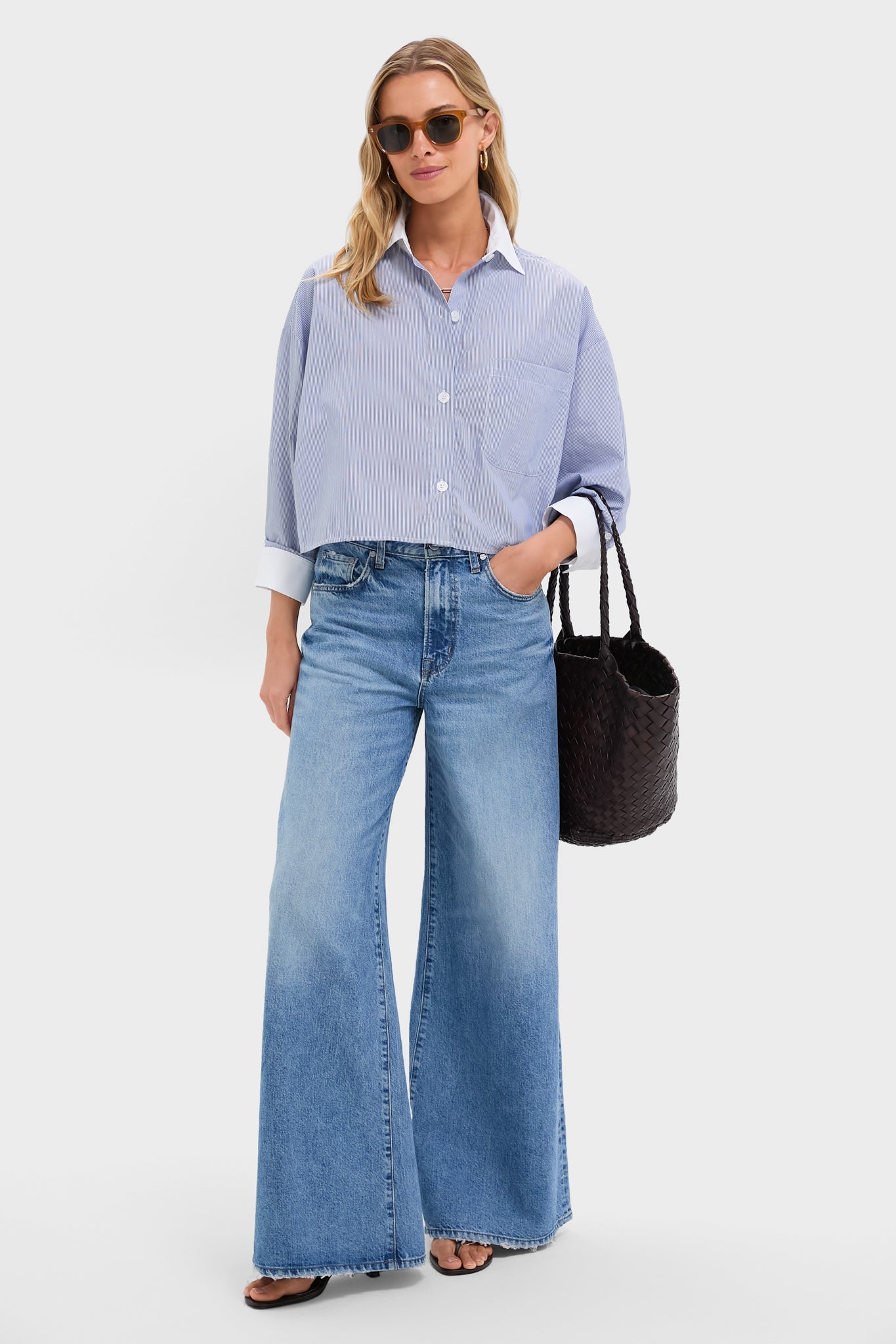 In a vintage inspired wash, the Tiny Dancer is relaxed at the hip, wide at the leg, and features a five-pocket style that looks good with just about everything, from button-downs to blazers to pull-overs. We paired these jeans with a cropped button down, heels, and a woven tote for a casual, yet elevated vibe.