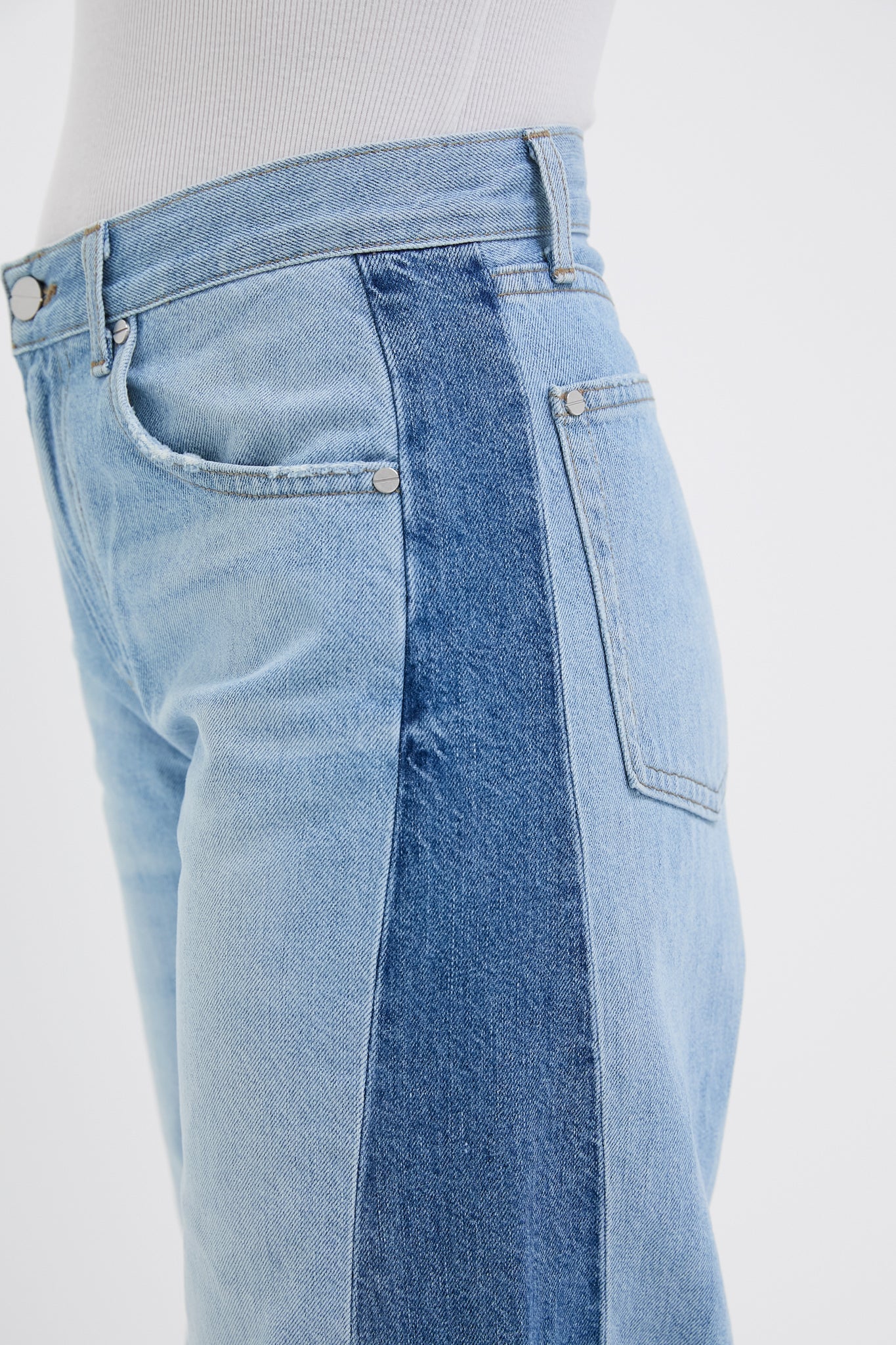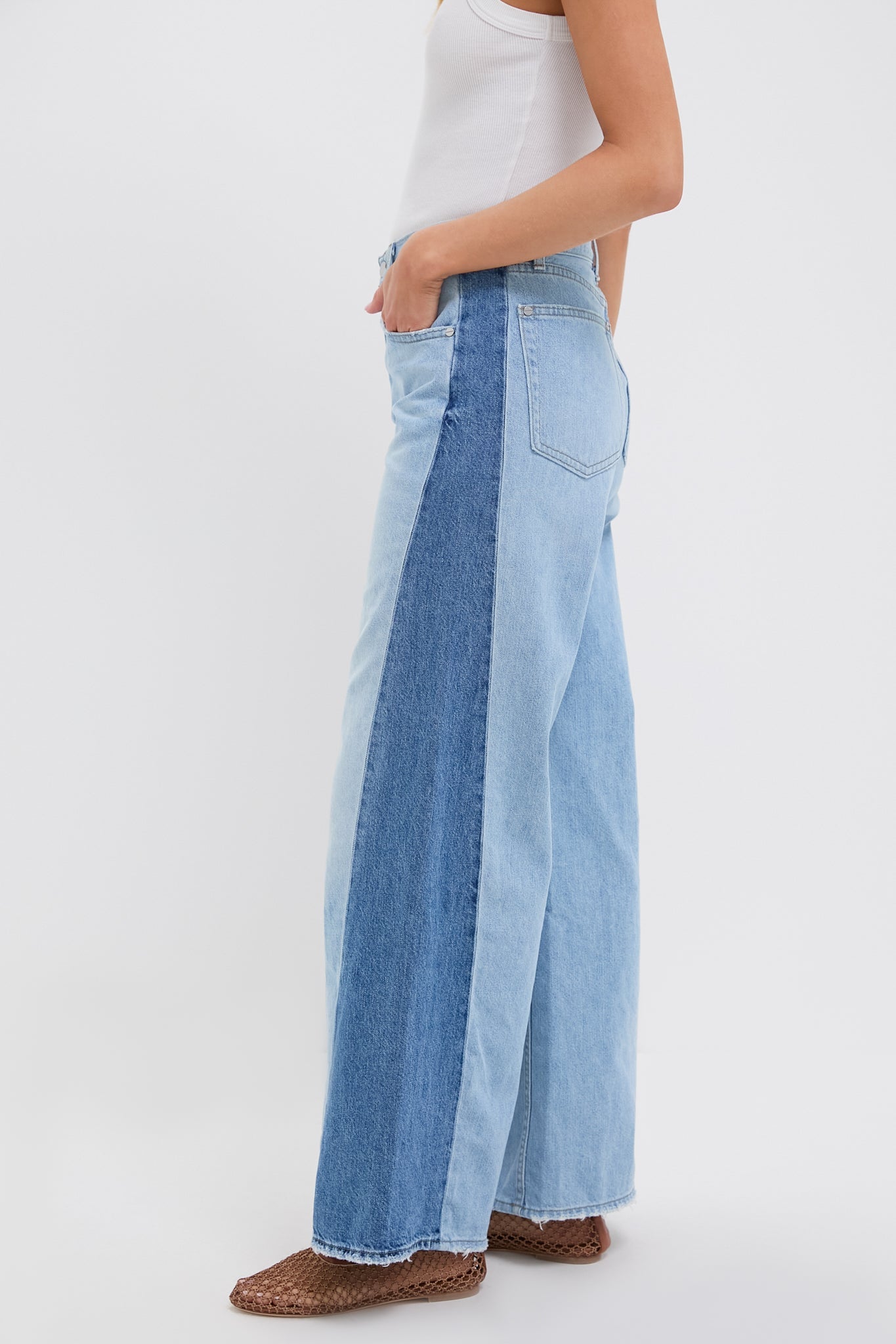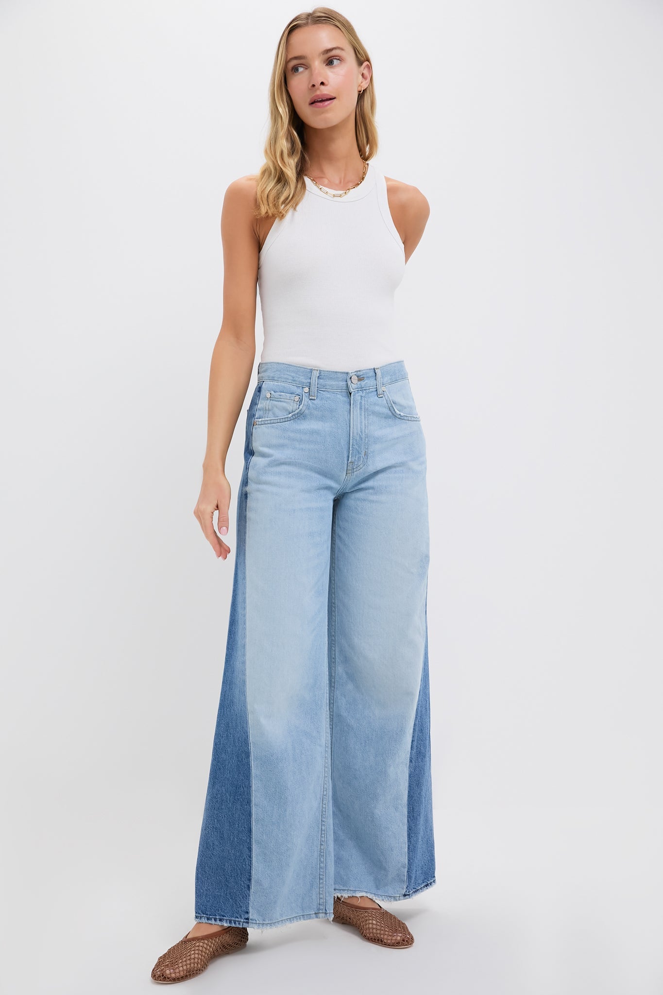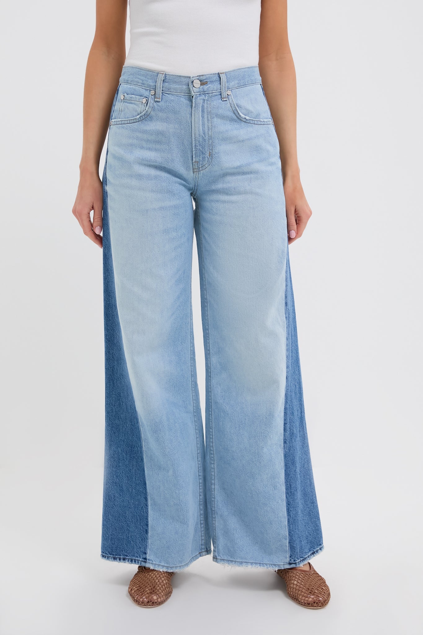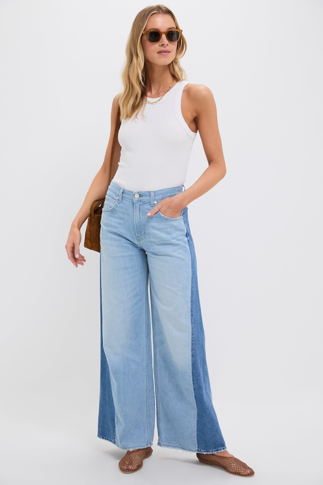 The Vintage Wash Two Tone Ramblin Man Jeans are a mid-rise, wide leg jean in two tone denim. With a relaxed hip and a five-pocket style detailed with nail head rivet hardware, we recommend pairing with tees, tanks, or buttons downs, flats or sandals, and your favorite bag!