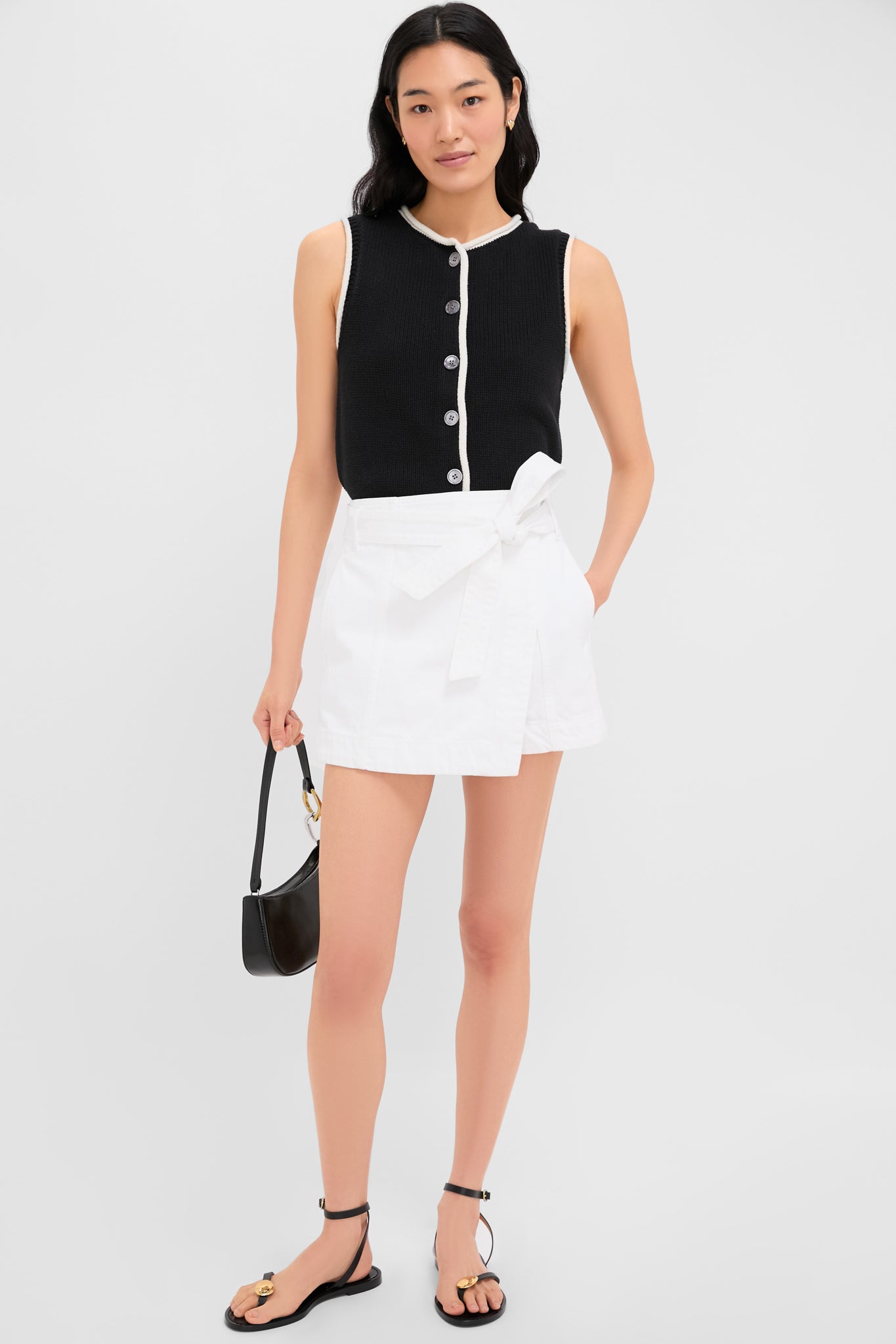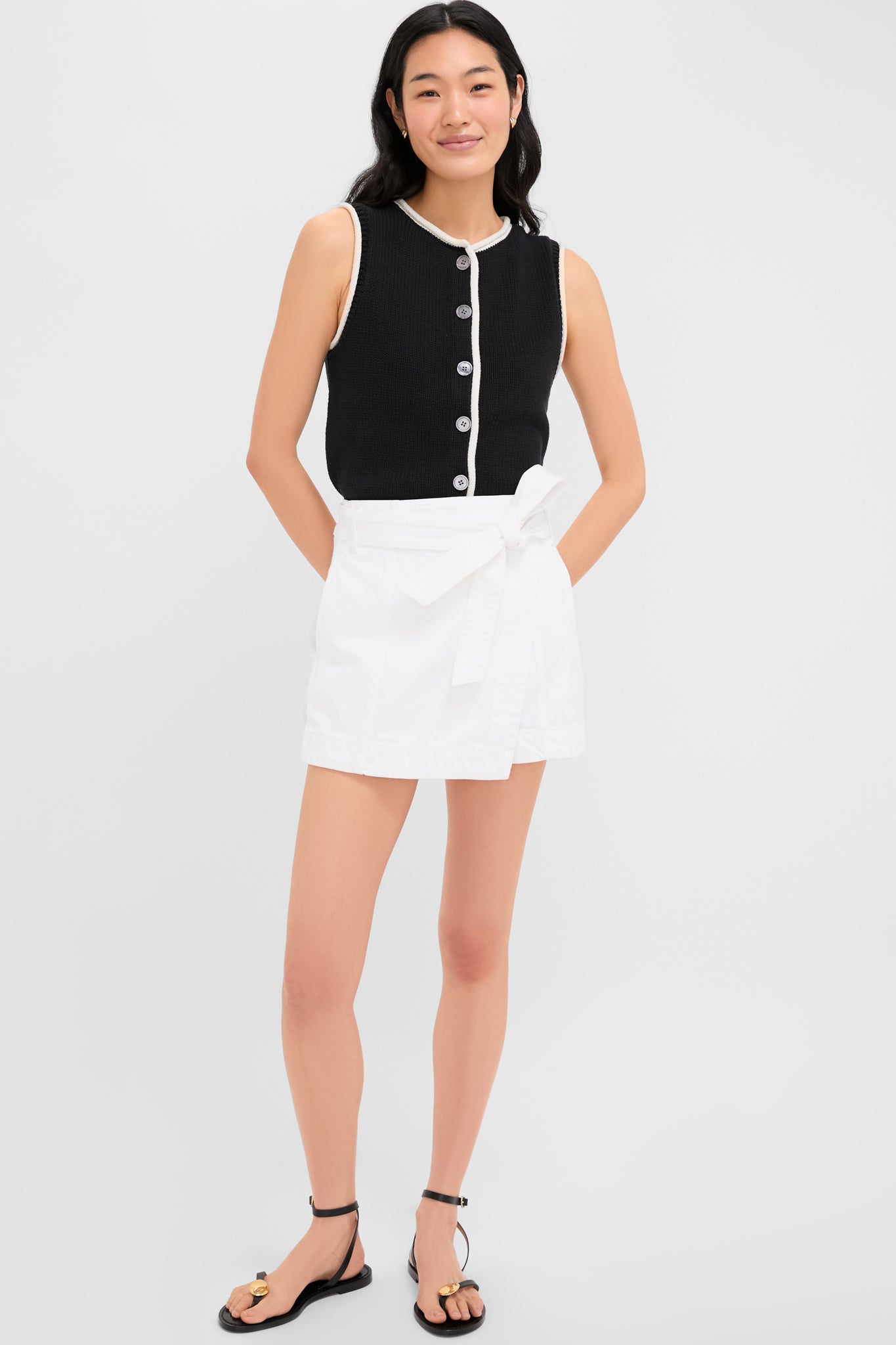 The spring skort, perfected. Crafted from a stark white heavyweight cotton blend, Agee's high-waisted, mini-length silhouette is designed for a close fit, finished with wrap-front skirt details. Side slip pockets, back patch pockets, and a matching tie belt complete the look. Style with an airy button-down blouse or trendy vest and strappy sandals for a chic warm-weather look.