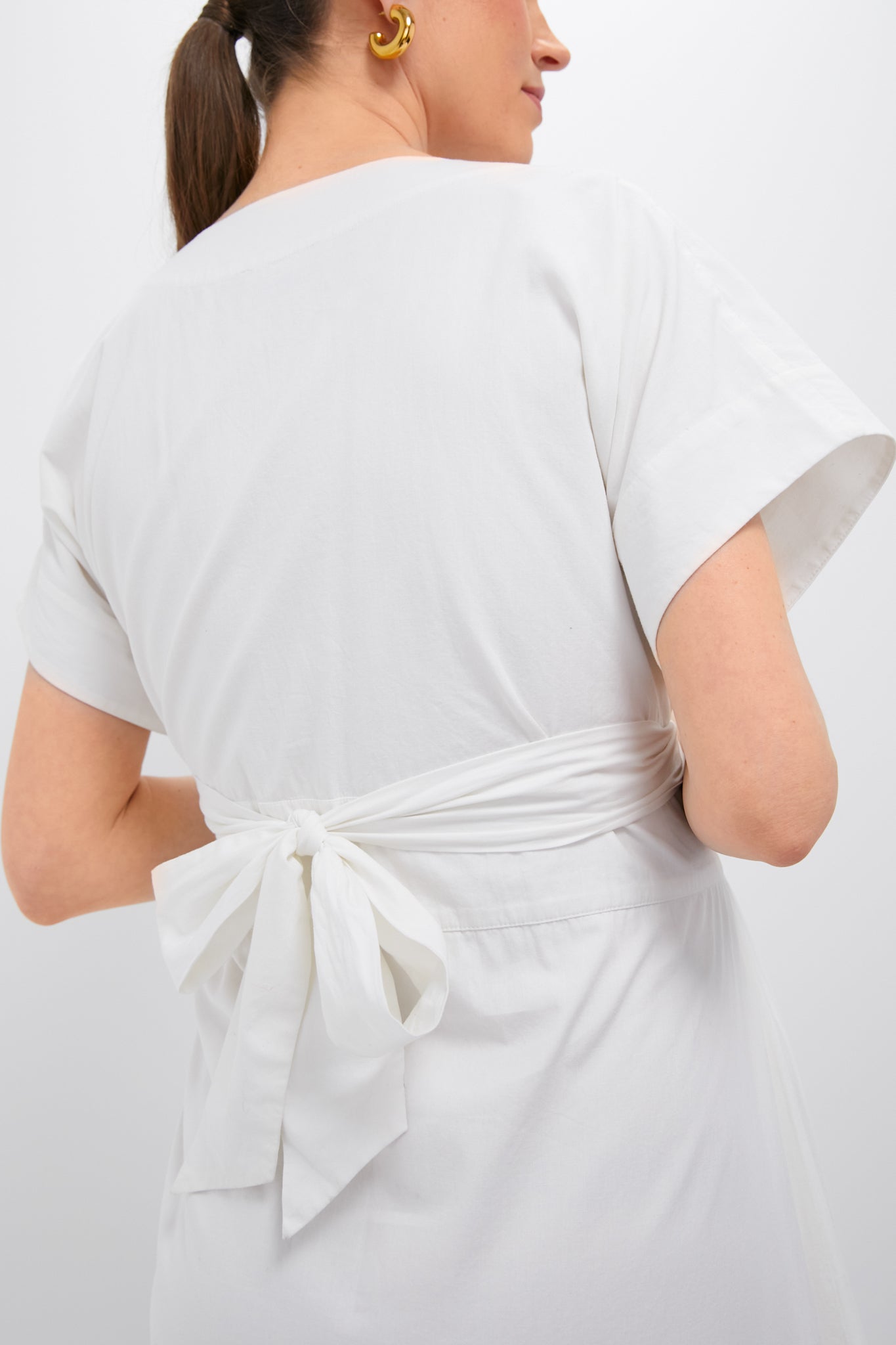 A true summer stunner, for the mama-to-be - introducing the Carolina Dress. In crisp white cotton, embroidered with delicate hollyhock-inspired florals and cutwork detailing along the hem for an airy, elevated finish. With a flattering wrap bodice and adjustable side ties (wear them in front or back, bump to postpartum). Breezy, breathable, and made to grow with you—she's equal parts easy and effortless.