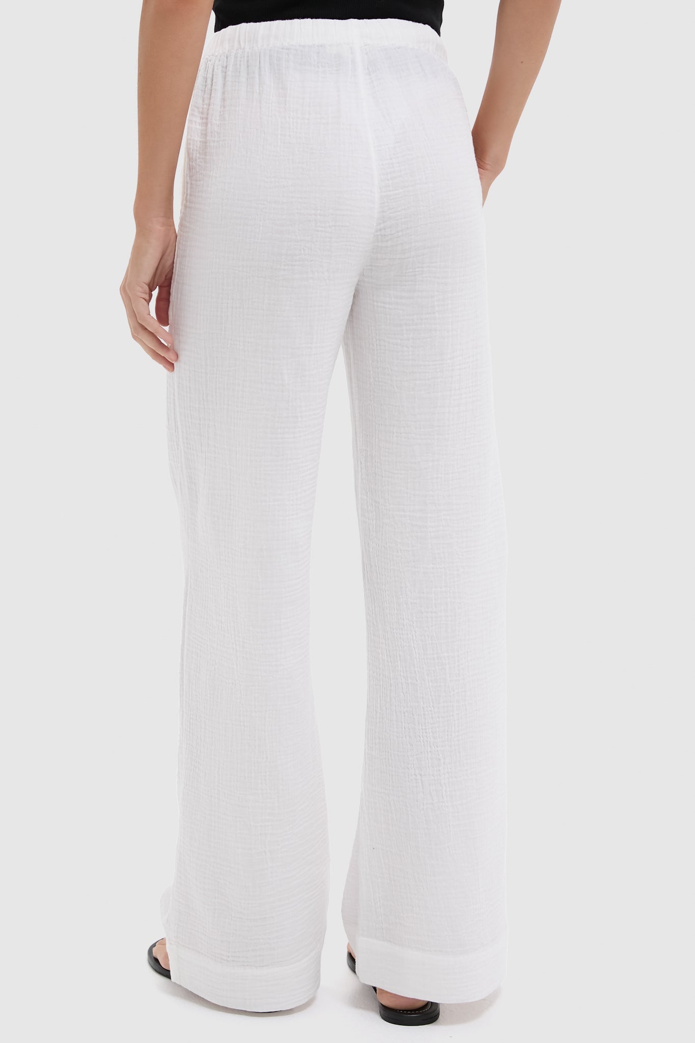 White Dune Cotton Gauze Wide Leg Pant