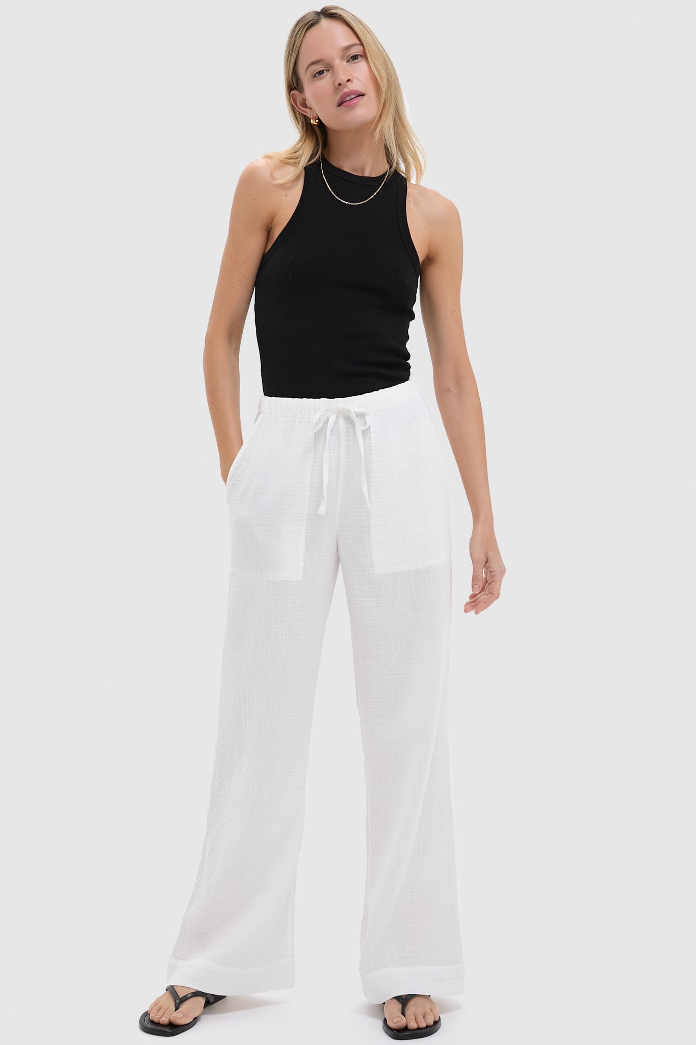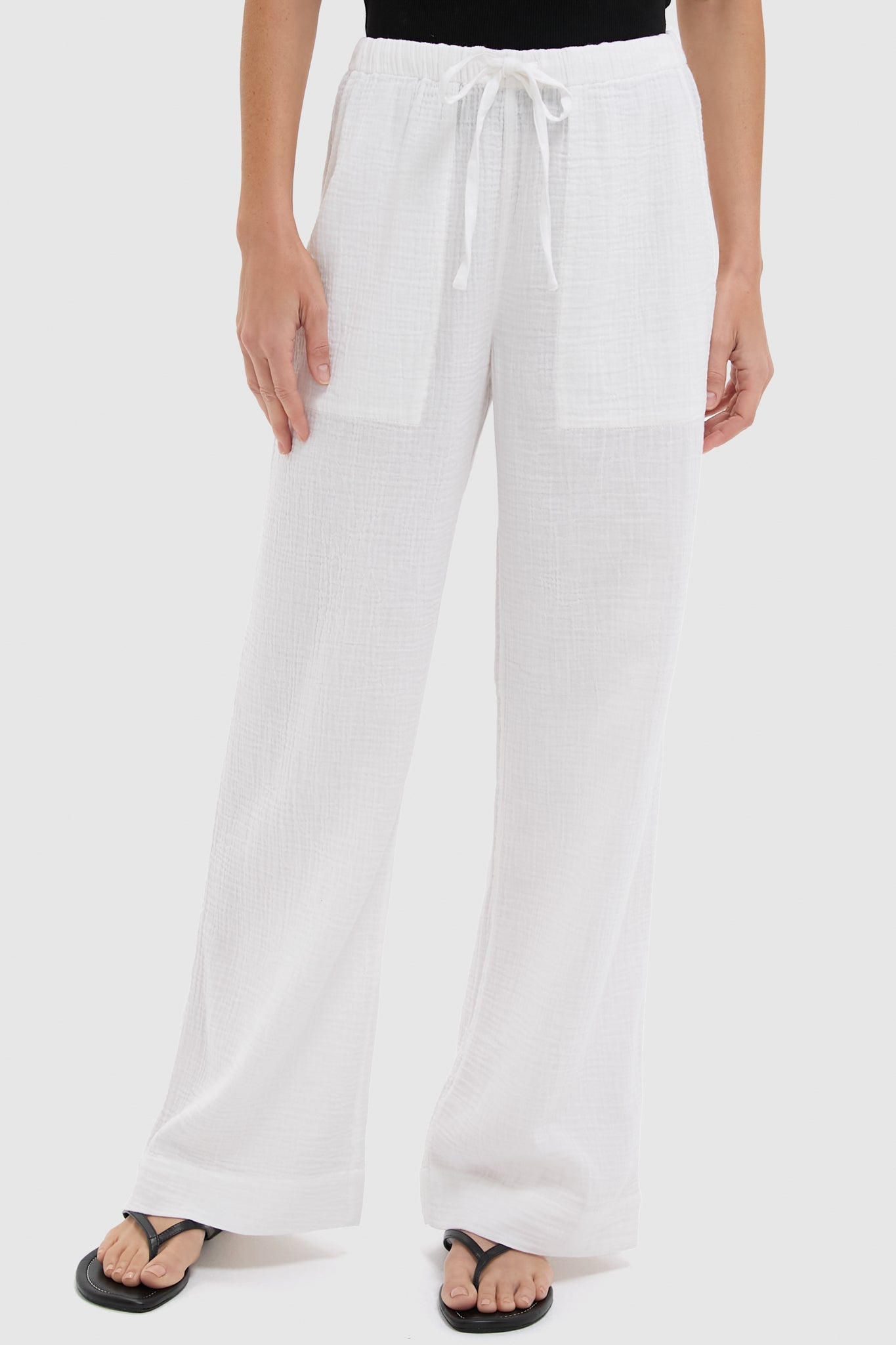Perfect for slow mornings and breezy walks at sunset, these softer-than-soft double gauze cotton pants are exactly what you'll want to wear with your favorite tees or button-downs. The subtly textured fabric feels airy and comfortable, while the encased elastic waistband with an adjustable tie front ensures a perfect fit every time.
