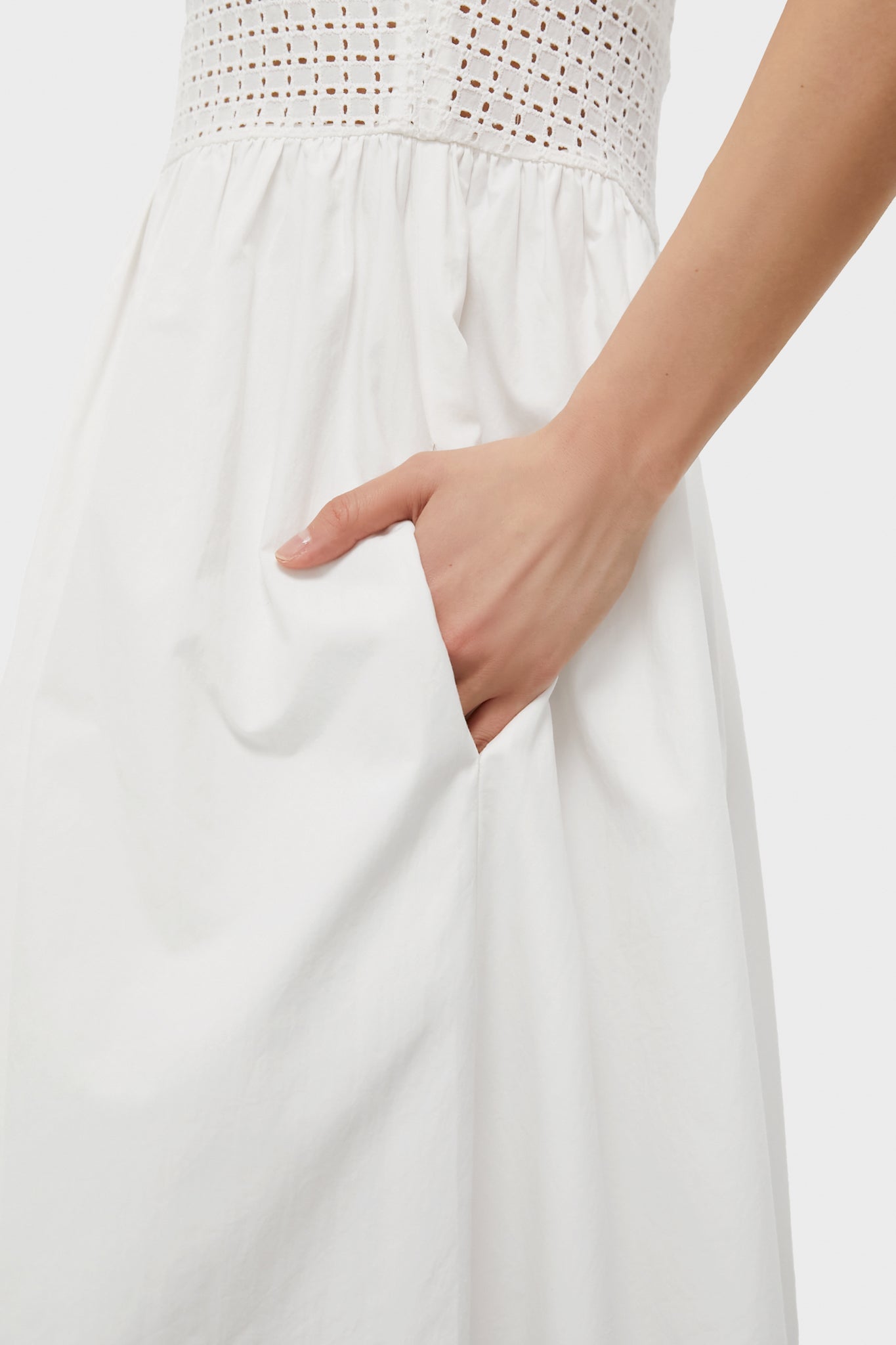 The White Lace Marianne Dress features an A-line silhouette, with a fitted bodice top, eyelet detailing, and a midi length. Perfect for brides, graduates, and just those who love to sport a summer white, this dress can be styled with sandals and a tote or heels and a handbag!