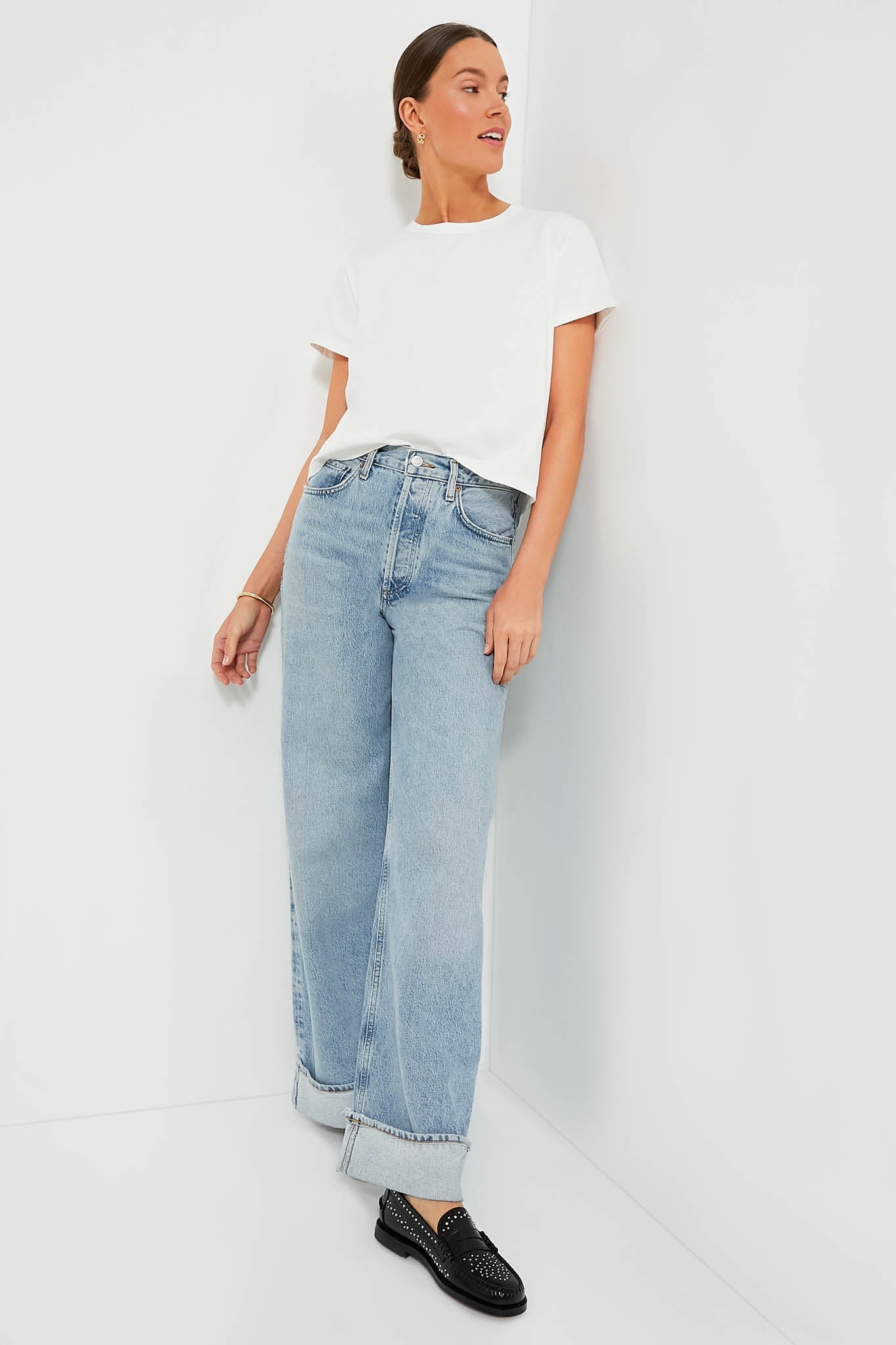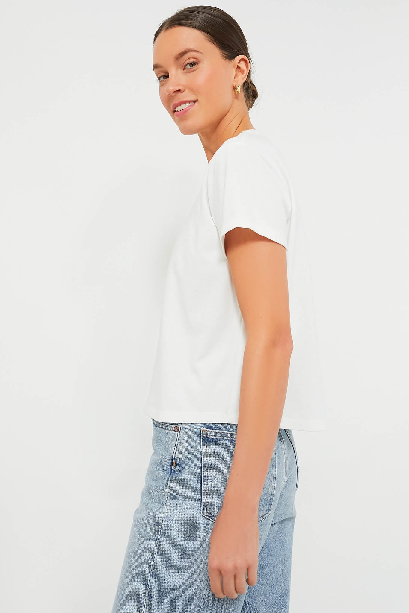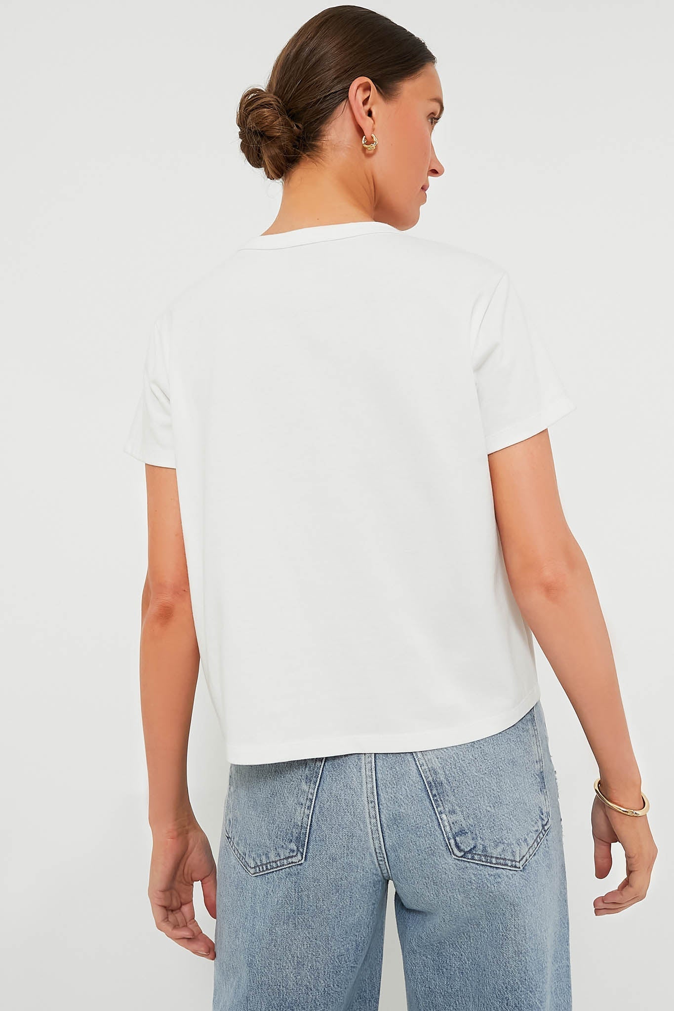 In search of a traditional tee that stands the test of time? Look no further than the Presley. Featuring a crewneck, short wide sleeves, and a relaxed fit that can be tucked in or out to achieve any look, this top is for those days when you just don't know what to wear. Throw on a pair of denim, a mini skirt, leather trousers– you name it– the possibilities are endless for this classic wear everywhere number.