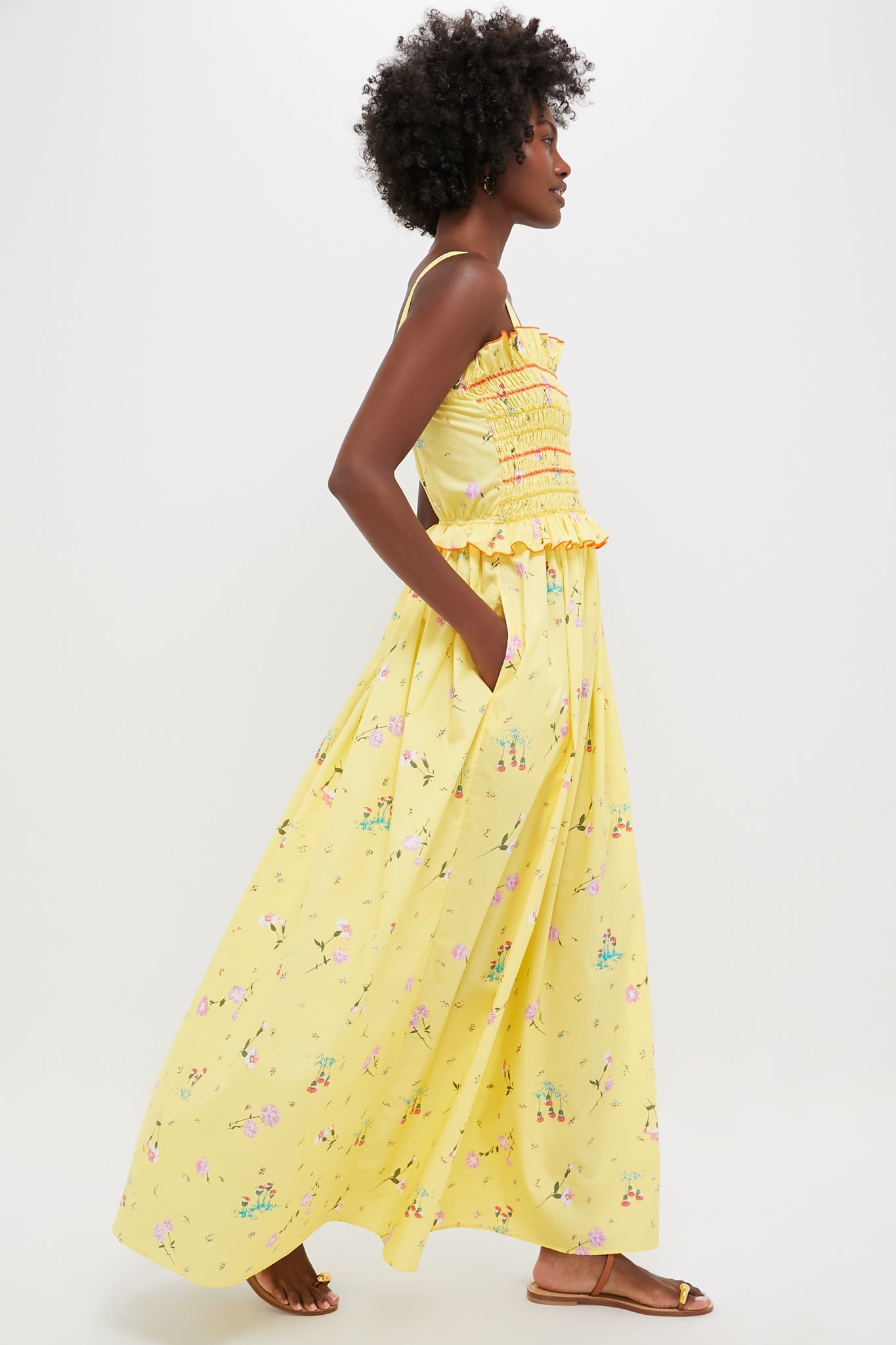 The Wildflowers Ombretta Maxi Dress is a warm weather must have. With a smocked bodice, full length maxi skirt, in a gorgeous yellow floral fabric, this dress screams summertime. Pair with sandals or wedges, gold jewelry, and a handbag for garden parties, ladies lunches, or just strolling around town on a hot day!