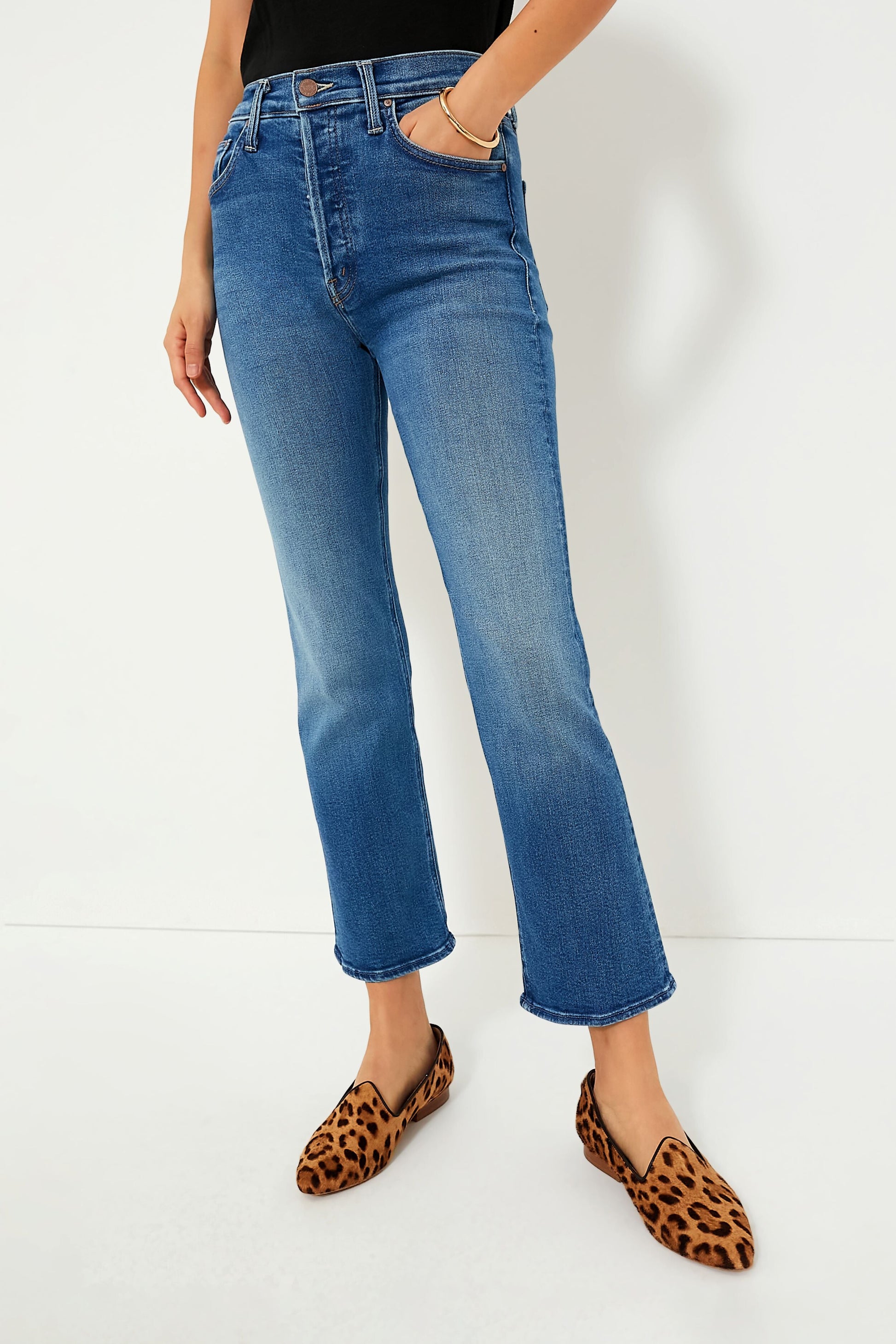 Groovy and classic at the same time, these Work Hard Play Hard Tripper Ankle jeans by MOTHER are a new year-round favorite. The blue wash and flare silhouette creates a 70s-inspired appearance, and the high rise waist and clean ankle-length hem make these a closet staple. Pair with a bell sleeve blouse and sandals for a full Woodstock vibe, or with a white tee and black blazer for an effortlessly-cool look.